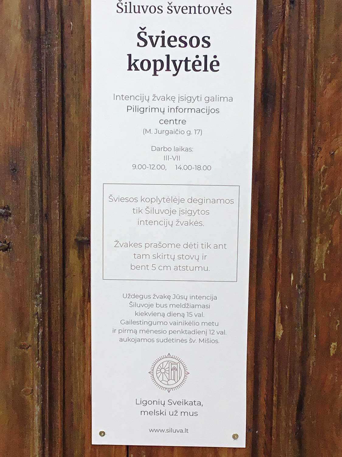 Žavėjomės Šiluvos bazilikos, Ligonių Sveikatos koplytėlės ir Apsireiškimo koplyčios erdves puošusiomis gėlių ir javų varpų kompozicijomis. Sužinojome, kad idėja atspindi Šiluvoje apsireiškusios Mergelės Marijos skundą: „Čia kitados buvo garbinamas Dievo Sūnus, o dabar ariama ir sėjama”.