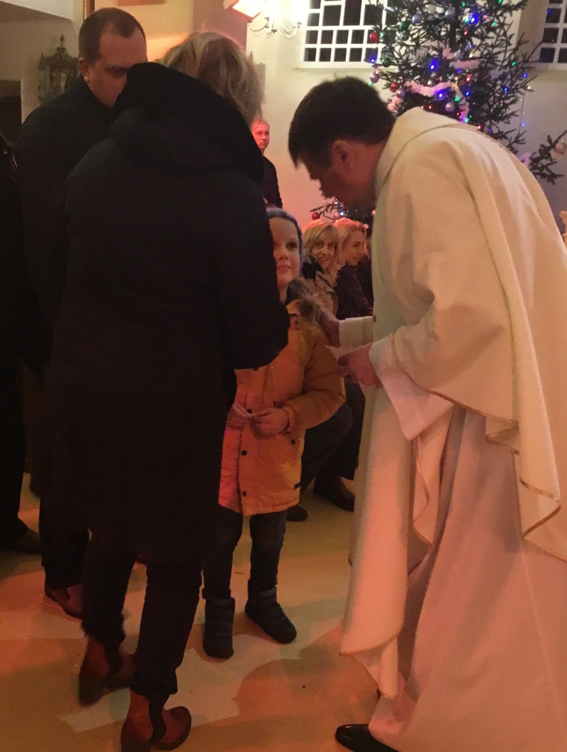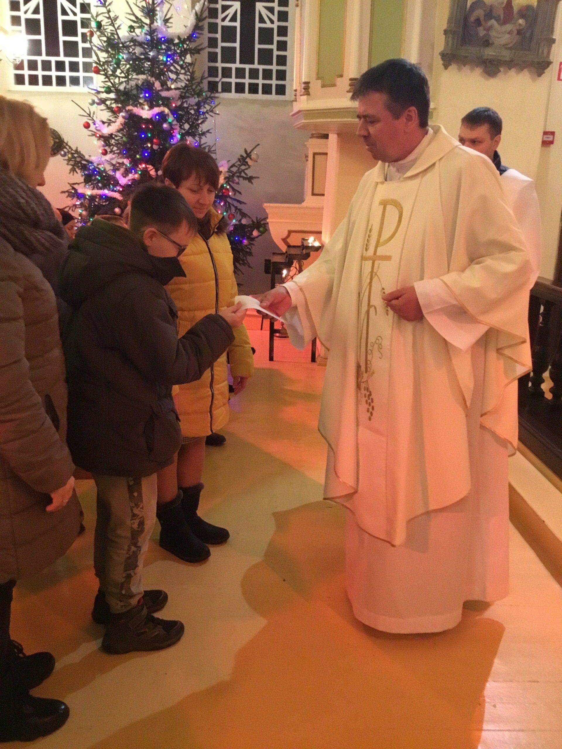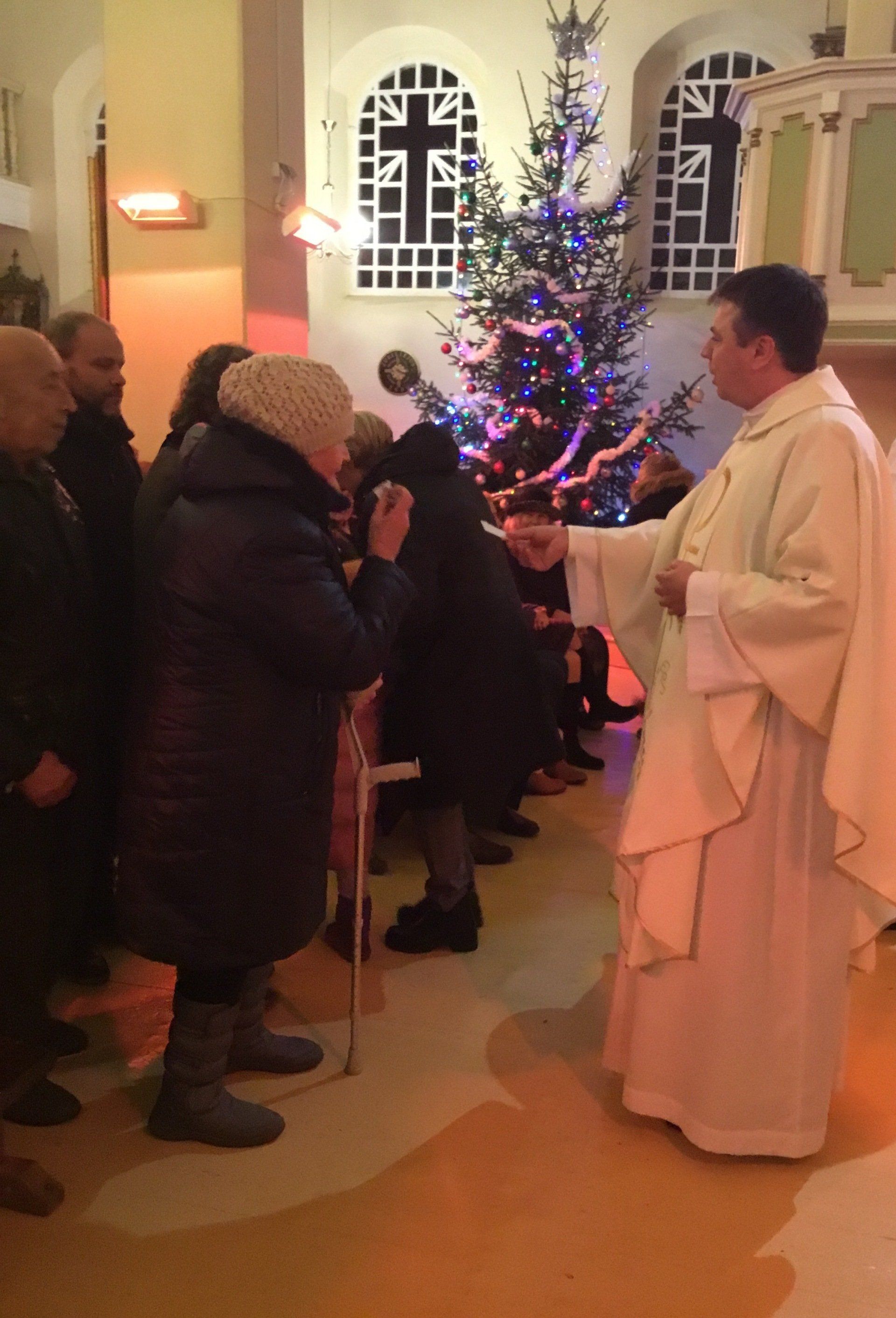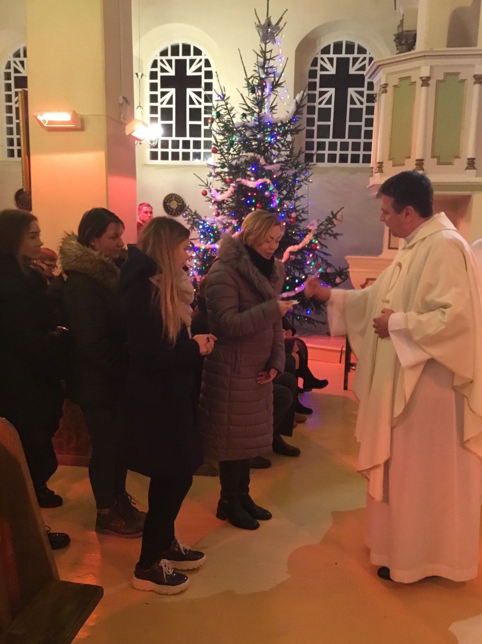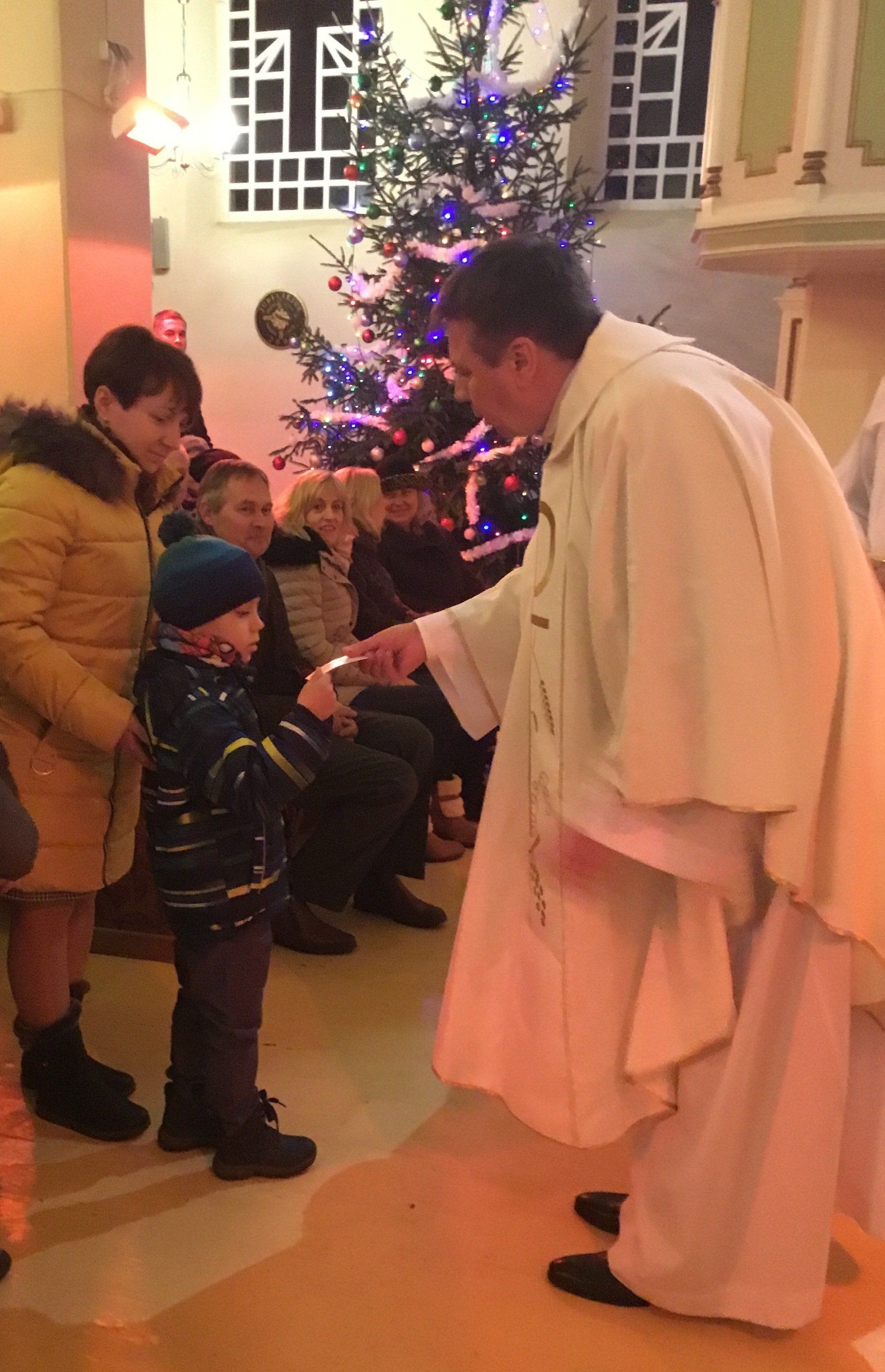 2019 12 24 Kūčių vakarą bažnyčioje laužėme kalėdaitį