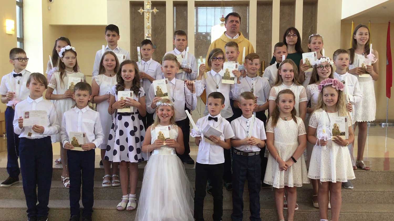 Šią vasarą Domeikavoje pirmą kartą Eucharistiją priėmė gražus būrys jaunųjų parapijiečių. Po Mišių dvasininkas vaikams įteikė pažymėjimus ir dovanojo krikščioniško turinio knygeles.
