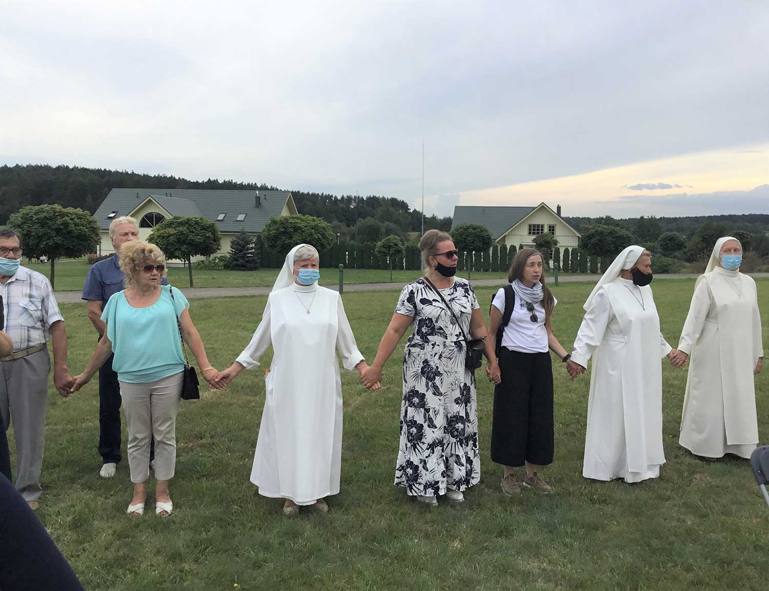 Vėliau sustoję ratu visi kartu meldėmės Rožinio slėpinį. Maldai vadovavo vysk. J. Matulaitis ir sesės vienuolės. Šventės pabaigoje aplankėme Rožinio slėpinių parką ir koplytėlę. Sladkevičių šeimos apytikrę buvusios sodybos vietą ženklina akmuo. Kardinolo V. Sladkevičiaus pagerbimo vietoje yra Švč. Mergelės Marijos skulptūra su kardinolo herbu ir užrašu „Marija visų tautų Motina”. Meldėme taikos Tėvynei ir kaimyninei Baltarusijai.