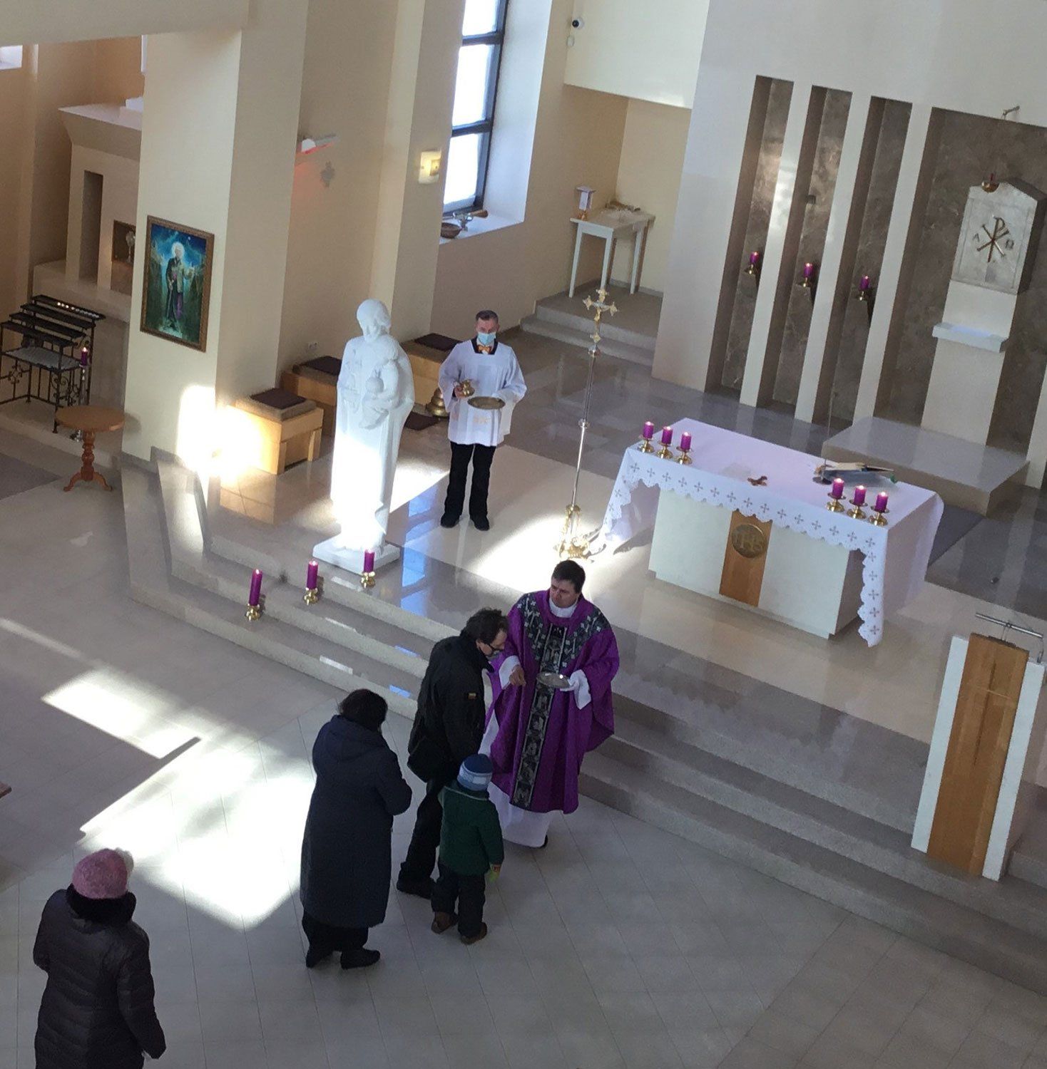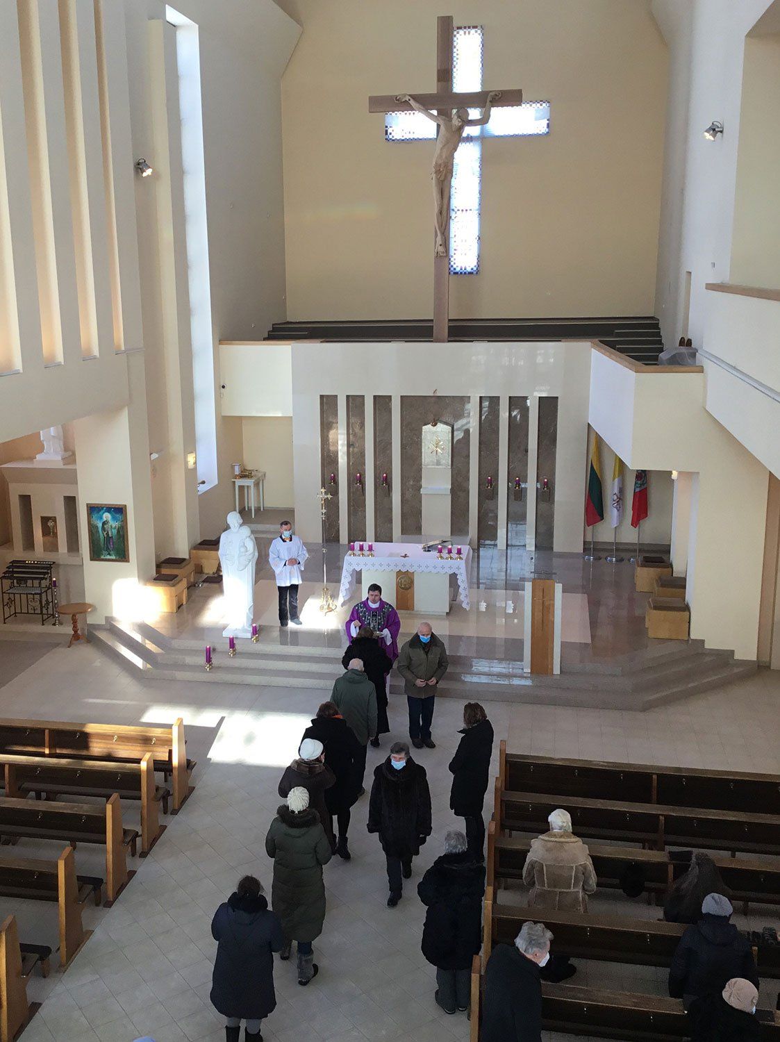 Šv. Mišias aukojo klebonas kunigas Gintaras Pūras. Vėliau dvasininkas priminė tikintiesiems Pelenų dienos liturgijos simbolių prasmę bei pašventino pelenus. Pelenų trečiadienį tikintiesiems kunigas užberia ant galvos žiupsnelį pelenų bei Šventojo Rašto žodžiais „atmink, žmogau, jog dulke buvai ir į dulkę pavirsi“ primena apie mūsų būties trapumą bei Dievo gailestingumą.