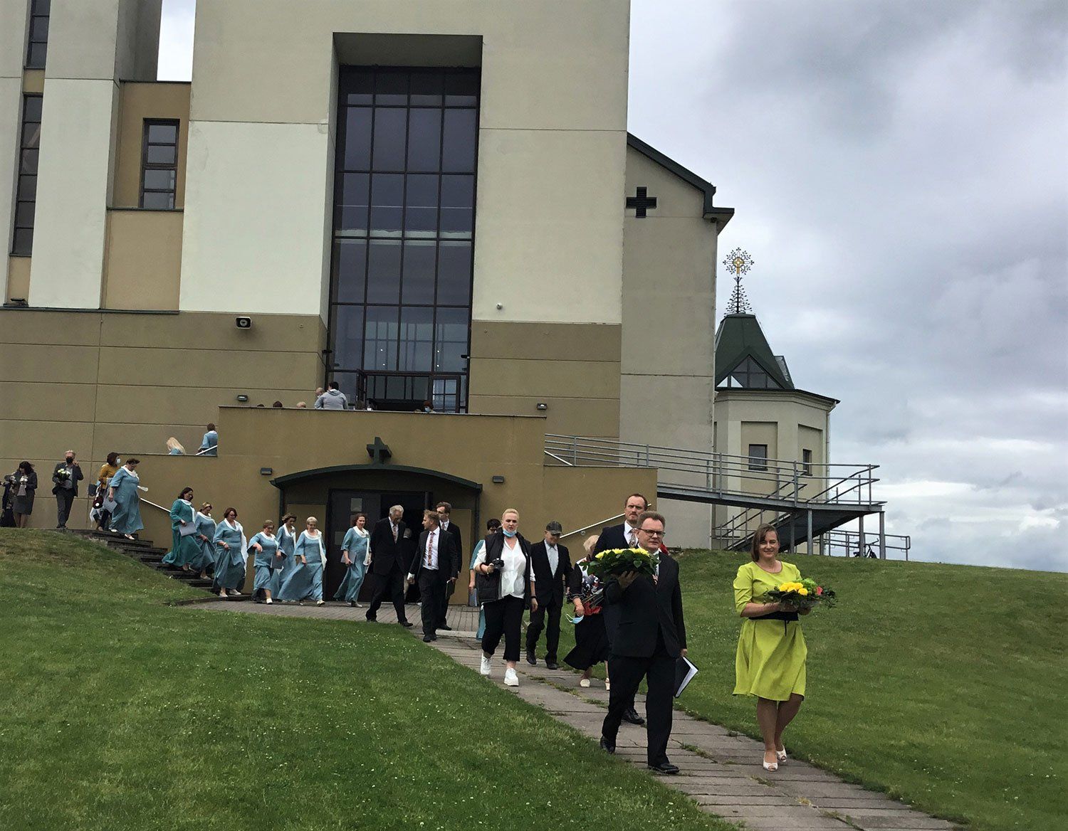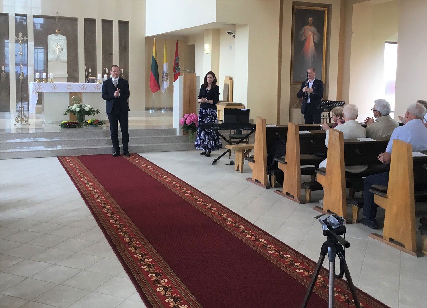 Vėliau bažnyčioje giedojome Tautišką giesmę, skulptūrų parke prie kryžiaus Lietuvos kankiniams atminti, skambėjo giesmė „Lietuva brangi”. Svečiai padėjo Lietuvos vėliavos spalvų gėlių vainikėlius, uždegėme žvakutės žuvusiems tremtyje atminti.