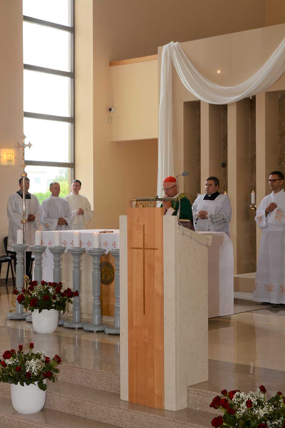 Kardinolas S. Tamkevičius homilijoje akcentavo, koks svarbus yra Domeikavos Lietuvos kankinių bažnyčios titulas. Jis primena sunkų mūsų Tėvynės ir Bažnyčios laikotarpį, kai tikėjimas į Dievą tapdavo sunkių išbandymų priežastis. Dvasininkas kalbėjo apie šeimos vaidmenį vaikų religiniam auklėjimui bei kvietė įsiklausyti į apaštalo Pauliaus žodžius pasakytus Efezo krikščionims: „Jūs esate šventųjų bendrapiliečiai ir Dievo namiškiai, užstatyti ant apaštalų ir pranašų pamato, turintys kertiniu akmeniu patį Kristų Jėzų, ant kurio darniai auga visas pastatas, tampantis šventove Viešpatyje, ant kurio ir jūs esate drauge statomi kaip Dievo buveinė Dvasioje.” Kardinolas pamaldų dalyviams linkėjo tikėjimo ir meilės šeimose bei asmeninio stipraus ryšio su Kristumi.