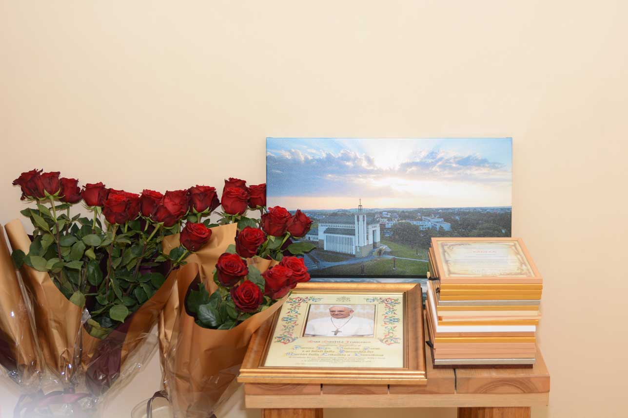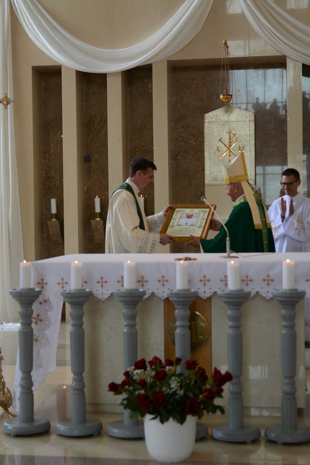 Po šv. Mišių Domeikavos parapijos klebonas kun. Gintaras Pūras padėkojo gerbiamiems svečiams kunigams už apsilankymą Domeikavos bažnyčioje. Parapijos pastoracinė taryba kardinolui S. Tamkevičiui dovanojo Domeikavos bažnyčios paveikslą. Kardinolas Domeikavos parapijos klebonui įteikė Popiežiaus Pranciškaus prasmingą dovaną bei palinkėjo prasmingų darbų tarnaujant Dievui ir žmonėms Domeikavos Lietuvos kankinių parapijoje.