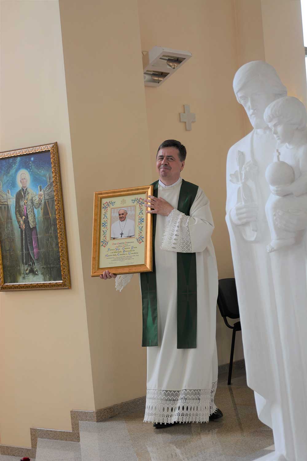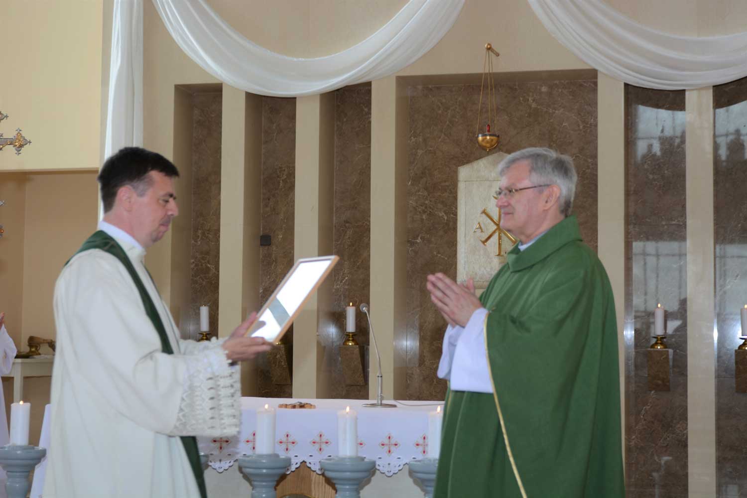 Klebonas kun. Gintaras Pūras Domeikavos Lietuvos kankinių parapijai vadovauja penkerius metus. Šia gražia proga aktyviausių parapijiečių geri nesavanaudiški darbai bendruomenėje neliko nepastebėti – kardinolas S. Tamkevičius įteikė klebono paruoštas padėkas.