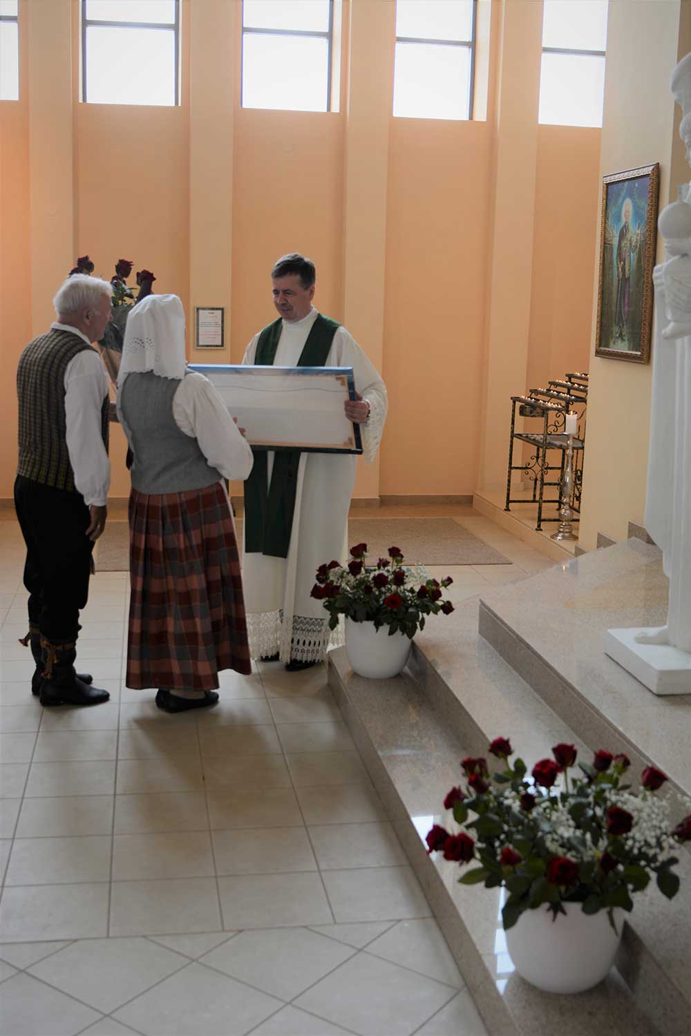 Vėliau parapijai buvo įteiktos kitos prasmingos dovanos, bažnyčios jubiliejaus proga svečiams ir parapijiečiams koncertą bažnyčios šventoriuje dovanojo liaudies muzikos kapela Domeikavos „Seklyčia”. Nuoširdi džiaugsminga bendrystė tęsėsi Agapėje.