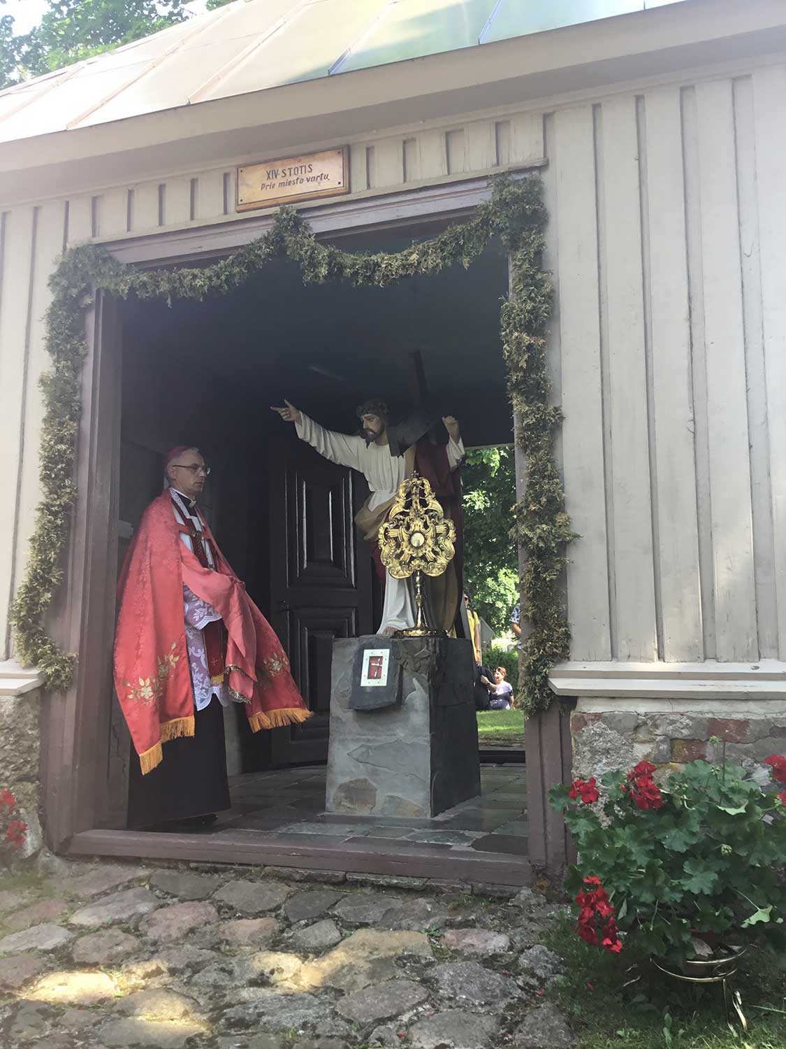 Koplyčios atkartoja Jėzaus kančią nešant kryžių. Esant didžiulei saulės kaitrai aplankėme visas 19 Kryžiaus kelio koplyčių. Žemaičių Kalvarijos miestelio kalvota vietove nukeliavę 7 kilometrų tikintiesiems skirtą kelią, visi buvome laimingi ir dėkingi už šią piligriminę kelionę.