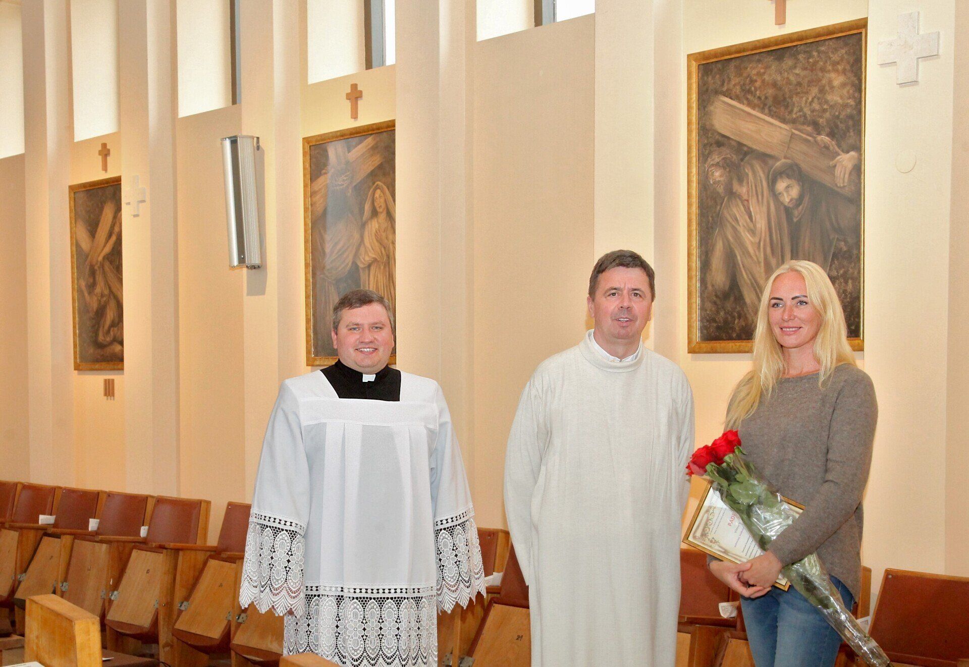 Domeikavos parapijos pastoracinės tarybos vardu klebonas kun. Gintaras Pūras meno kūrėjai Vilmai Vebeliūnienei įteikė padėką už nesavanaudišką paramą Domeikavos Lietuvos kankinių parapijos bendruomenei, bendrystę bei skleidžiamą meilę žmogui.