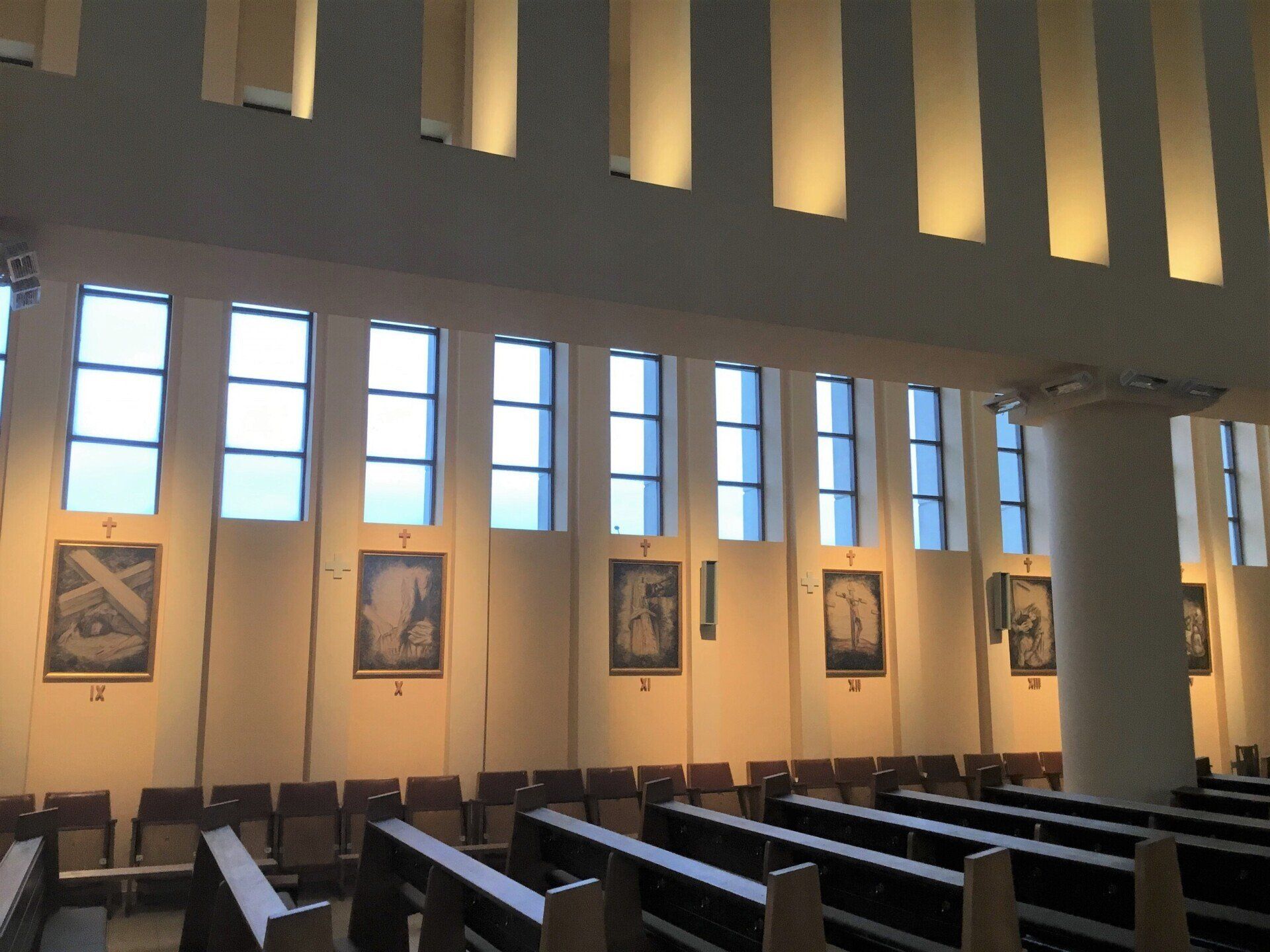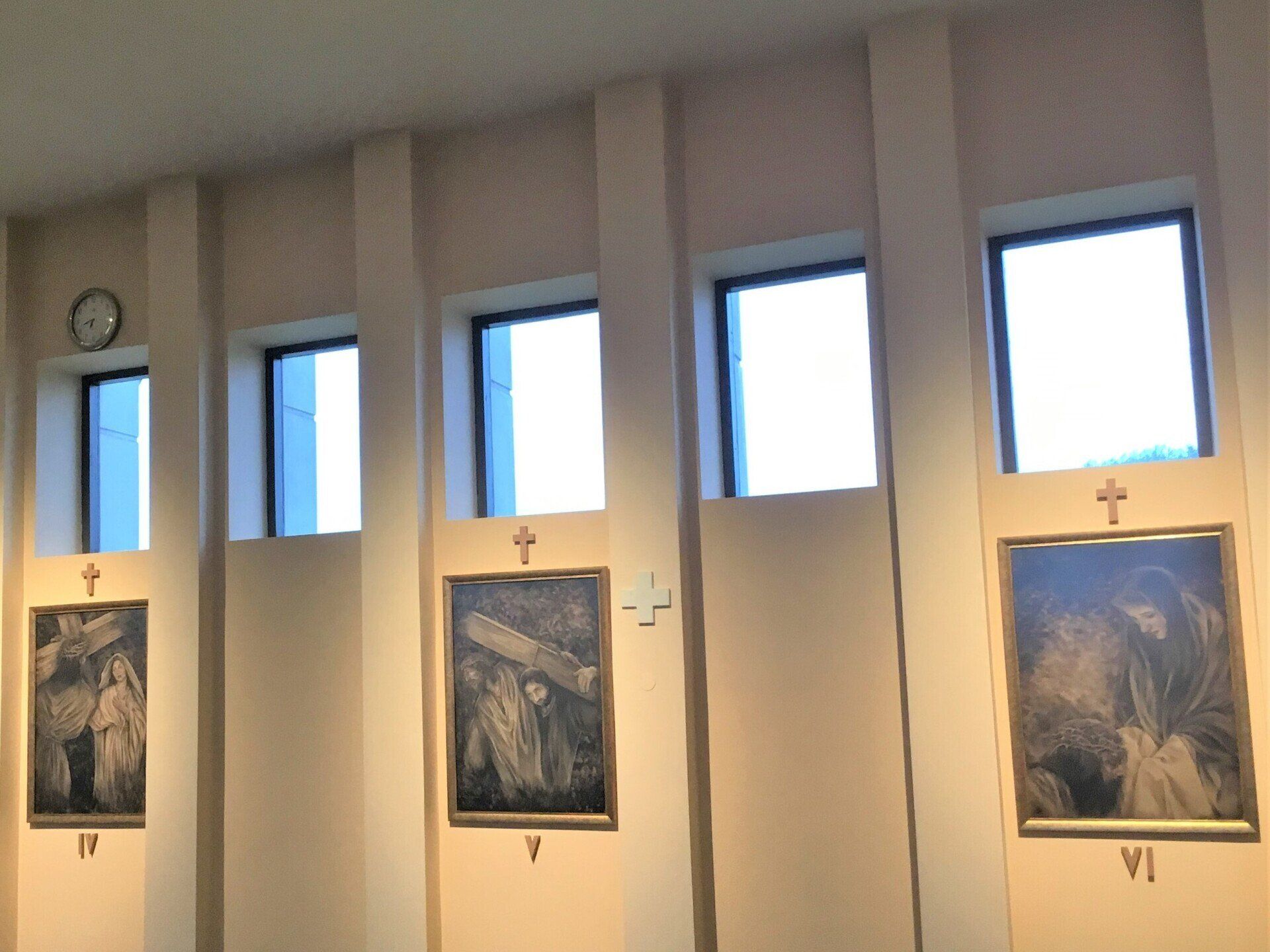 2021 08 08 Domeikavos bažnyčioje pašventinti Kryžiaus kelio stočių paveikslai
