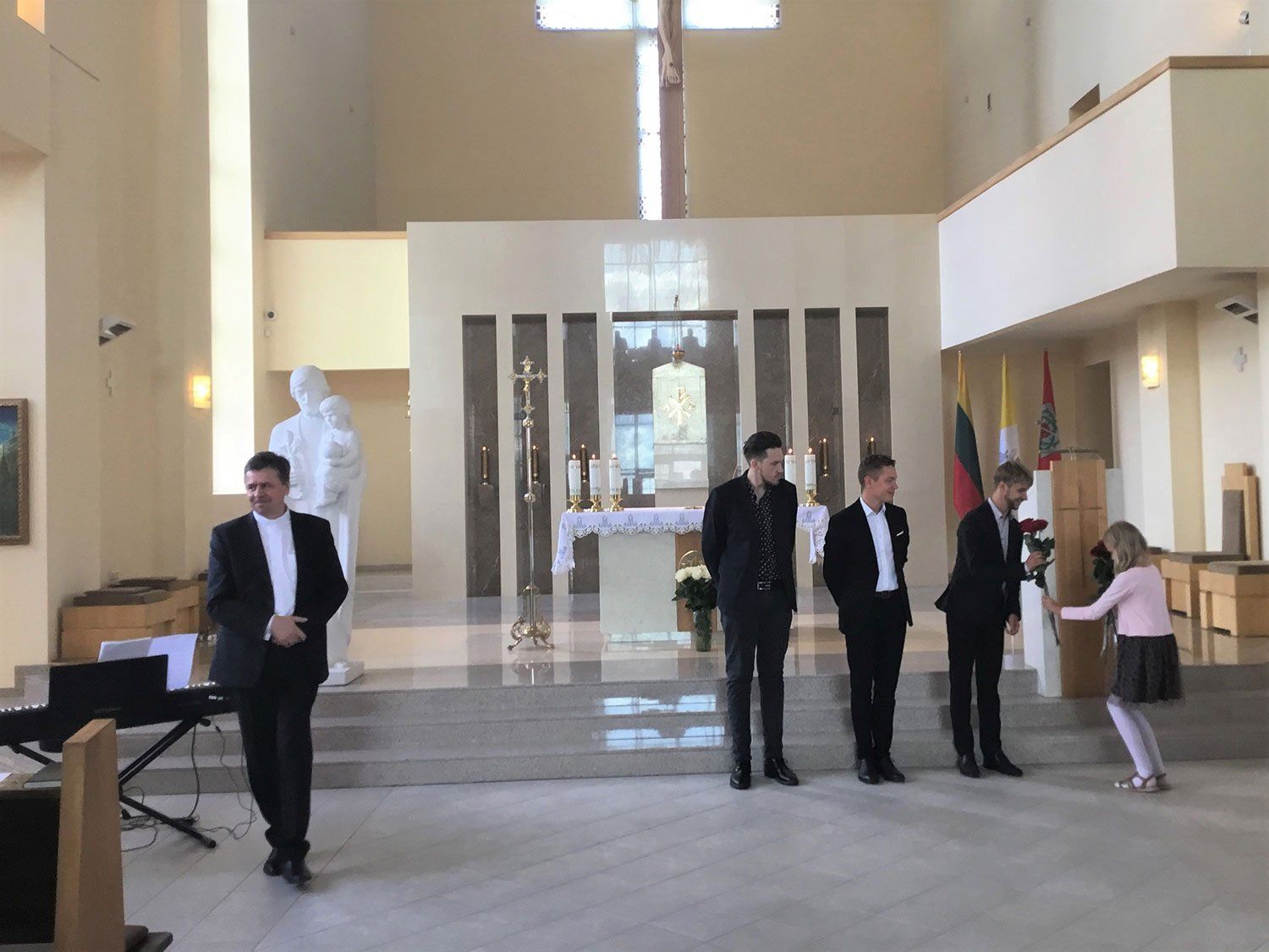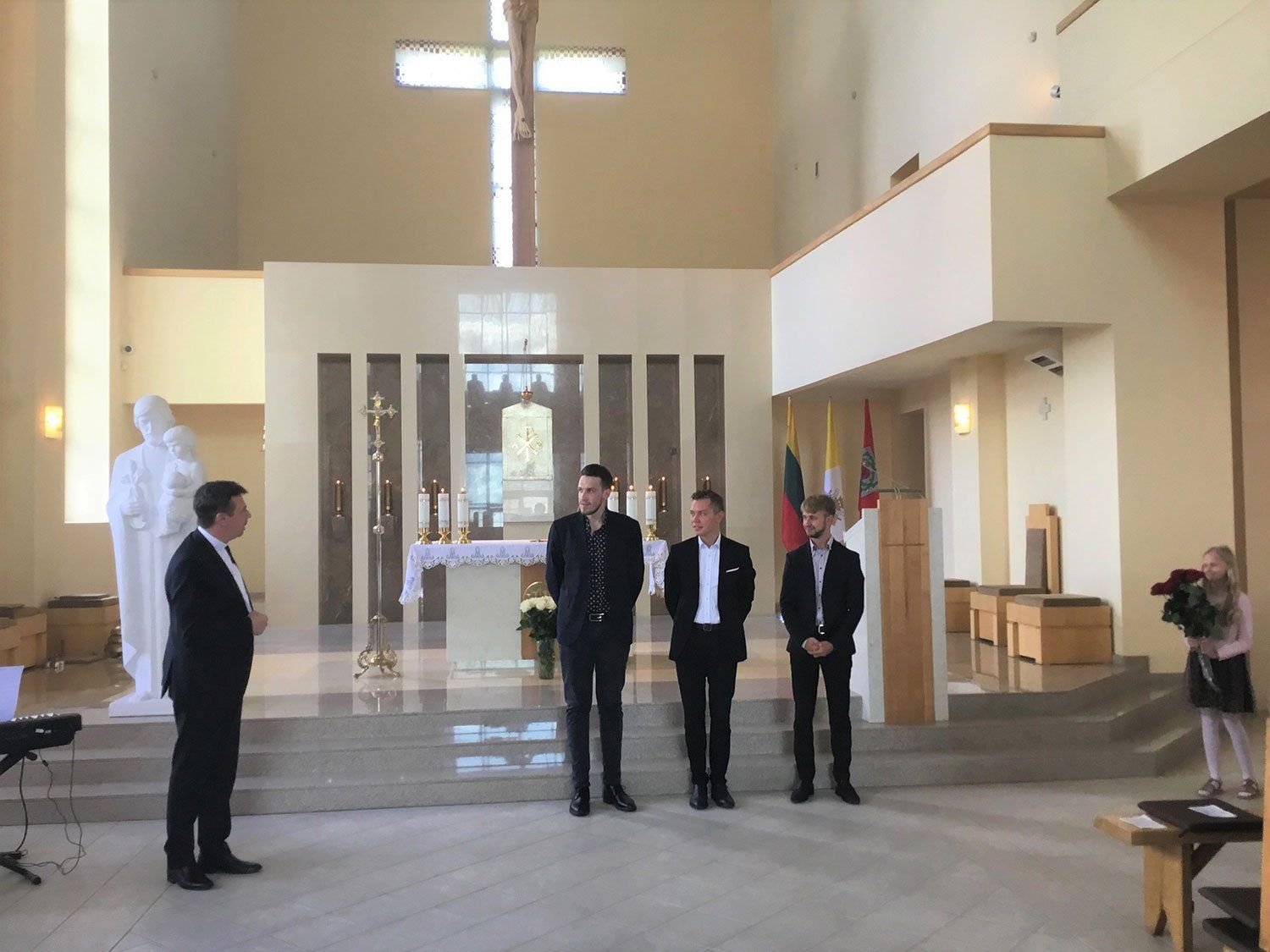 Koncerto pabaigoje artistams dėkojome plojimais, parapijos vardu jaunoji muzikos mylėtoja įteikė gėlių.