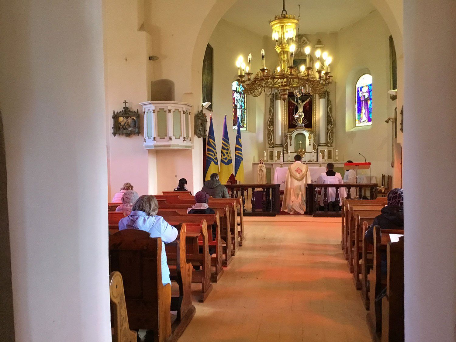 Kovo 26 dieną, šeštadienį nuo ryto Lapių bažnyčioje vyko Švenčiausiojo Sakramento adoracija, o vakare parapijos klebonas kun. Gintaras Pūras šv. Mišias aukojo už taiką Ukrainoje. Dvasininkui talkino parapijoje liturginę praktiką atliekantis klierikas Mantas Šideikis.