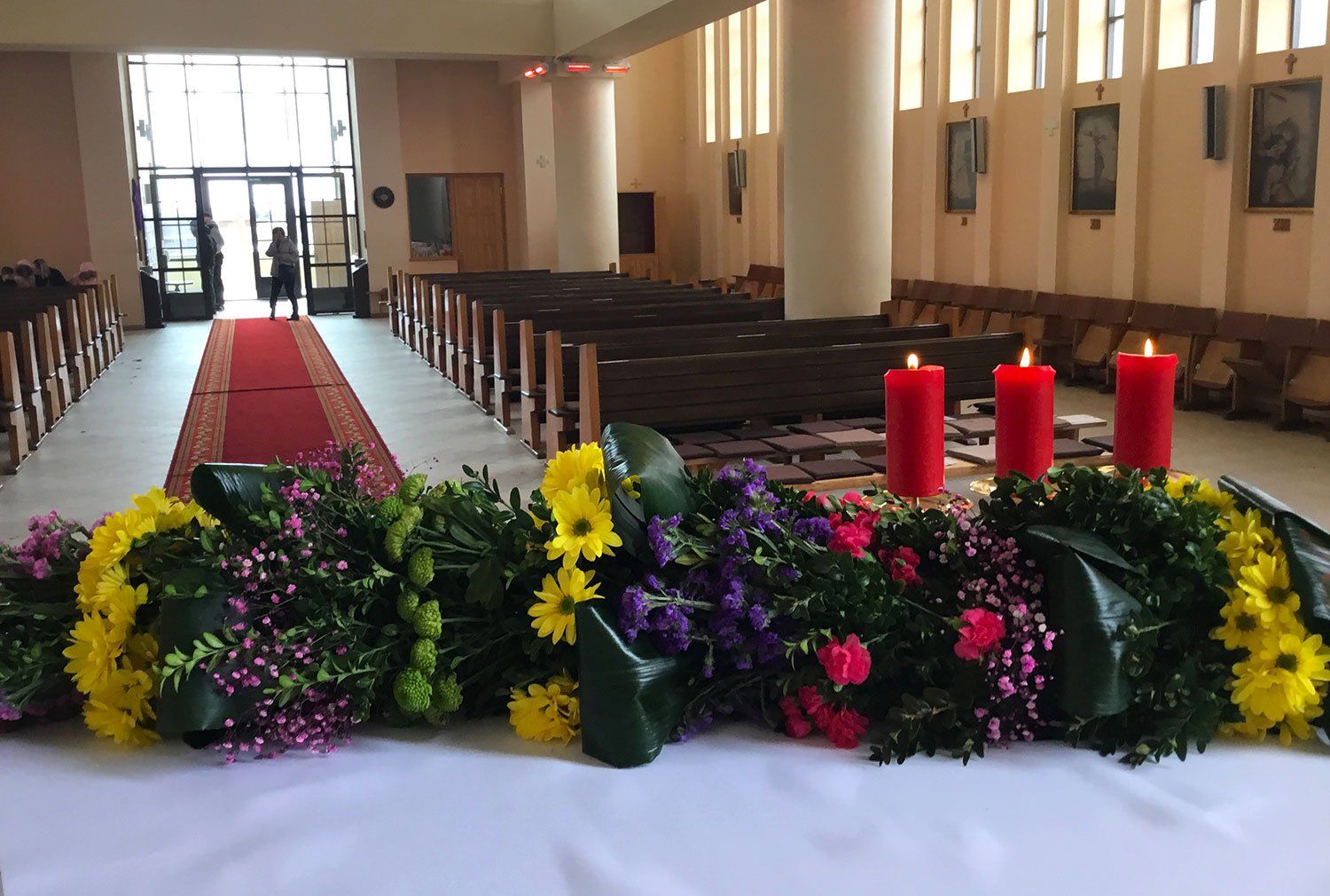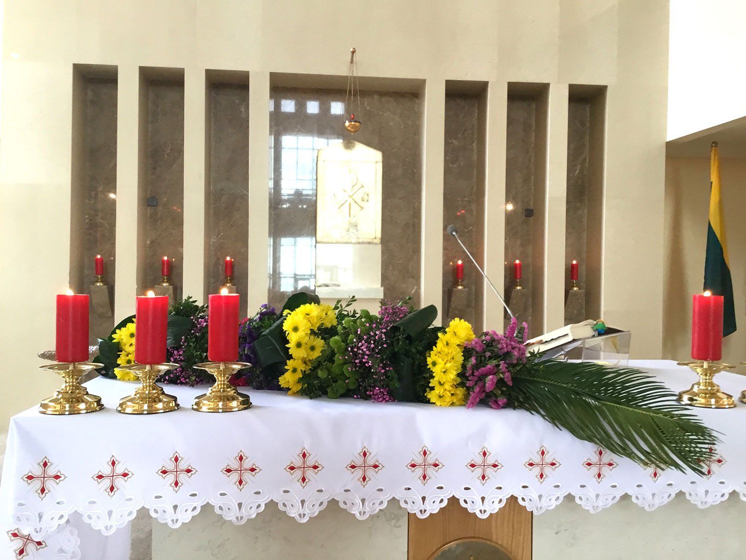 Nuoširdžiai dėkojame gėlininkėms sukūrusioms išskirtinę verbą mūsų parapijai. Verboje žaliuojantys augalai