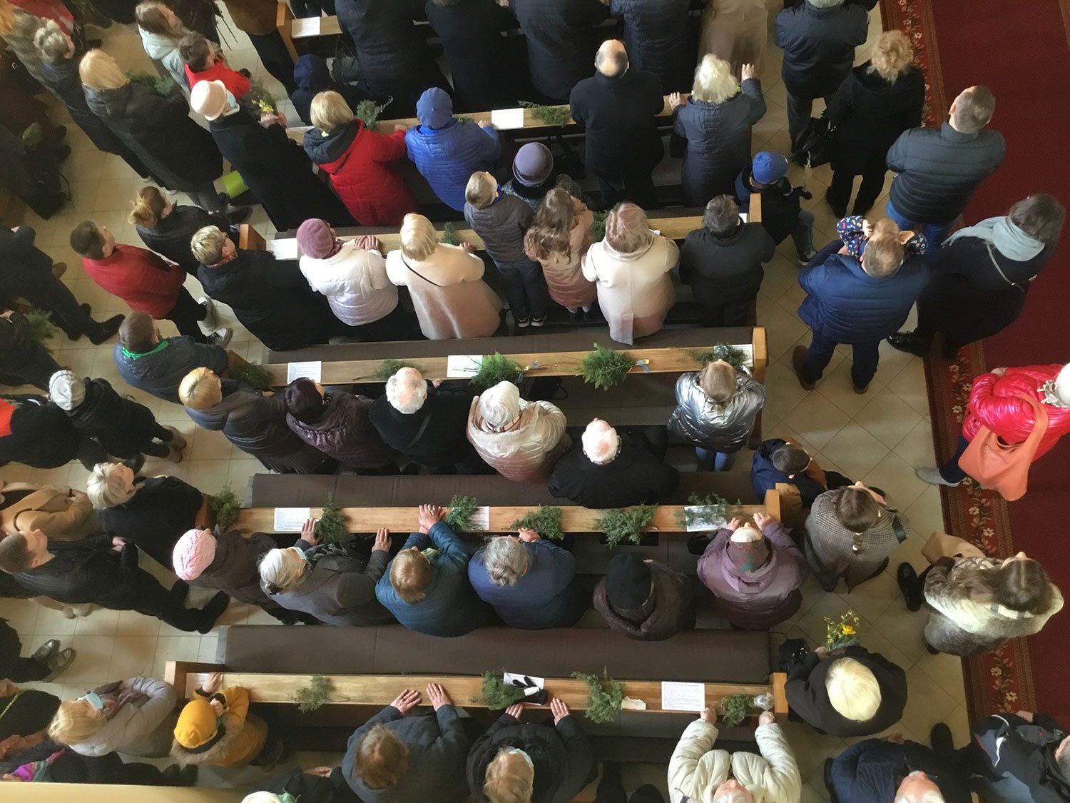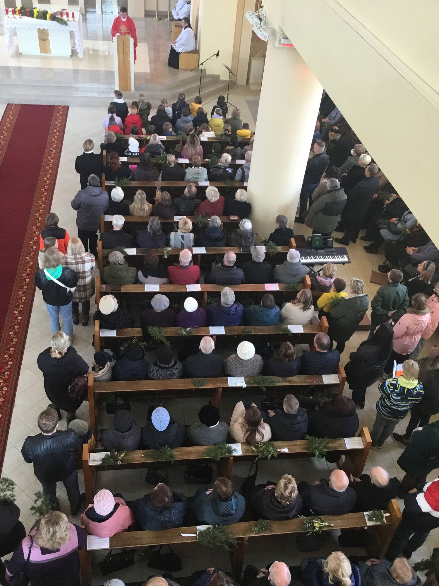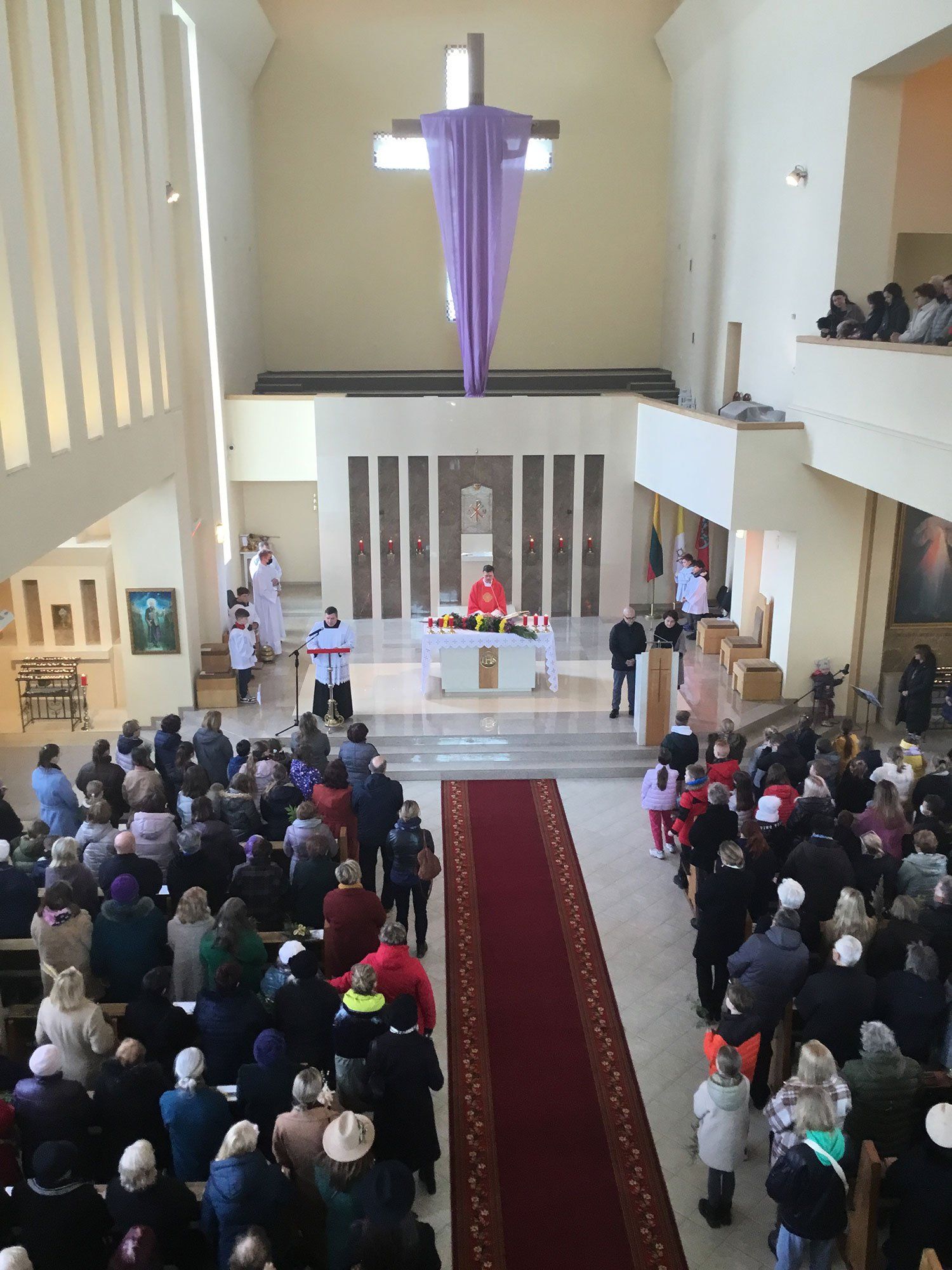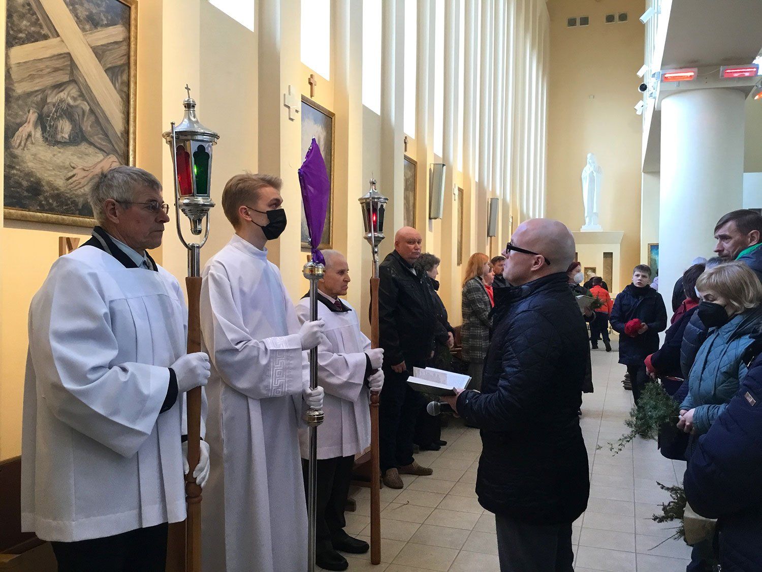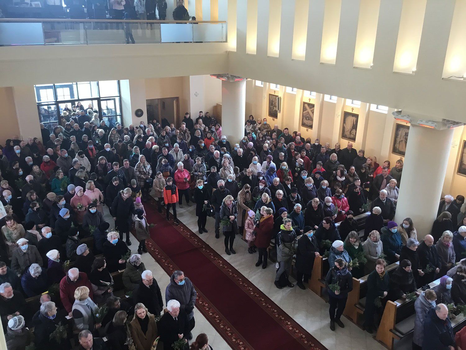 Skirtingai negu užpernai ir pernai, kai dėl pandemijos buvo ribojamas maldininkų skaičius, šių metų Verbų sekmadienio Mišiose vėl dalyvavo gausus būrys tikinčiųjų. Prieš pamaldas buvo einamas Kryžiaus kelias. Žmonės aktyviai dalyvavo Kryžiaus kelio maldoje bei stočių mąstymuose.