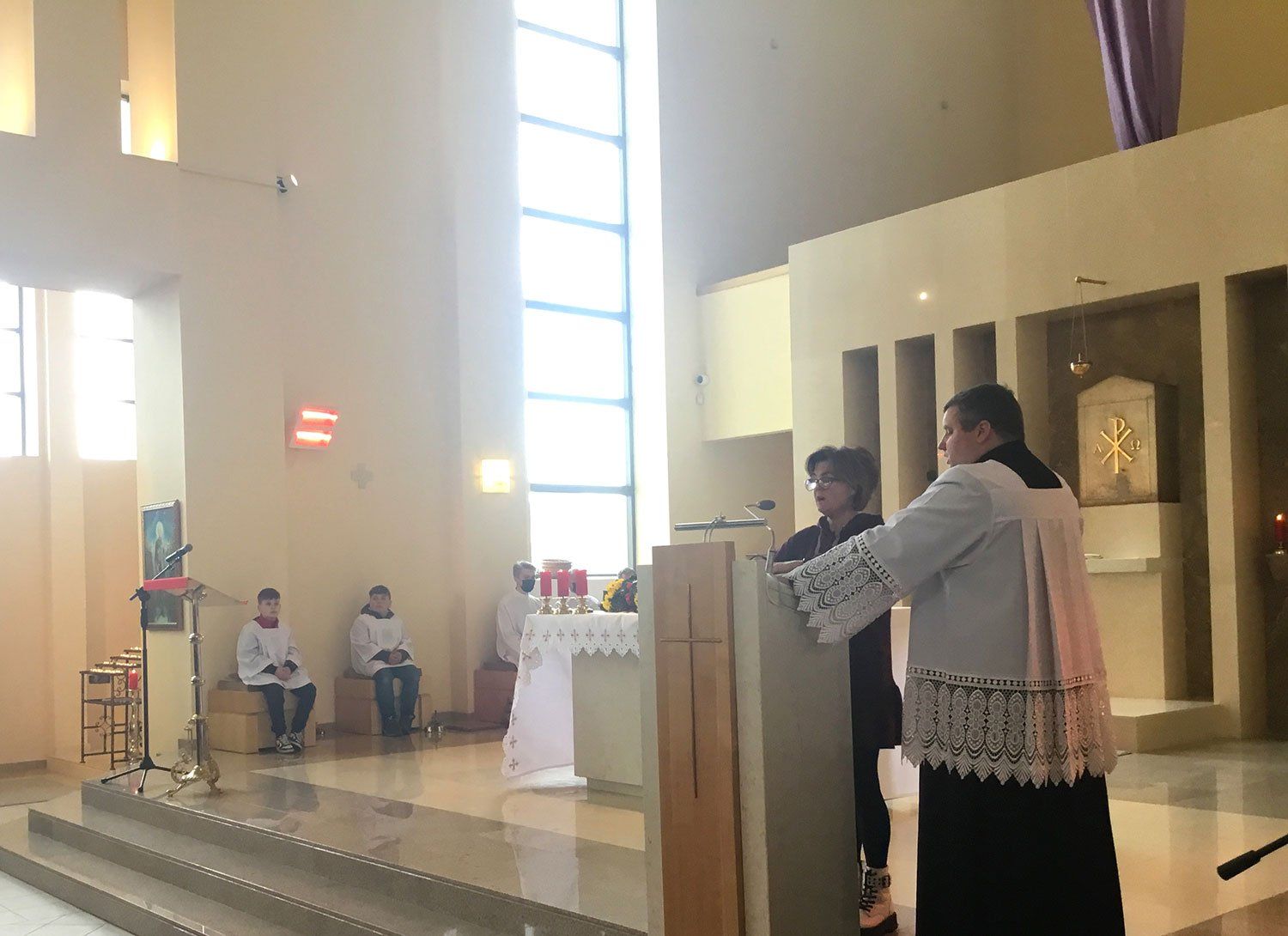 Vėliau buvo skaitoma mūsų Viešpaties Jėzaus Kristaus Kančios istorija, kurią vaidmenimis perteikė dvasininkas ir pasauliečiai skaitovai.