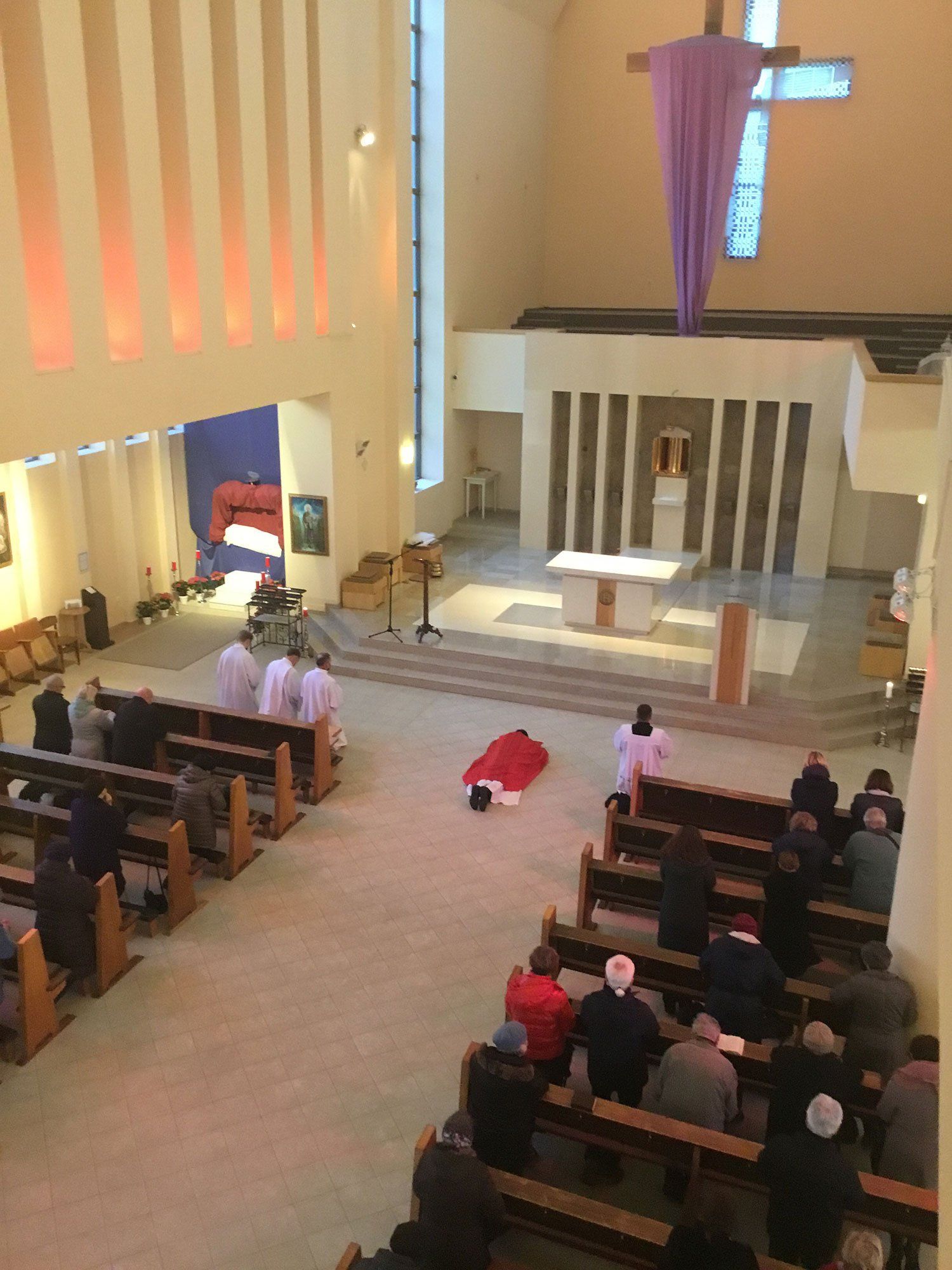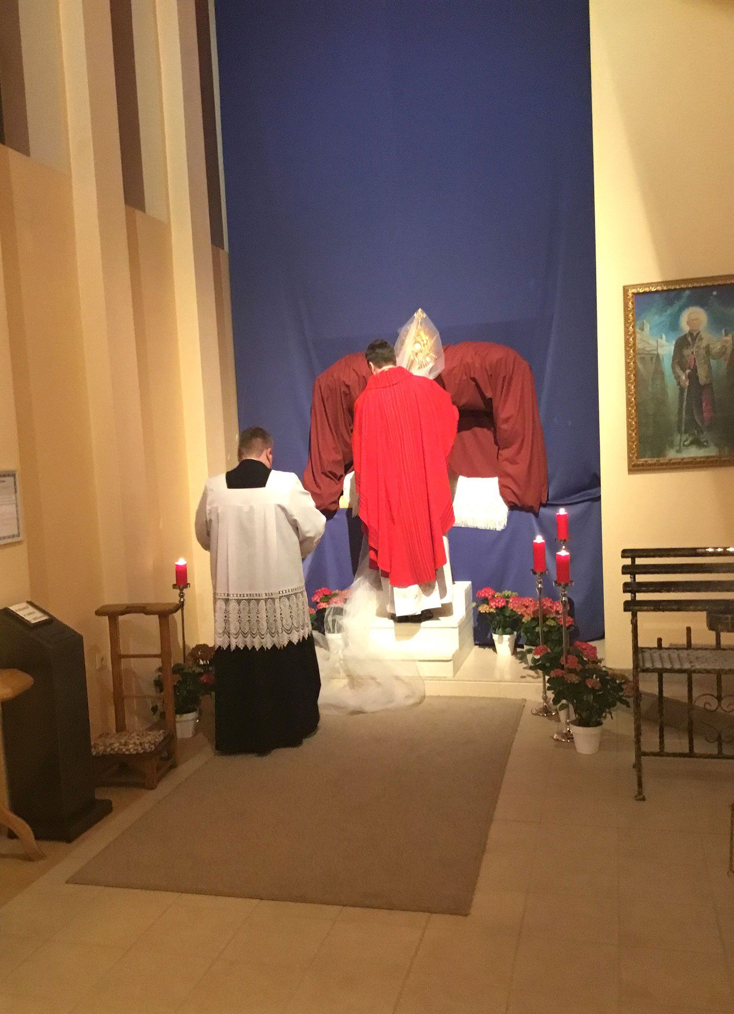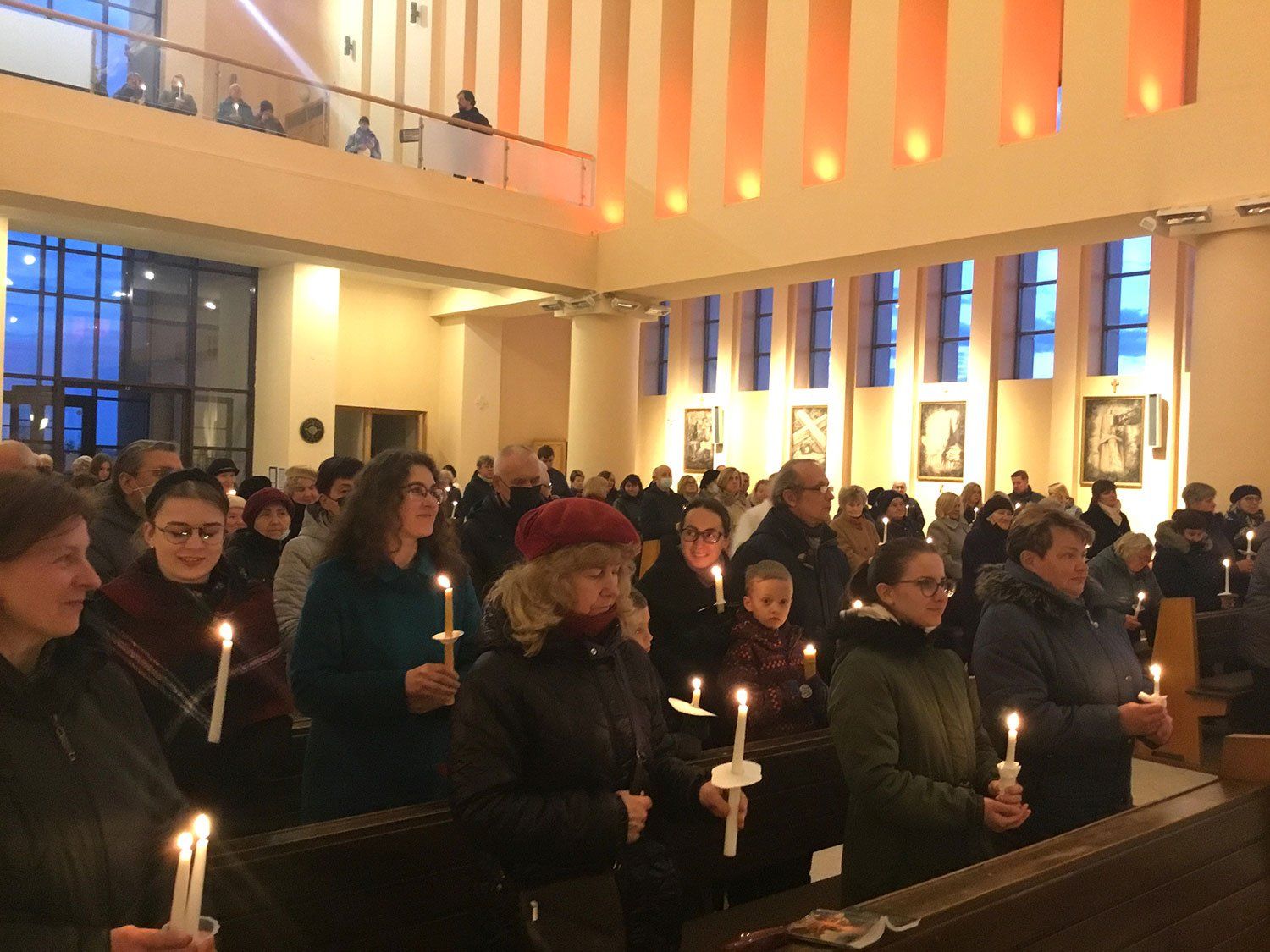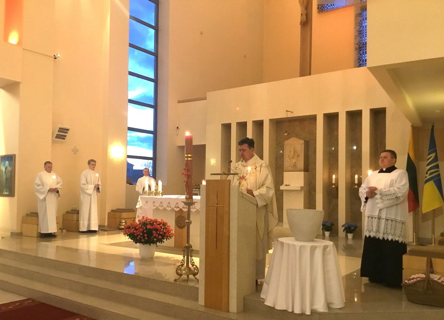 Per naktį, iki Velykų ryto 8.00 valandos šv. Mišių, tikintieji budėjo prie įrengto Kristaus kapo bažnyčioje bei dalyvavo Šenčiausiojo Sakramento adoracijoje, giedojo žemaičių „Kalvarijos kalnus“, meldėsi už parapijos šeimas, taiką Ukrainoje.