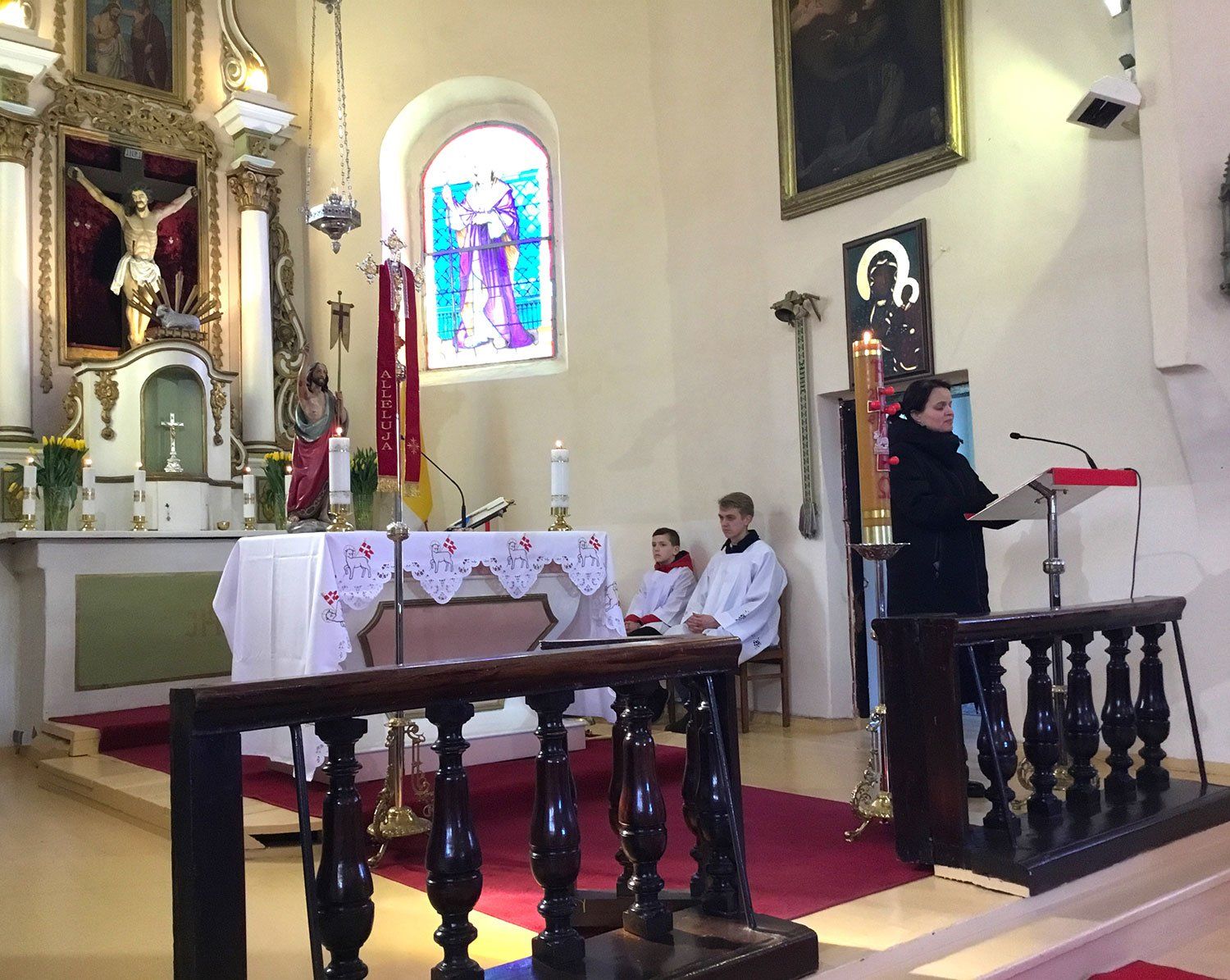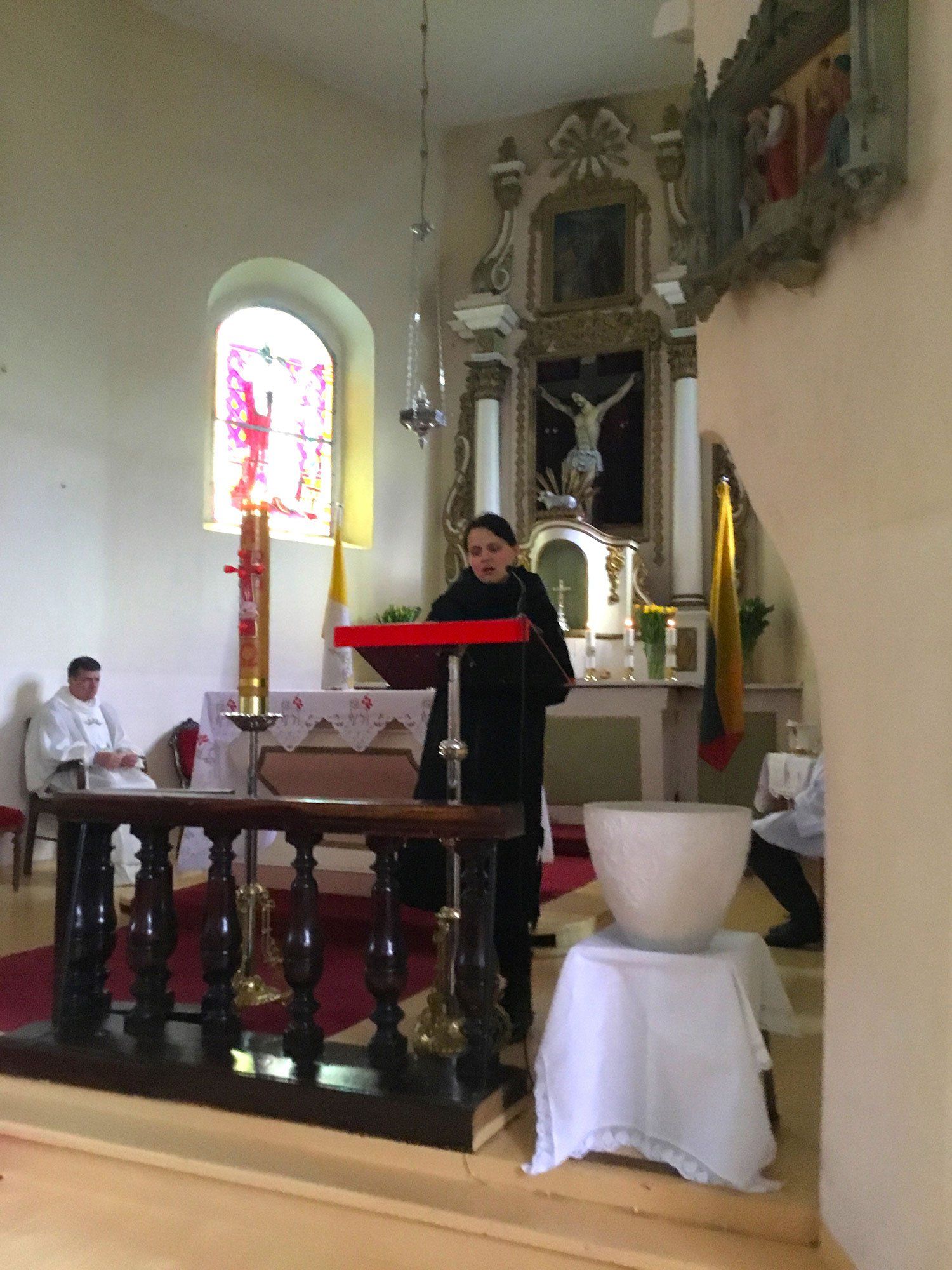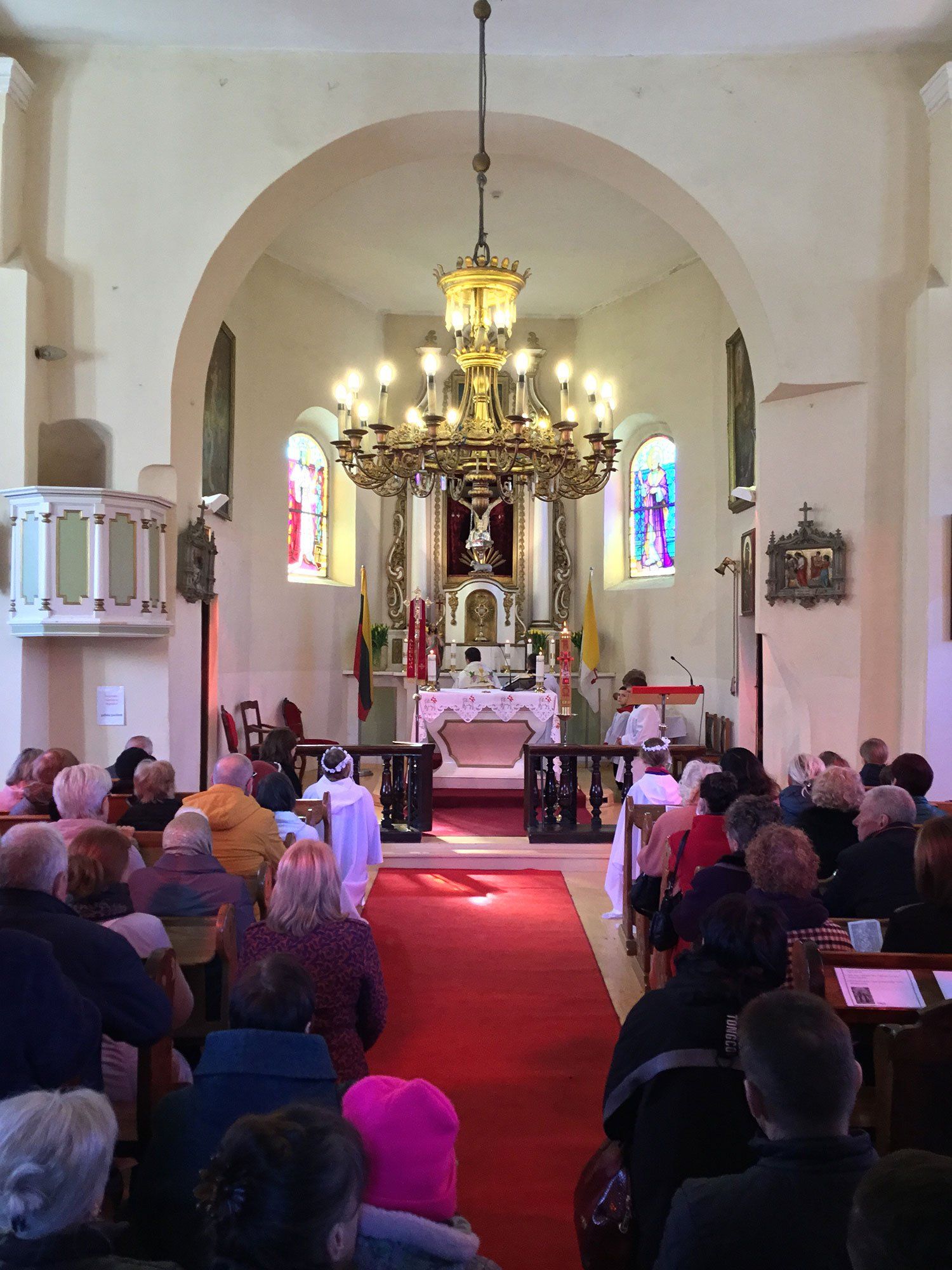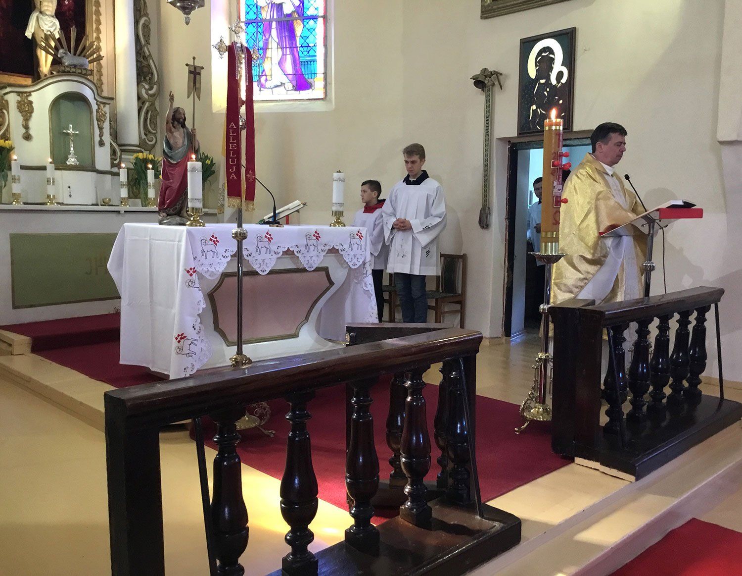 Šventų Velykų iškilmės liturgijai vadovavo parapijos klebonas kun. Gintaras Pūras. Dvasininkui talkino liturginę praktiką atliekantis klierikas Mantas Šideikis. Klebonas Velykų proga pasveikino pamaldose gausiai dalyvavusius tikinčiuosius bei visiems nuoširdžiai palinkėjo būti vilties ir džiaugsmo žmonėmis skelbiančiais aplinkiniams žinią, kad „Kristus prisikėlė, iš tikrųjų prisikėlė!”
