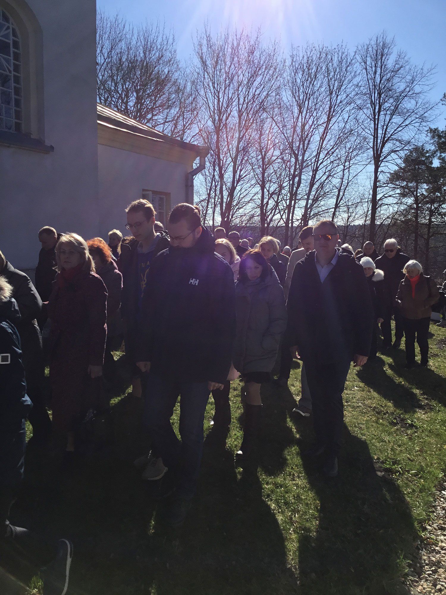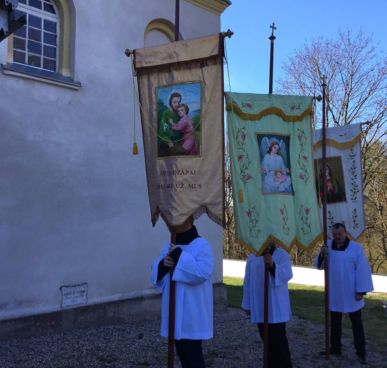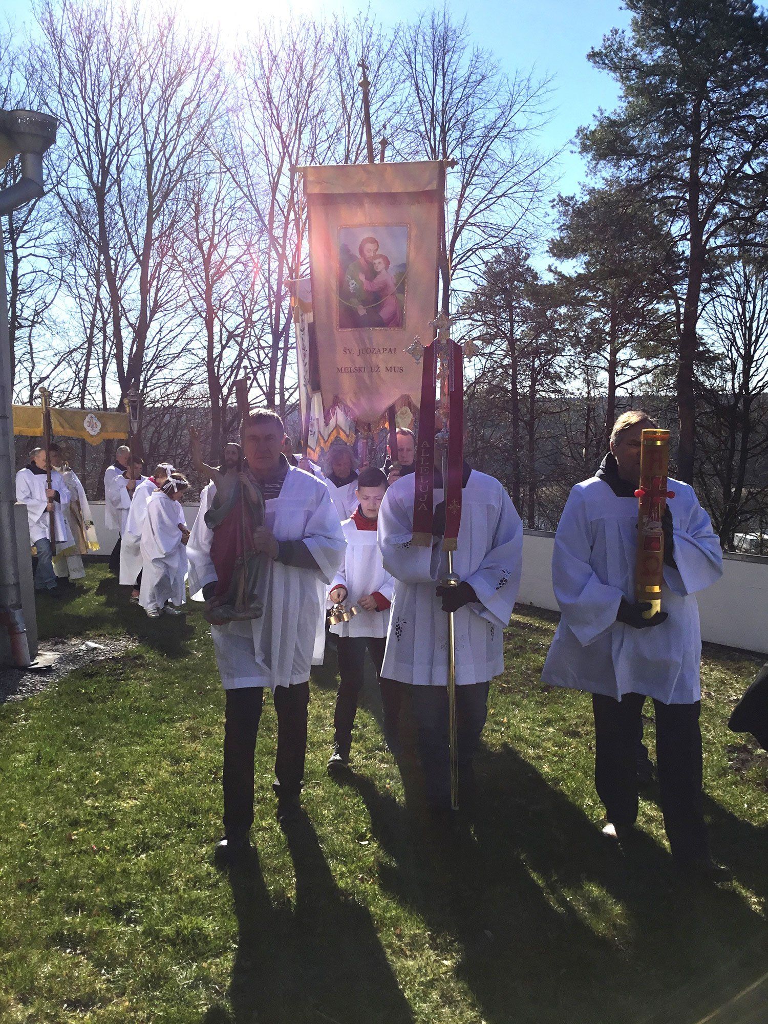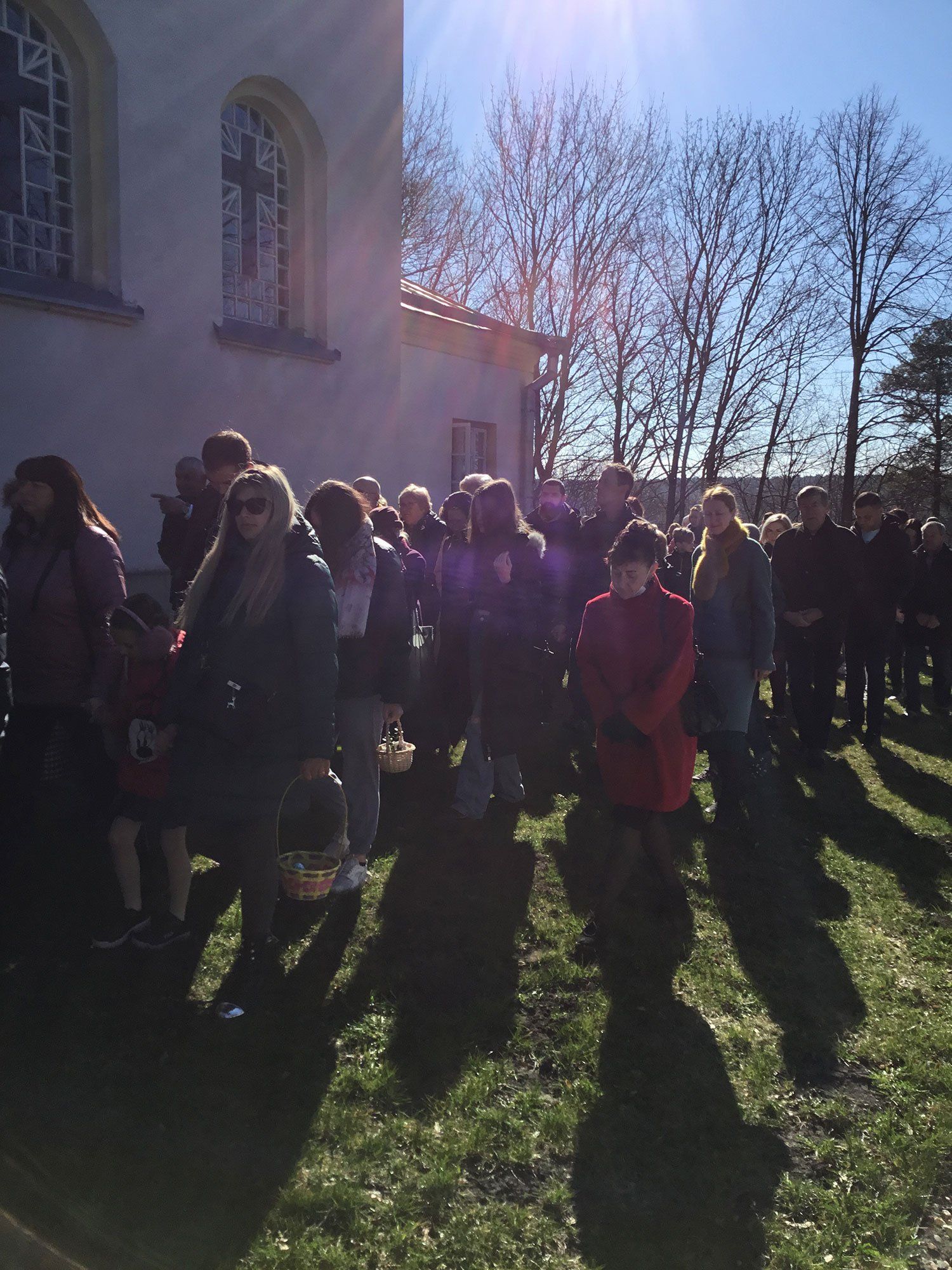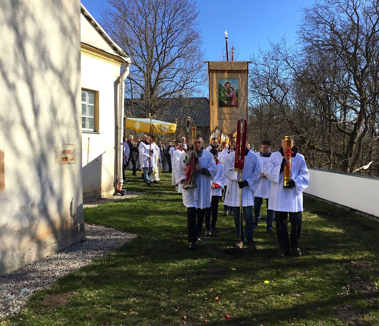 Balandžio 17 dieną, Velykų - Kristaus Prisikėlimo sekmadienį į pamaldas gausiai rinkosi parapijiečiai ir svečiai, bažnyčios šventoriuje rikiavosi šventinės eisenos dalyviai. Po dviejų metų pertraukos vėl buvo einama iškilminga šventinė eisena aplink bažnyčią. Velykų sekmadienio liturgijoje dalyvavo parapijos giesmininkai ir svečiai profesionalūs dūdoriai iš Kėdainių.