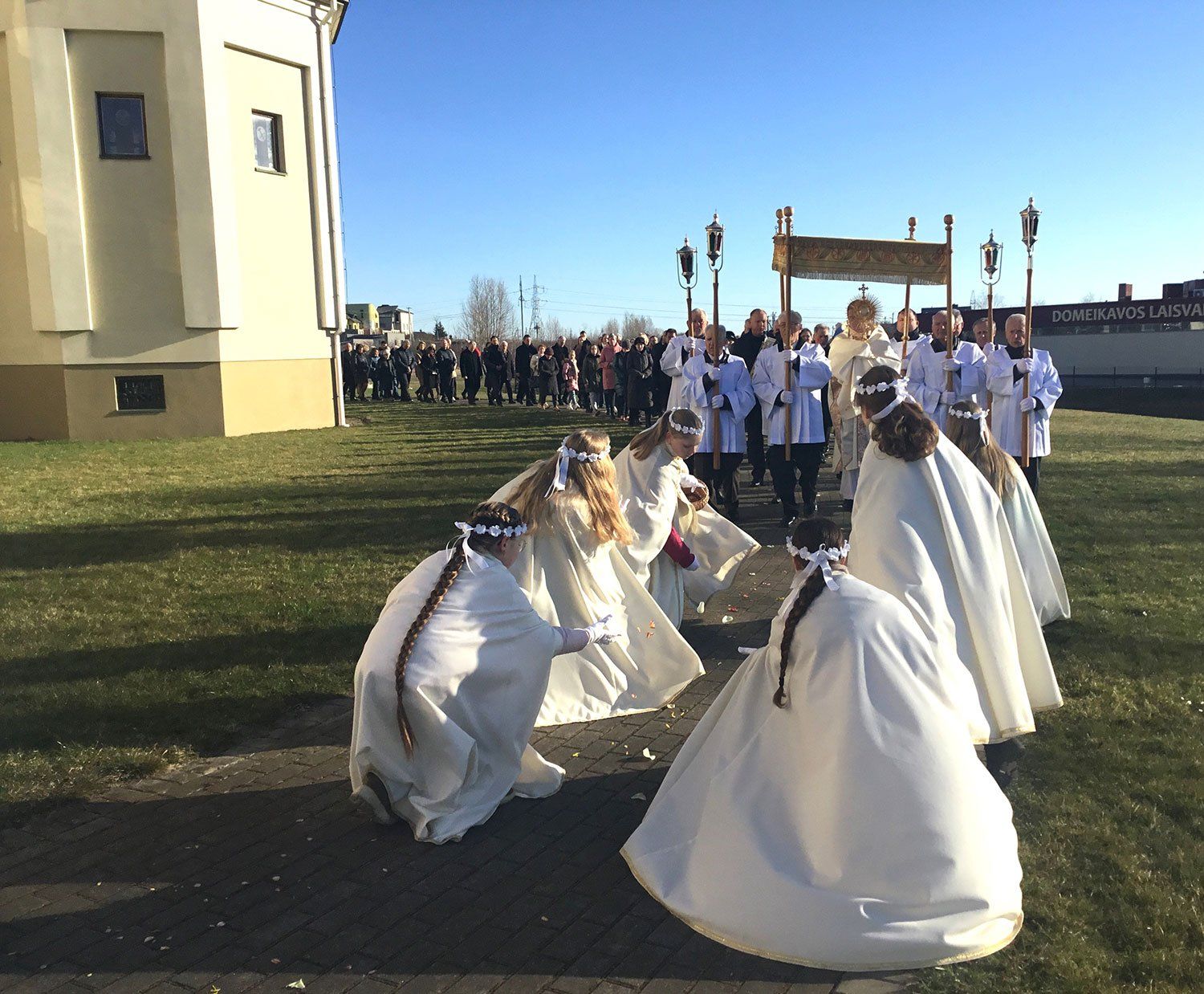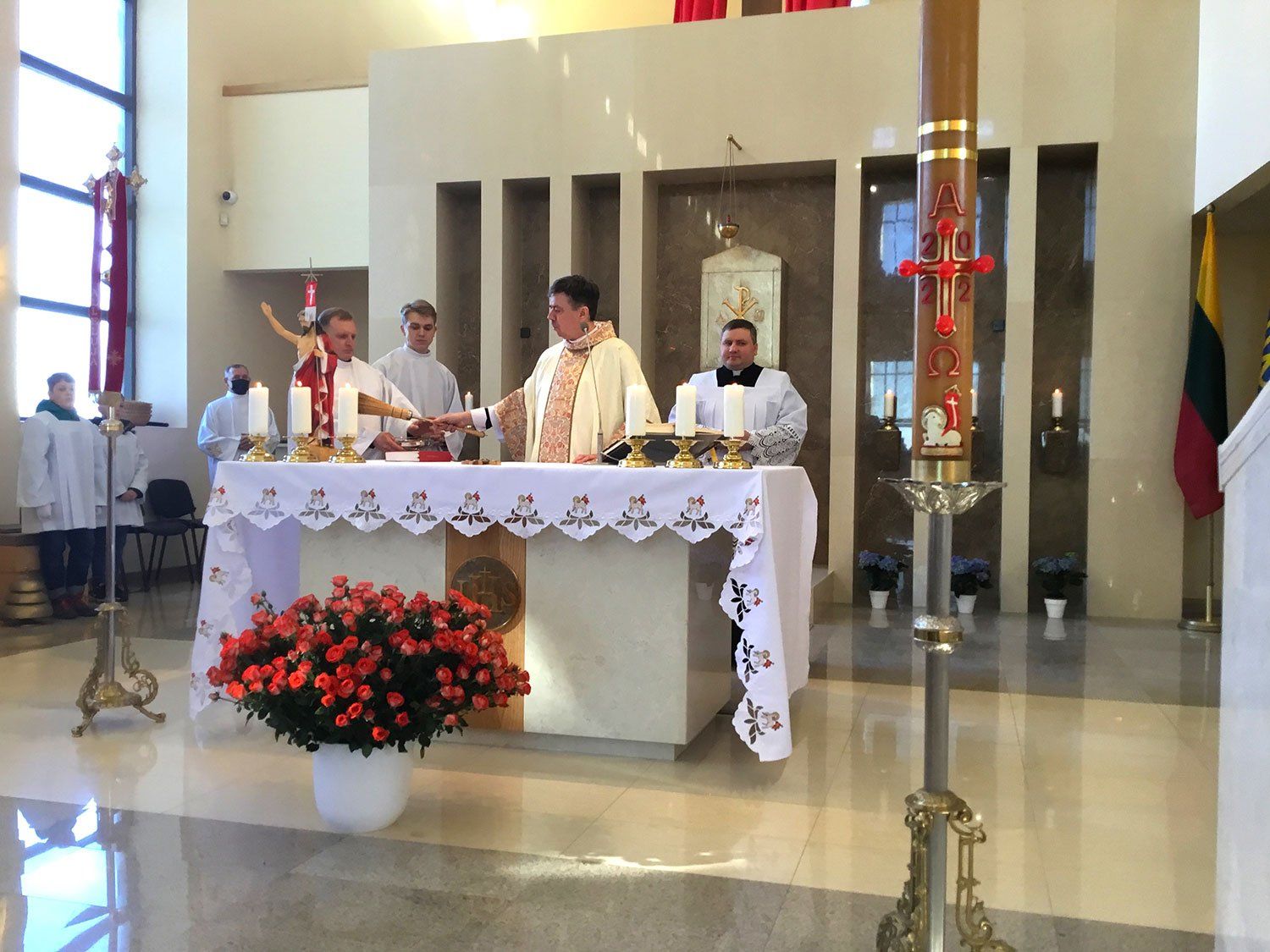 padėkojo už nuoširdžią tarnystę parapijos tarnautojams, klierikui Mantui Šideikiui ir parapijos savanoriams. Dvasininkas visiems palinkėjo būti vilties ir džiaugsmo žmonėmis - skelti aplinkiniams žinią, kad „Kristus prisikėlė, iš tikrųjų prisikėlė!”