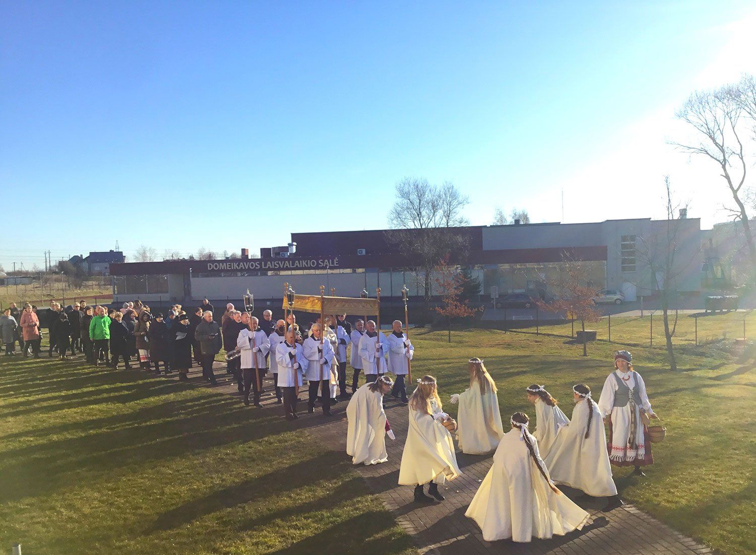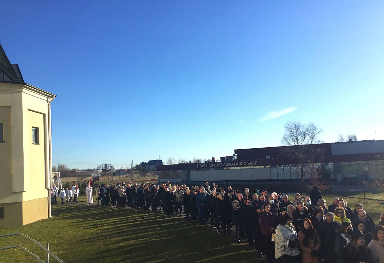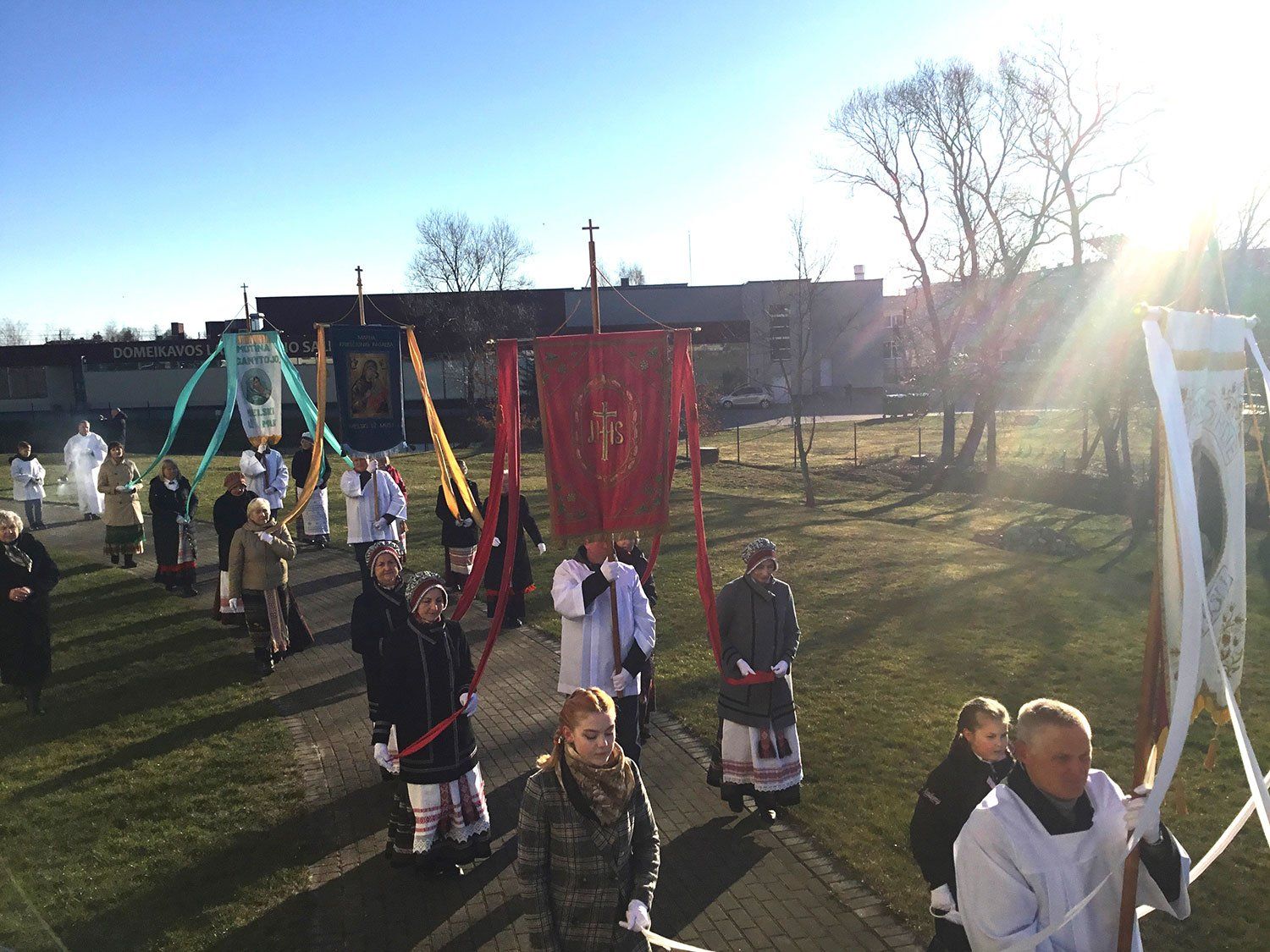 Balandžio 17 dienos ankstyvą Šventų Velykų rytą, žmonės gausiai susirinko į Domeikavos Lietuvos kankinių bažnyčią. Šventoriuje rikiavosi bažnytinės procesijos dalyviai: moterys pasipuošusios tautiniais rūbais, mergaitės baltai aprengtos gėlių barstytojos, ministrantai, vyrai nešini bažnytinėmis vėliavomis ir baldakimu, parapijos giesmininkai ir svečiai profesionalūs dūdoriai iš Kėdainių. Tikintieji gausiai dalyvavo šventinėje procesijoje. Žmonės džiaugėsi iškilminga eisena, nes pastaruosius dvejus metus dėl karantino ribojimų procesijos bažnyčios šventoriuje nevyko.
