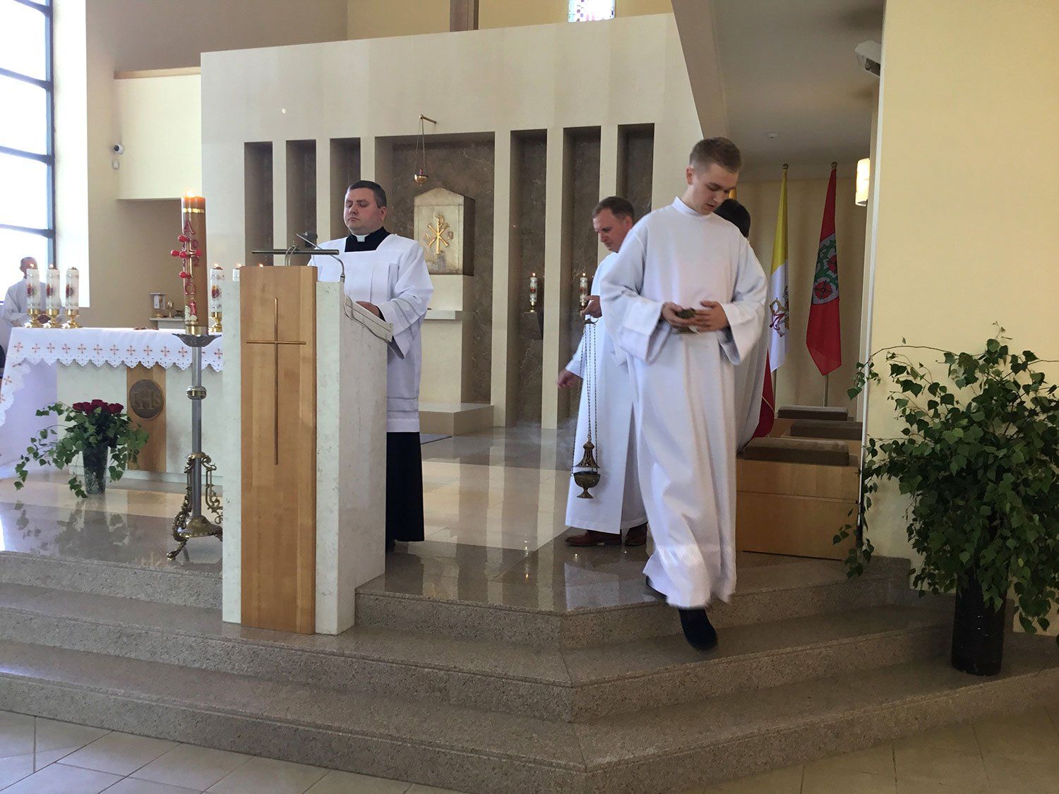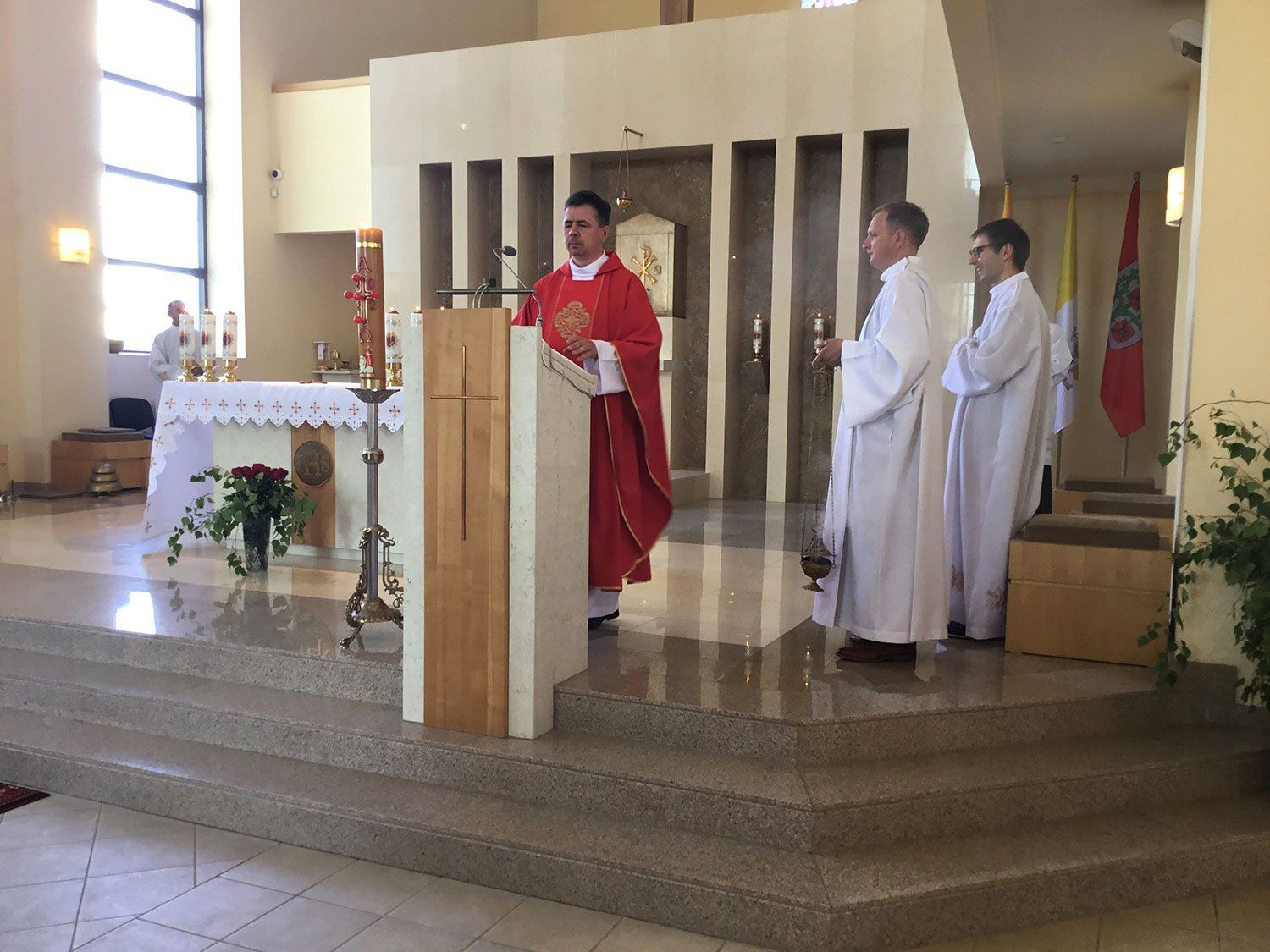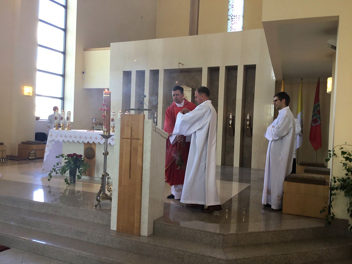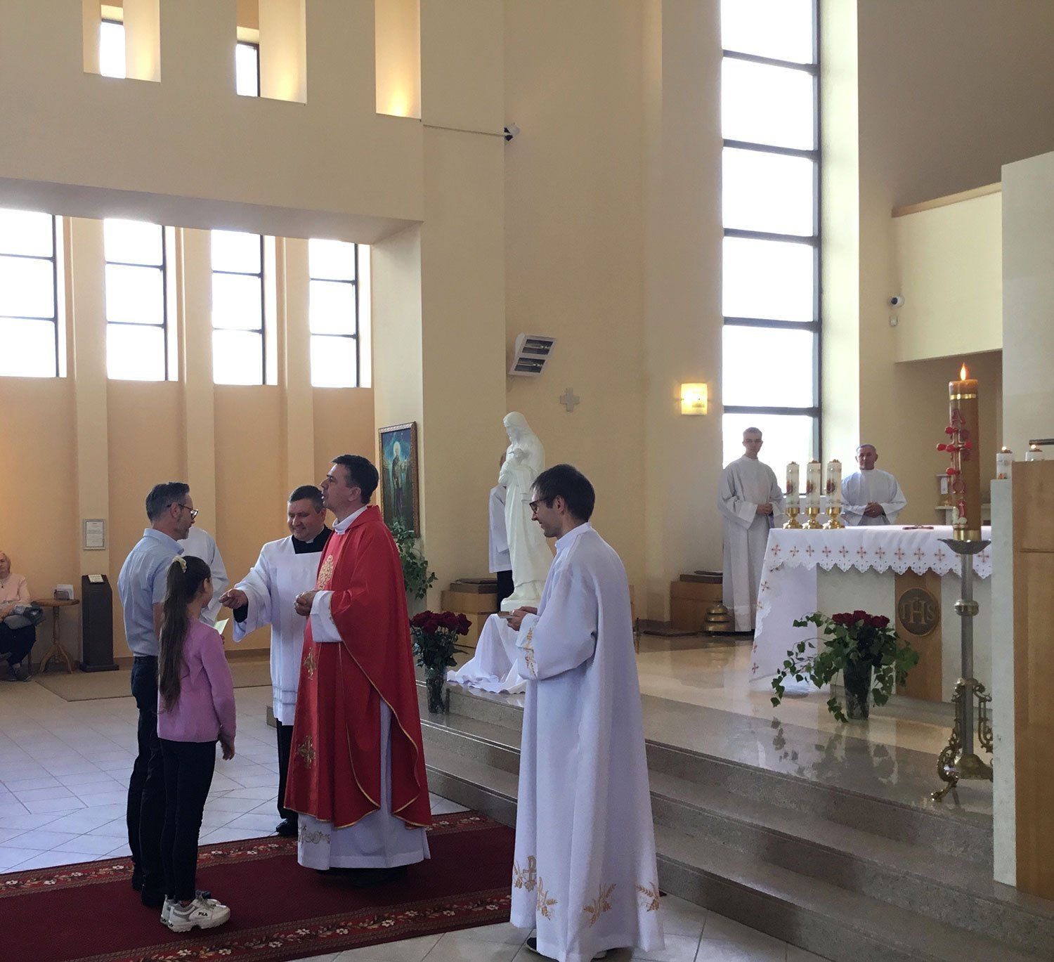 Šv. Mišių metu buvo giedamas Himnas Šventajai Dvasiai bei laiminami pamaldose dalyvaujantys Tėvai.