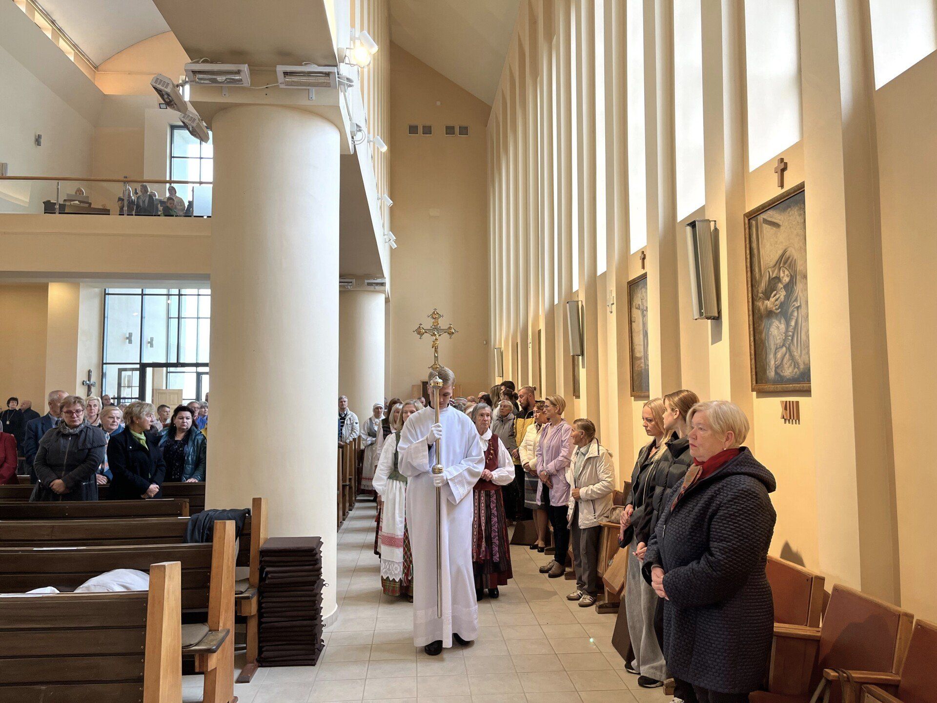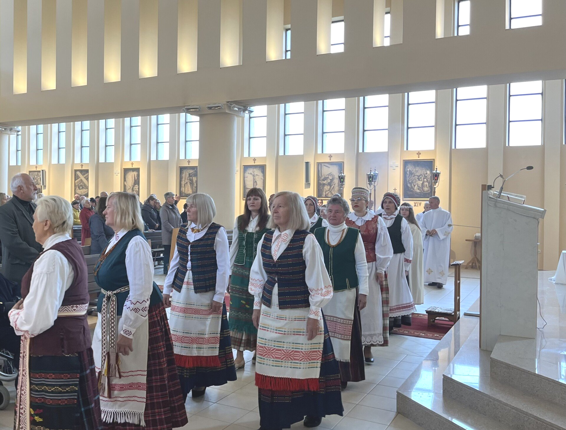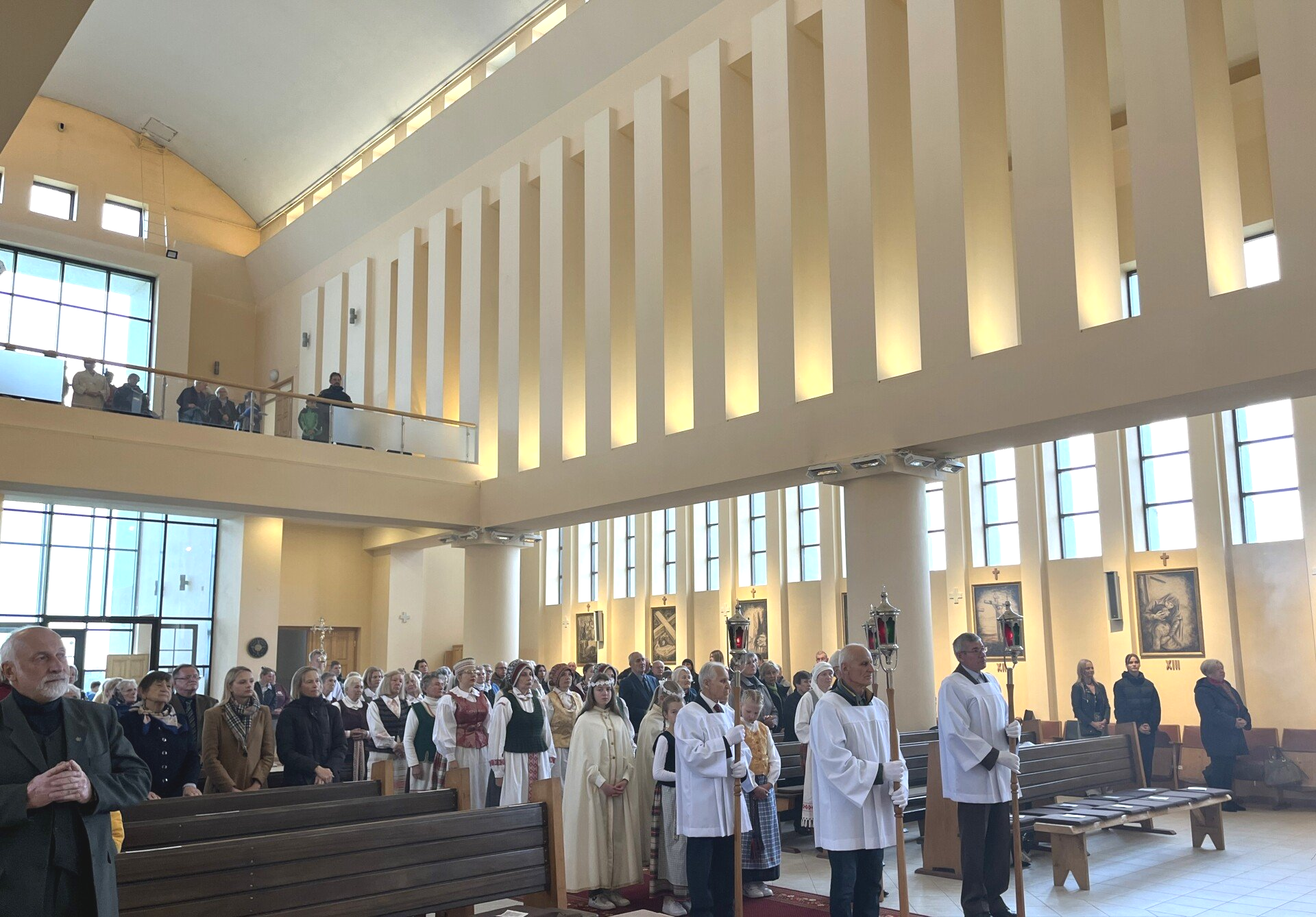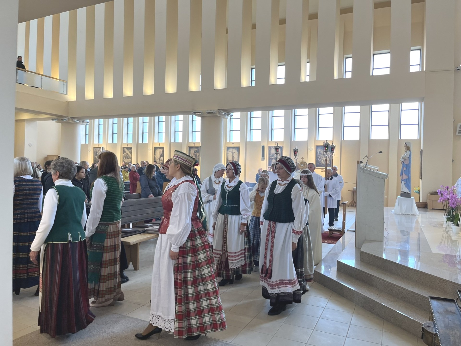 Pamaldų pabaigoje klebonas padėkojo procesijos dalyviams: zakristijonui, ministrantams, tautiniais drabužiais pasipuošusioms mergaitėms ir moterims.