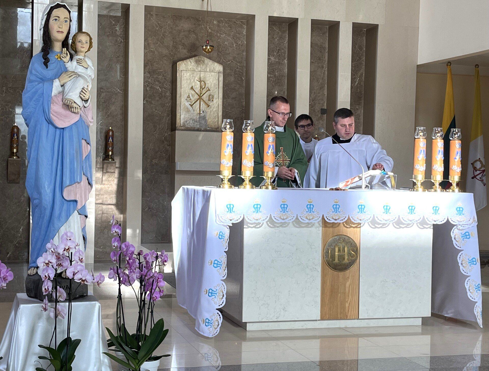 Spalio 30 dieną, sekmadienį Domeikavos Lietuvos kankinių bažnyčioje šv. Mišias aukojo misionierius kun. Kastytis Šulčius tarnaujantis Romos katalikų Almatos Švč. Trejybės vyskupijoje Kazachstane.