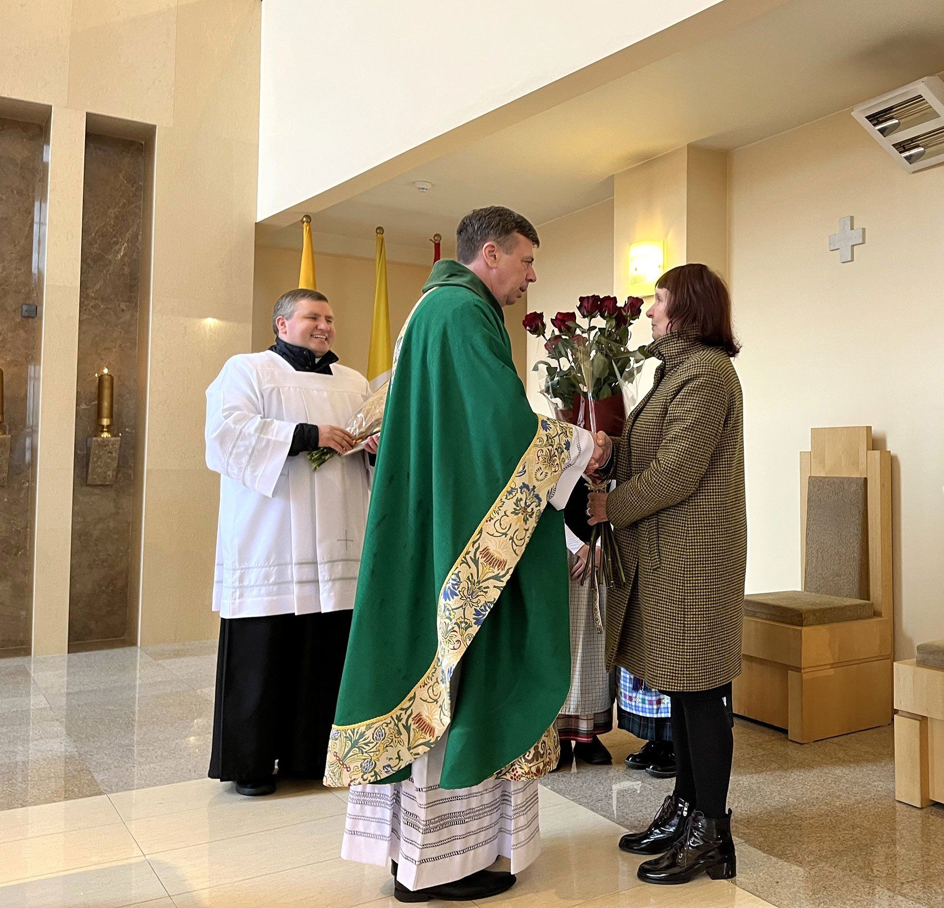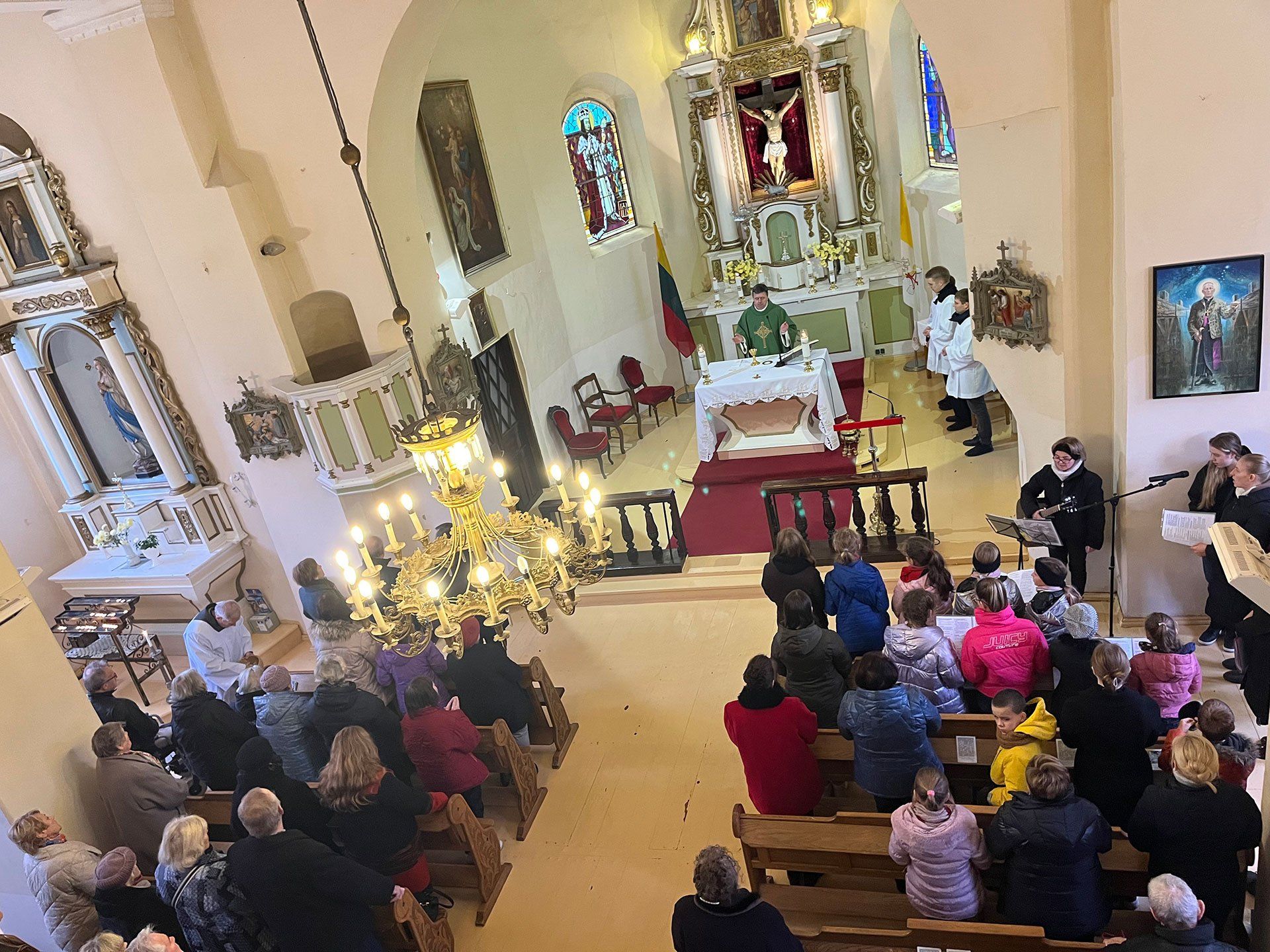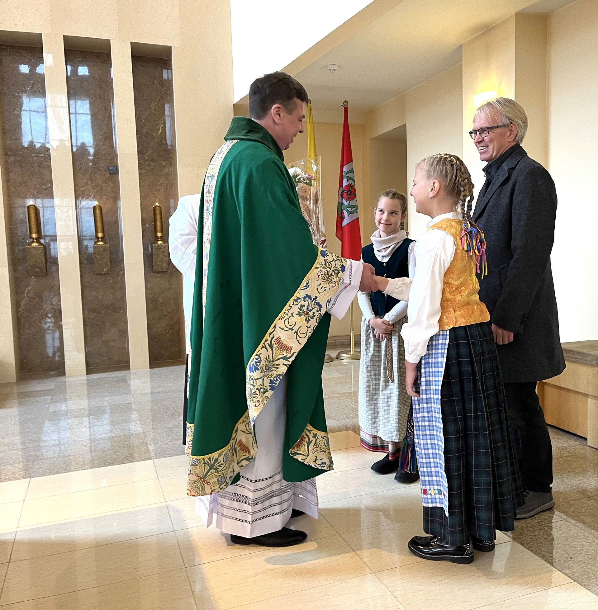 Šv. Mišias aukojęs klebonas kun. Gintaras Pūras tądien kaip tik minėjo 55 metų jubiliejų.