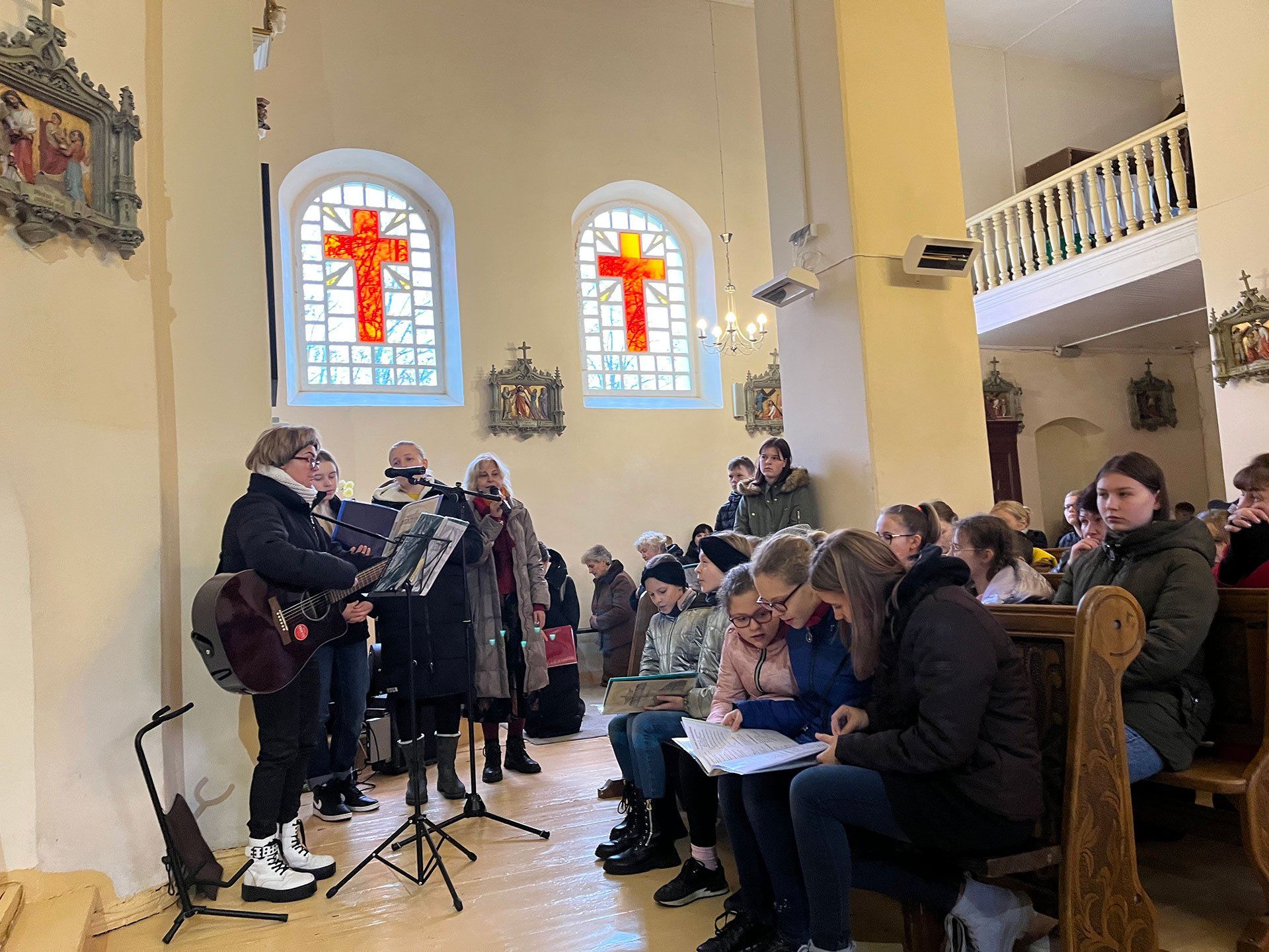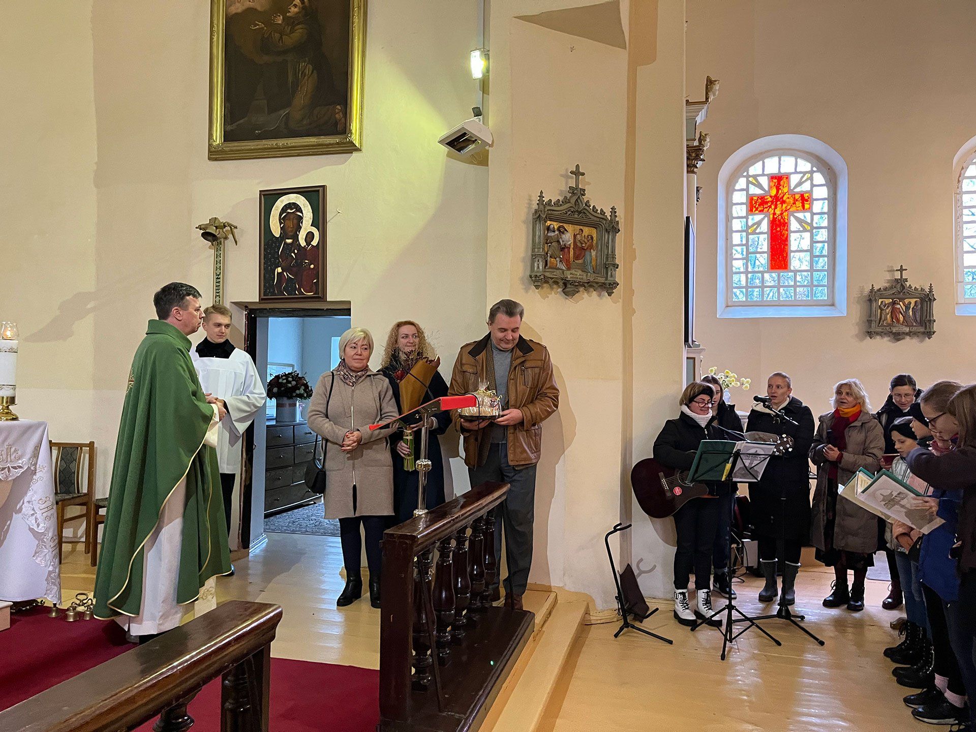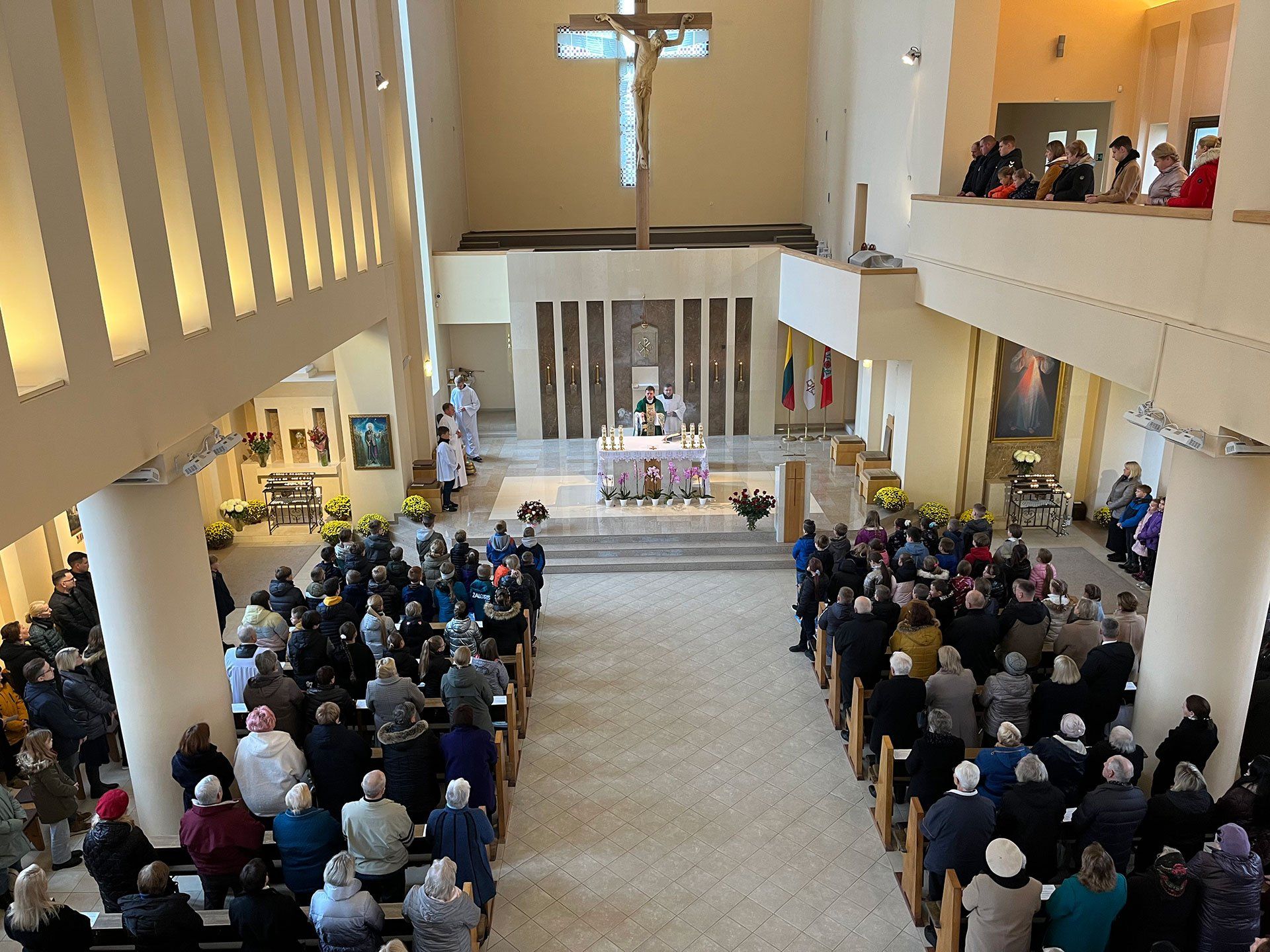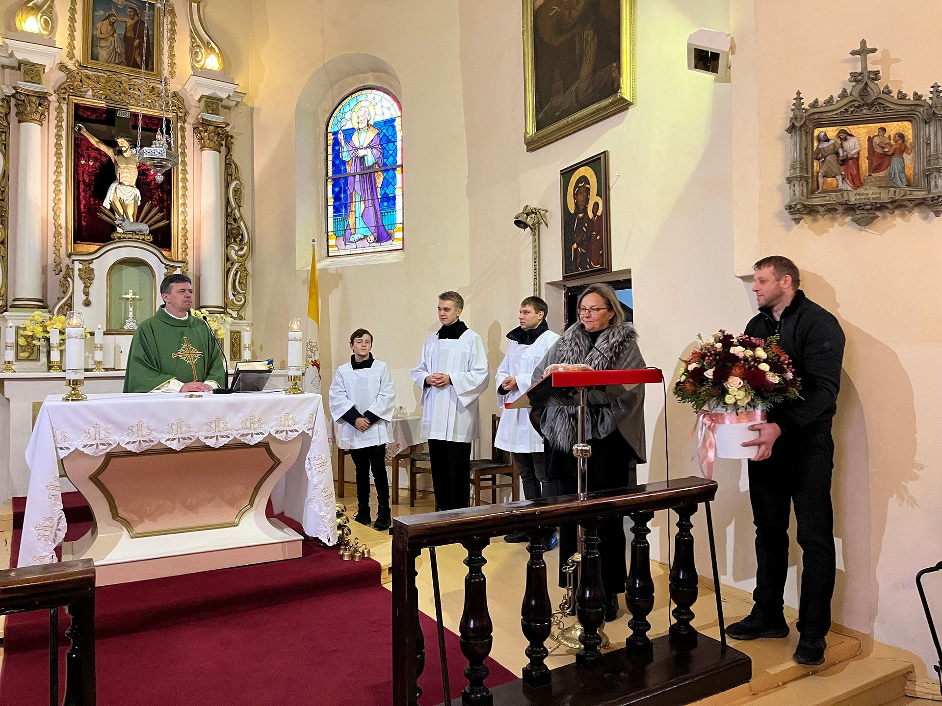 Šv. Mišias aukojęs klebonas kun. Gintaras Pūras tądien kaip tik minėjo 55 metų jubiliejų.