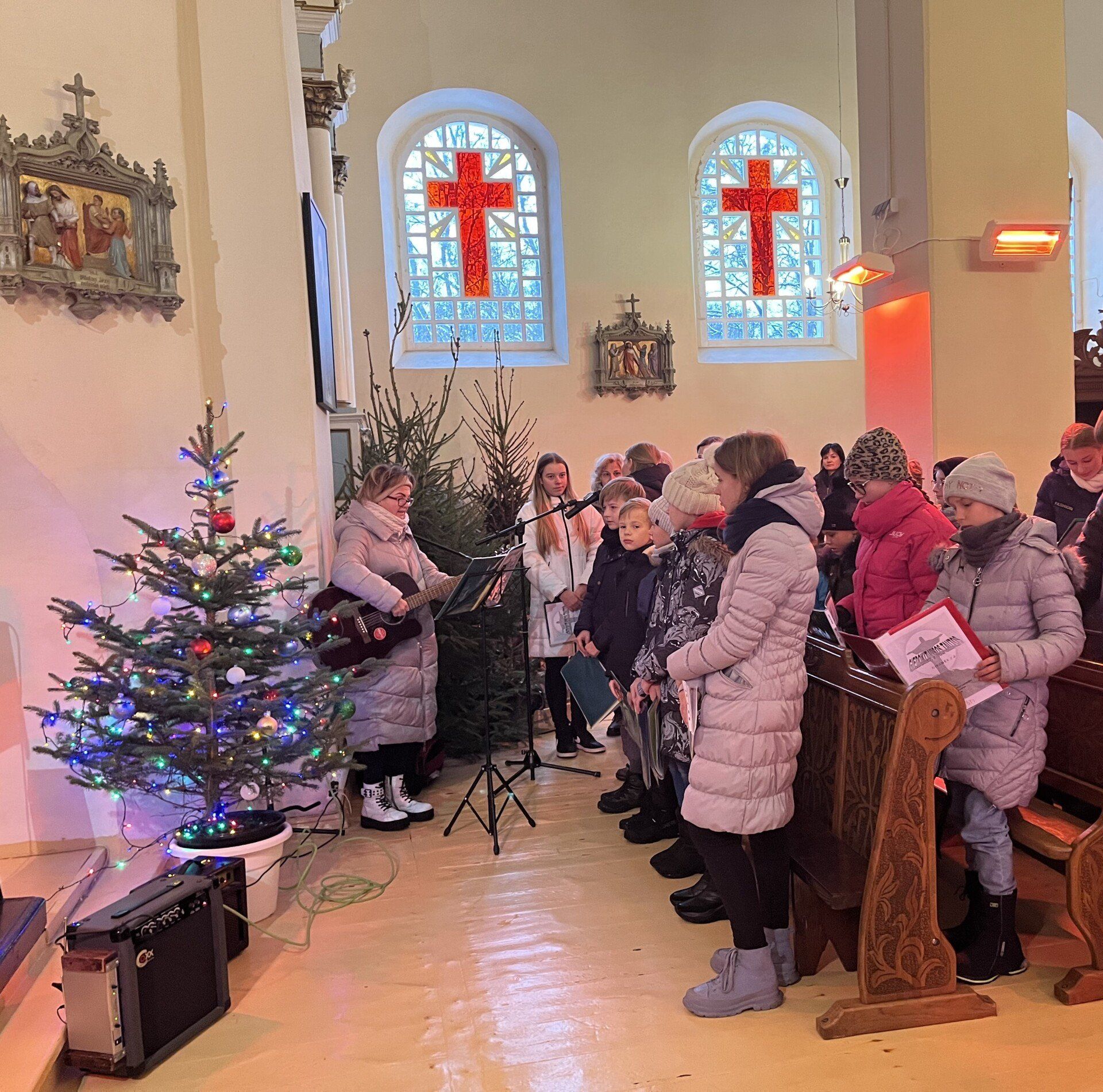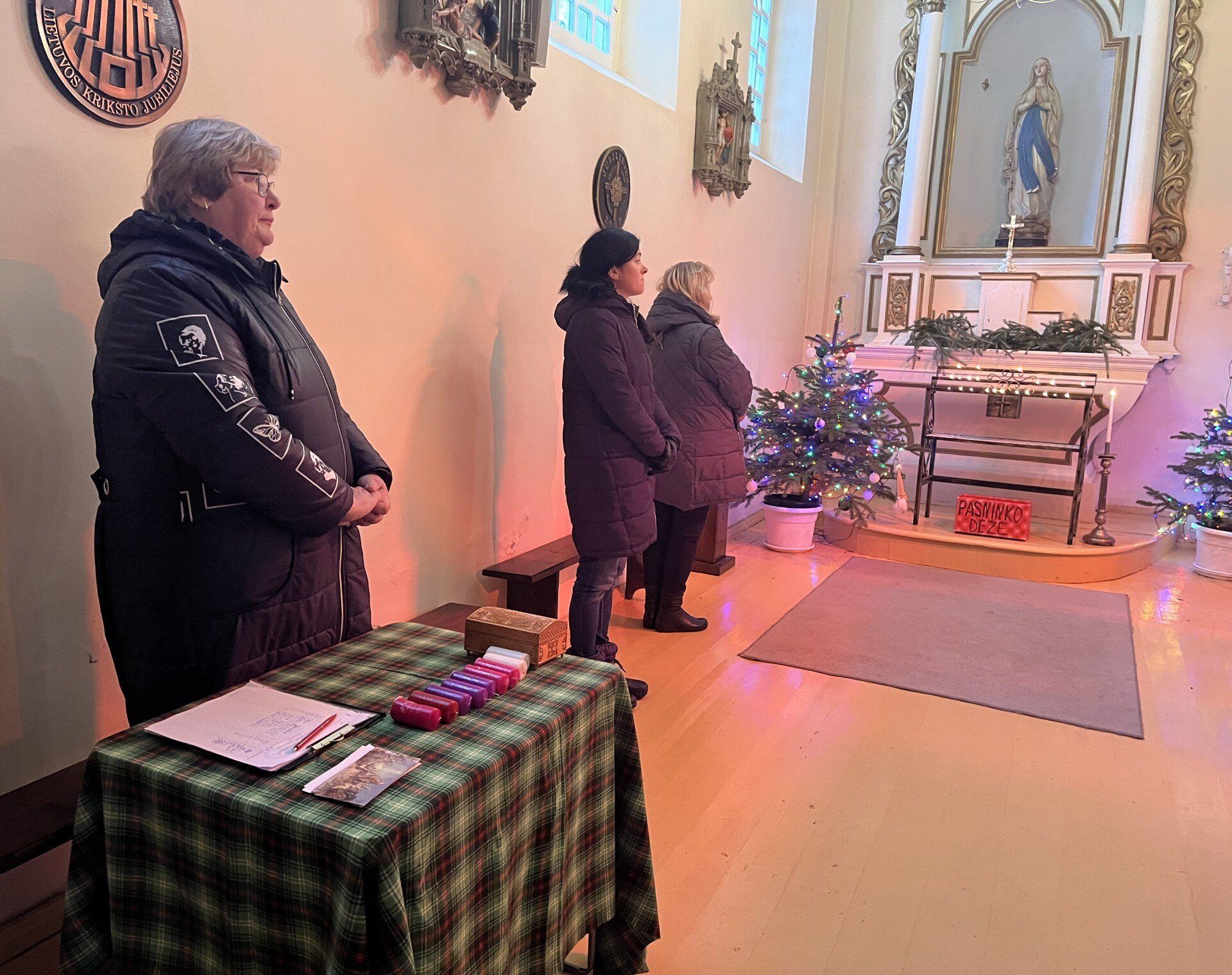 Dvasininkas padėkojo bažnyčios talkininkams, kurie puošė Lapių bažnyčią: puošė eglutes, įrengė prakartėlę ir kt.