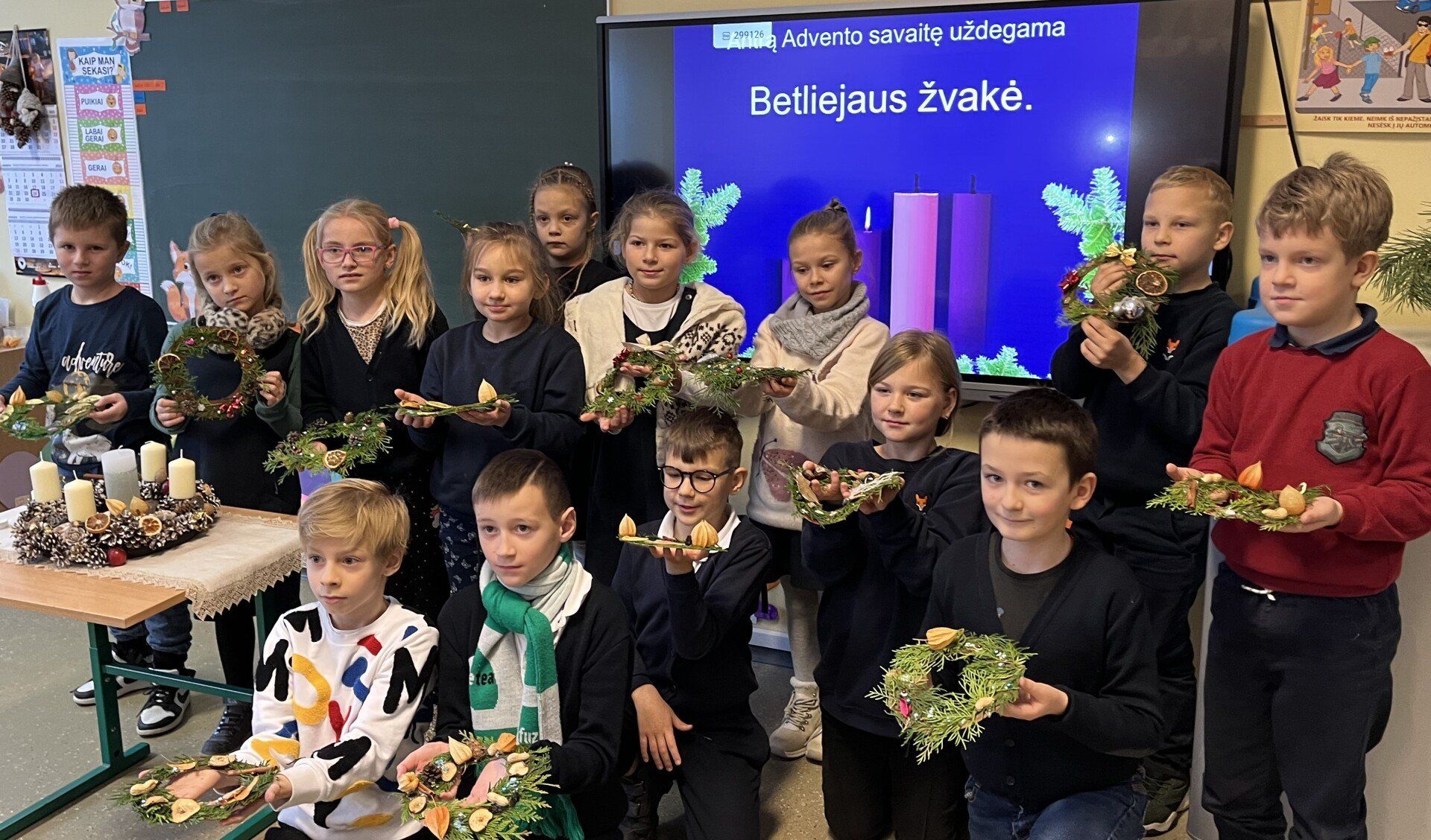 Lapių pagrindinės mokyklos pradinukai padedant mokytojoms pasigamino Advento vainikus bei vyresniųjų klasių mokiniai gamino nykštukus.