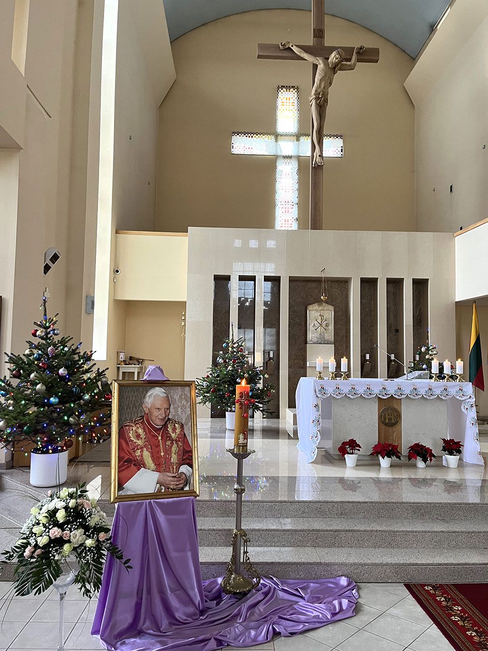 2023 01 01 Popiežius emeritas Benediktas XVI pagerbtas Domeikavos bažnyčioje
