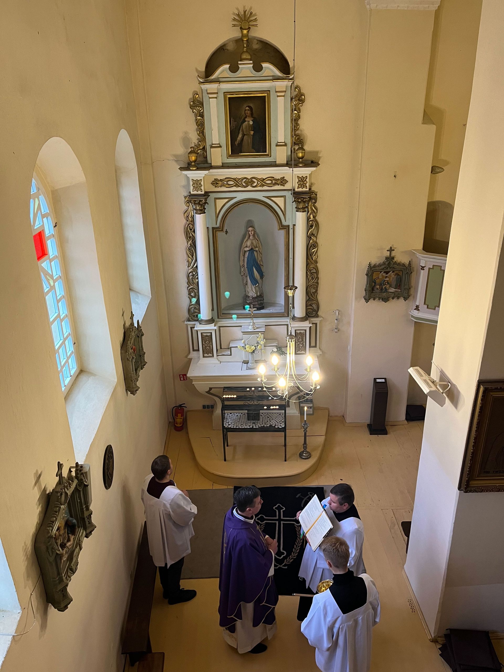 Po pamaldų bažnyčioje vyko Pirmajai Šventajai Komunijai besirengiančių vaikų ir jų tėvelių susirinkimas. Parapijos klebonas kun. Gintaras Pūras atsakė į tėveliams rūpimus klausimus. Nutarta, kad Lapių bažnyčioje Pirmosios Šv. Komunijos šventė vyks birželio 3 dieną, šeštadienį 12.00 valandą.