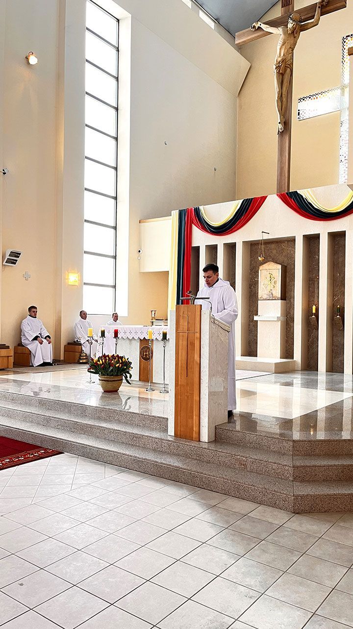 Kovo 11 d., šeštadienį minėjome valstybinę šventę - Lietuvos Nepriklausomybės atkūrimo dieną. Šv. Mišias už mūsų Tėvynę aukojo parapijos klebonas kun. Gintaras Pūras. Pamaldų pradžioje dvasininkas priminė, kad prieš 33 metus – 1990 m. kovo 11 d. Aukščiausioji Taryba – Atkuriamasis Seimas pasirašė Lietuvos nepriklausomybės atstatymo aktą. Tą dieną išsipildė daugumos puoselėtos viltys – mes vėl tapome laisvi, atkūrėme savo Nepriklausomą Lietuvos valstybę. Dvasininkas pamaldų dalyviams linkėjo tikėjimo, kad Lietuva išliks stipri ir teisinga valstybė bei kvietė remti kovojančią už Nepriklausomybę Ukrainą.