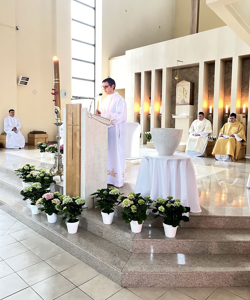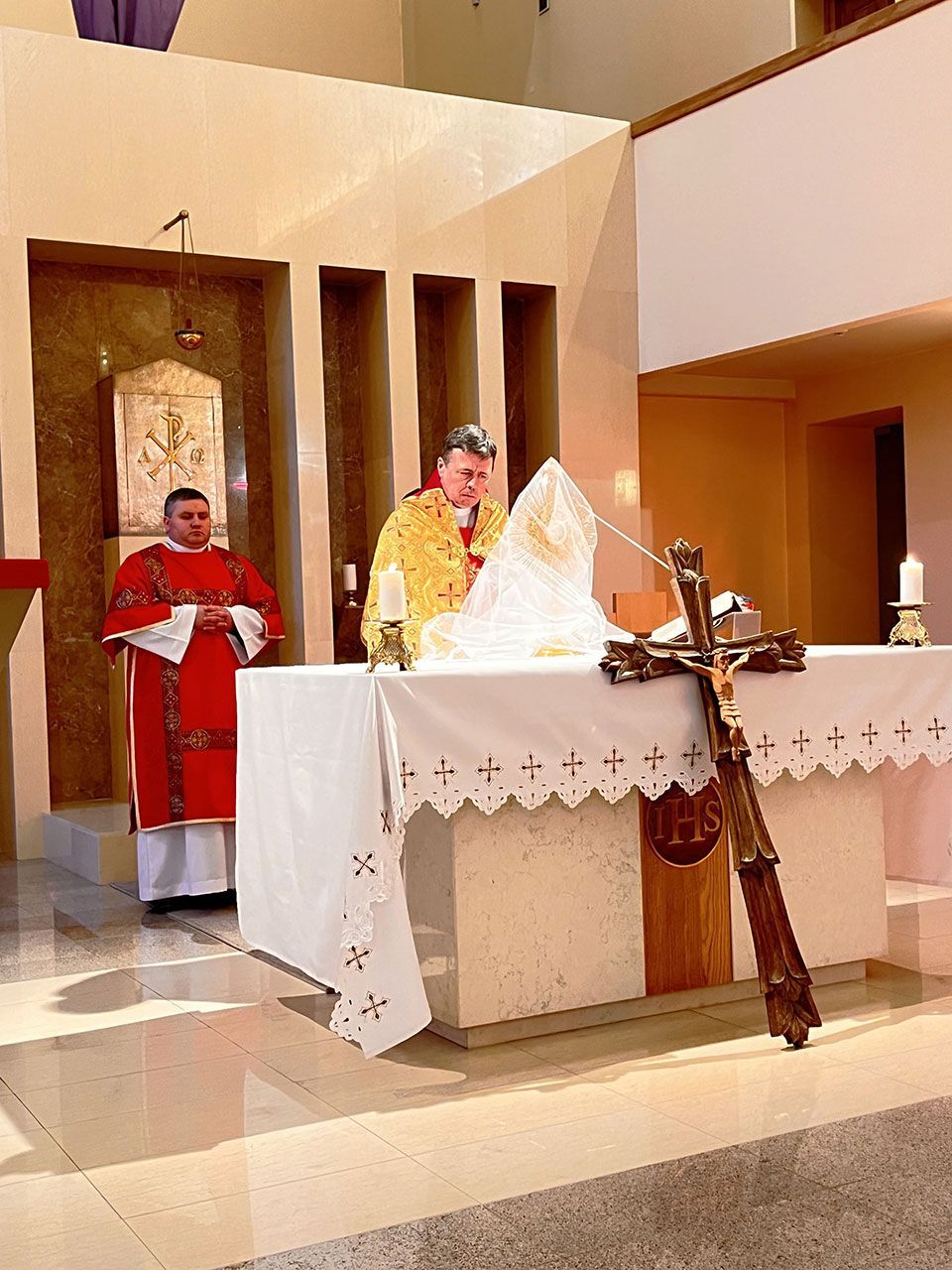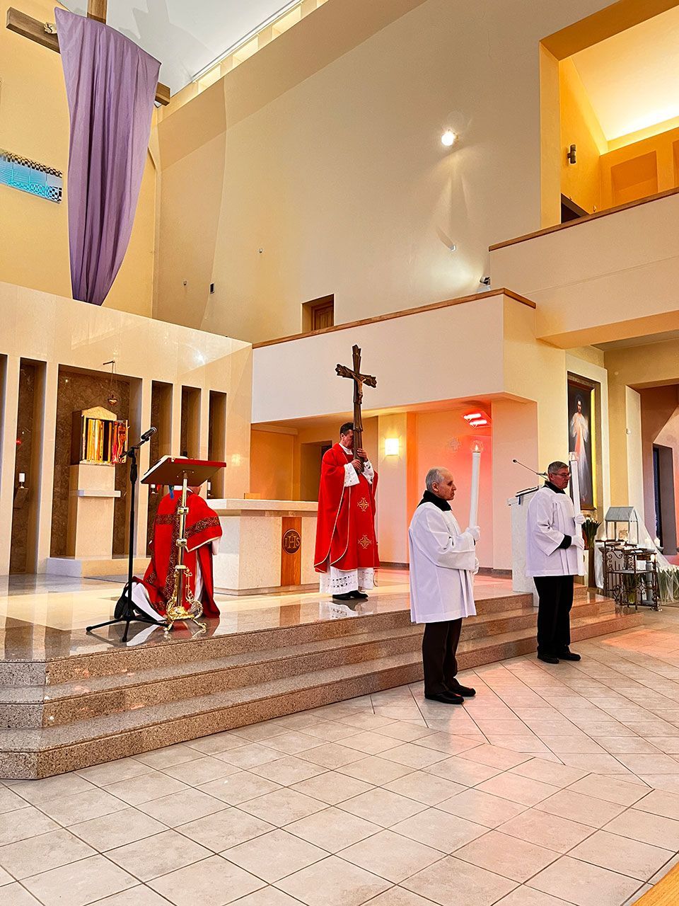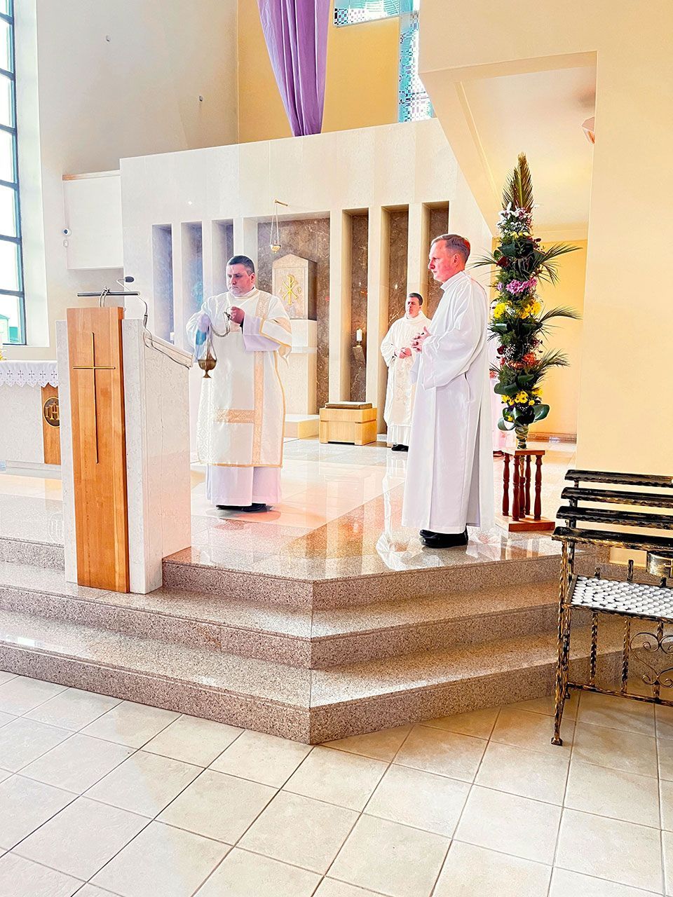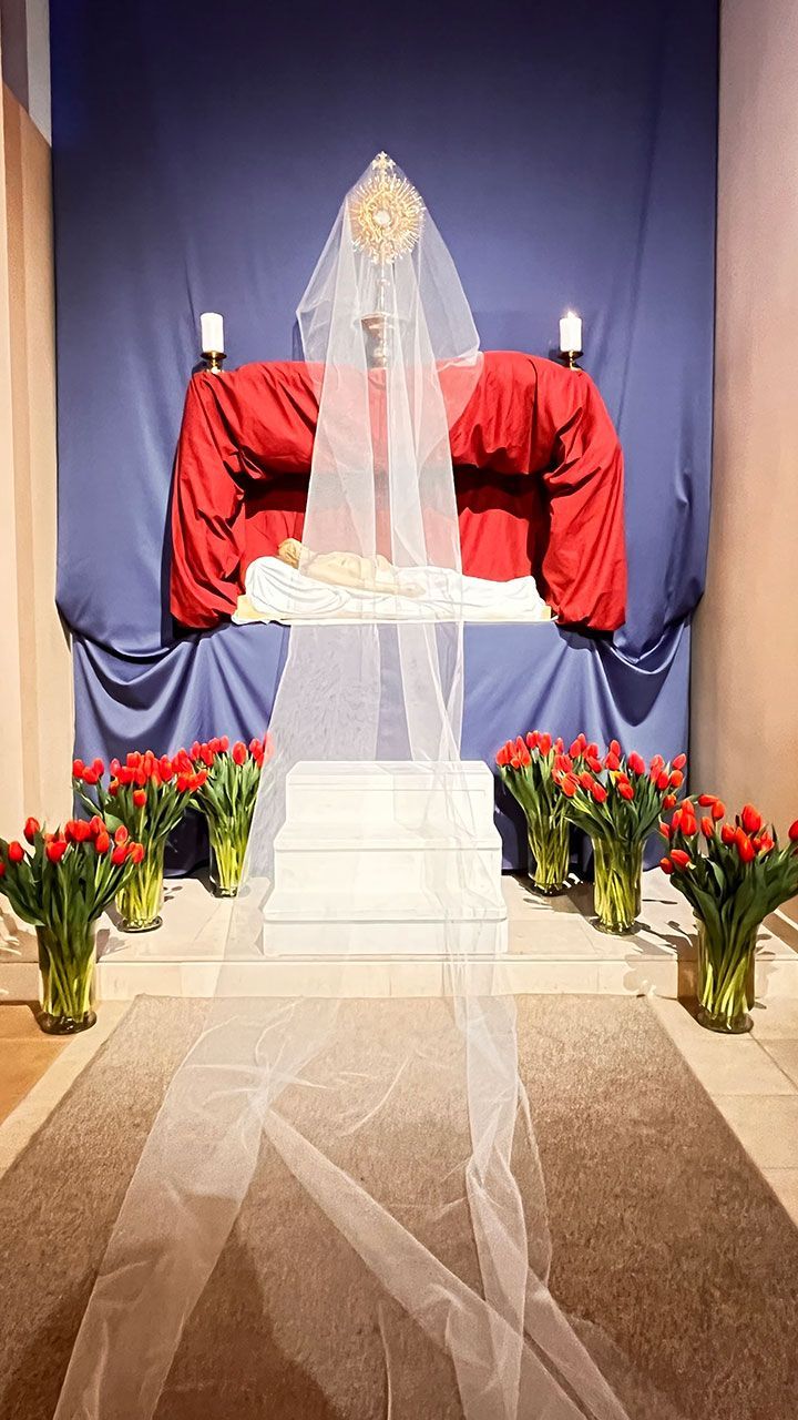 Balandžio 6 d., ketvirtadienio vakarą minėjome Eucharistijos įsteigimą Velykų vakarienėje, Jėzaus su mokiniais valgytoje Jeruzalėje. Mišių pradžioje, primenant Eucharistijos sakramento įsteigimą, „Garbė Dievui aukštybėse” skambant varpams iškilmingai giedojo parapijos choras. Po komunijos komuninė su procesija nunešta į parengtą altorėlį. Po pamaldų tikintieji pasiliko trumpai adoracijai.