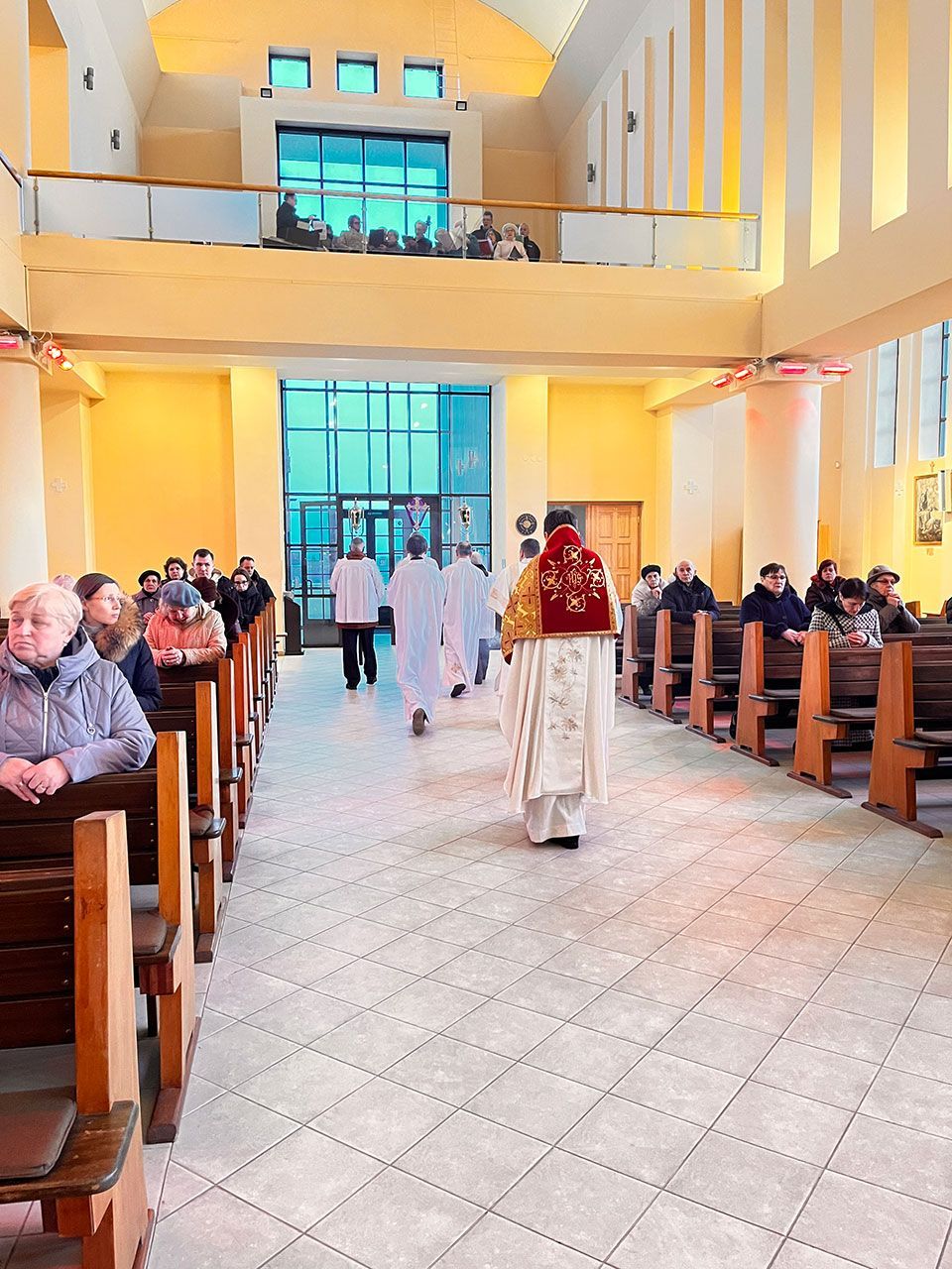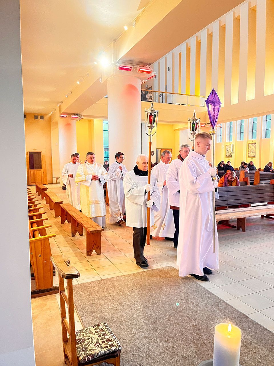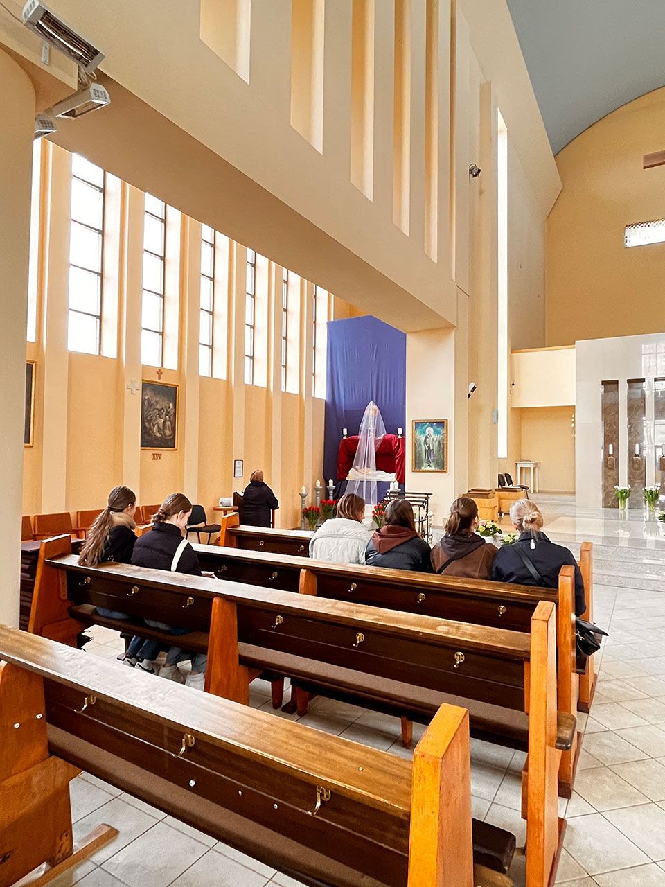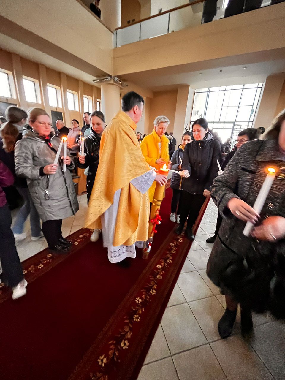 Po šlovinimo giesmės pradėjome Žodžio liturgiją. Skaitovai skaitė septynis skaitinius, buvo giedamos psalmės, meldžiamasi.