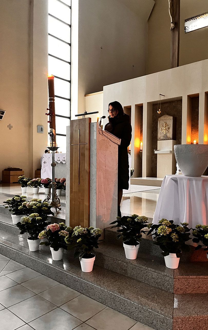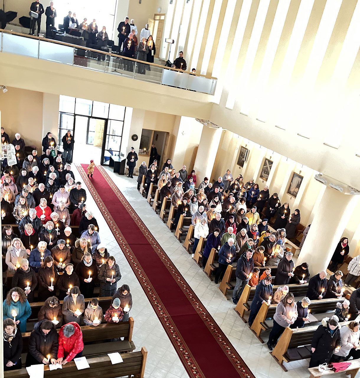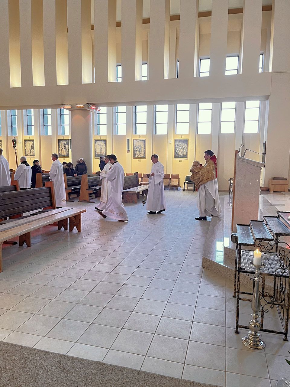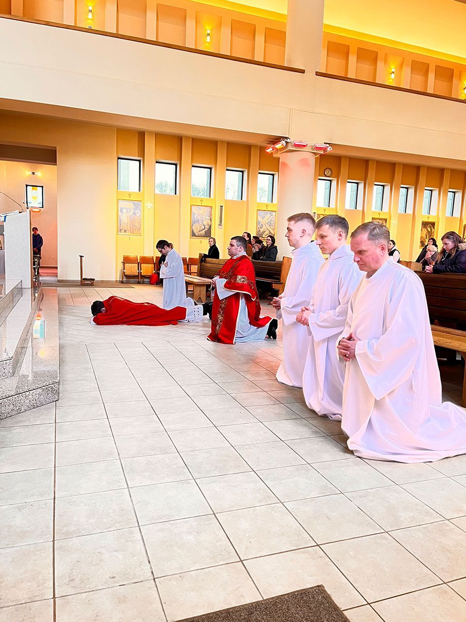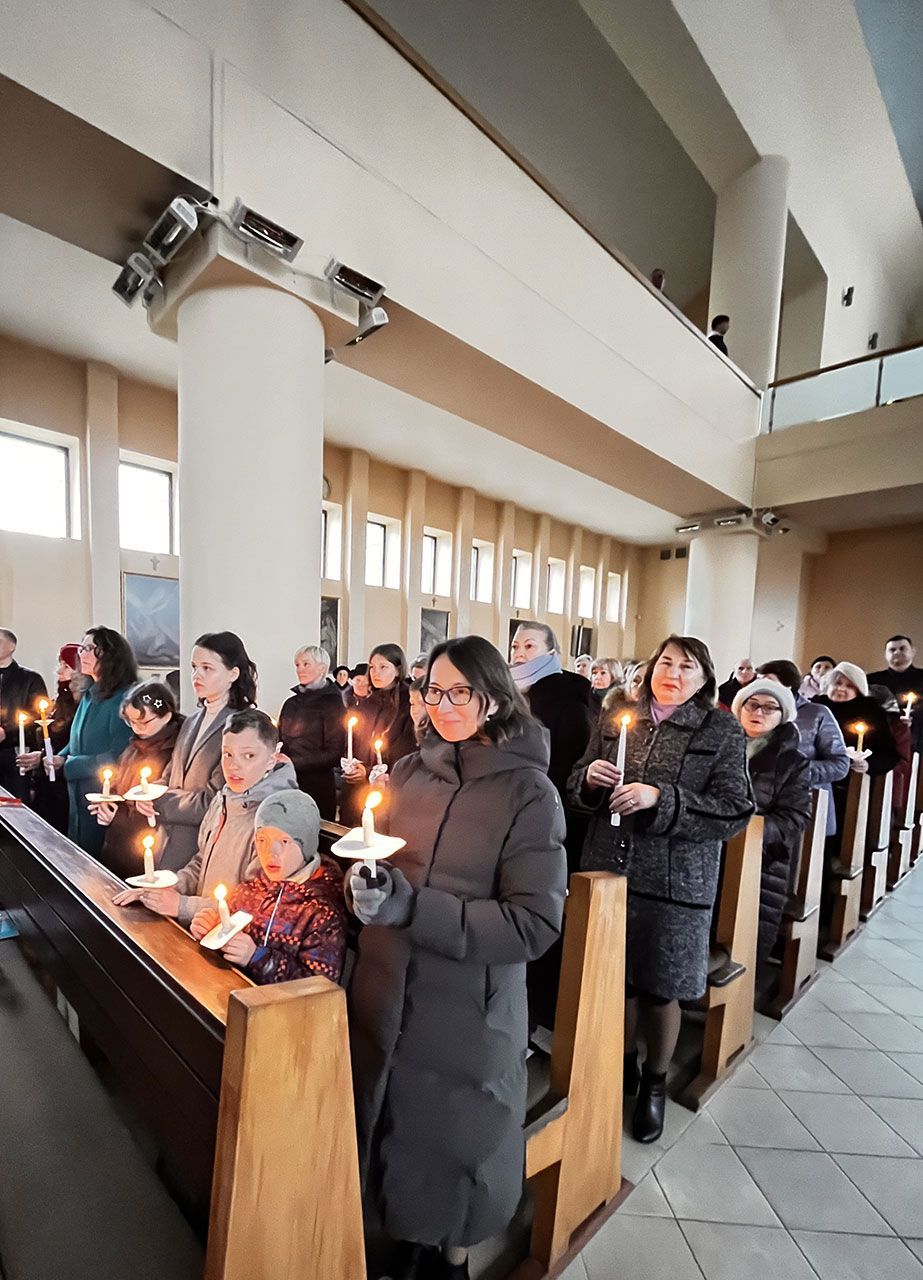 Po šlovinimo giesmės pradėjome Žodžio liturgiją. Skaitovai skaitė septynis skaitinius, buvo giedamos psalmės, meldžiamasi.