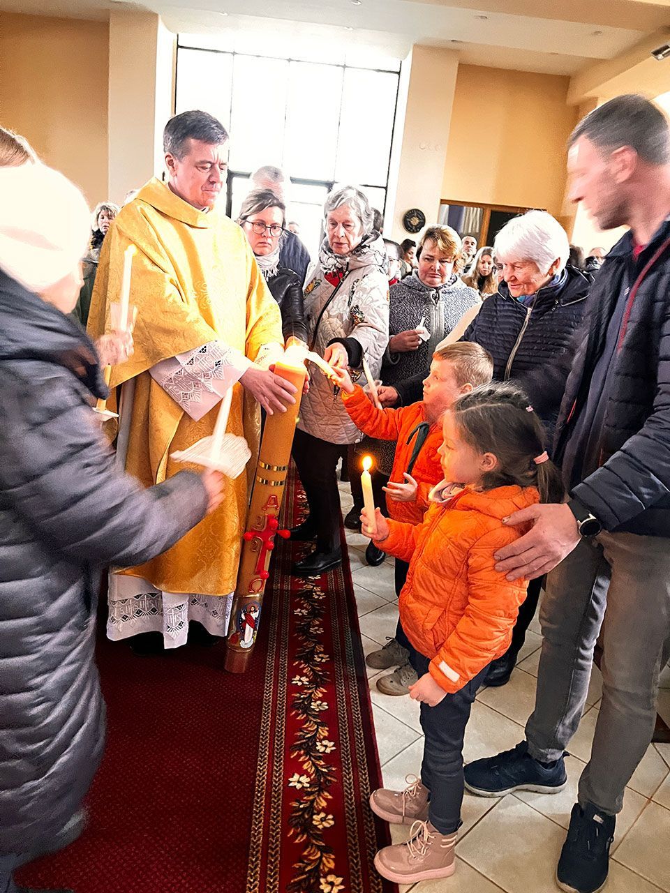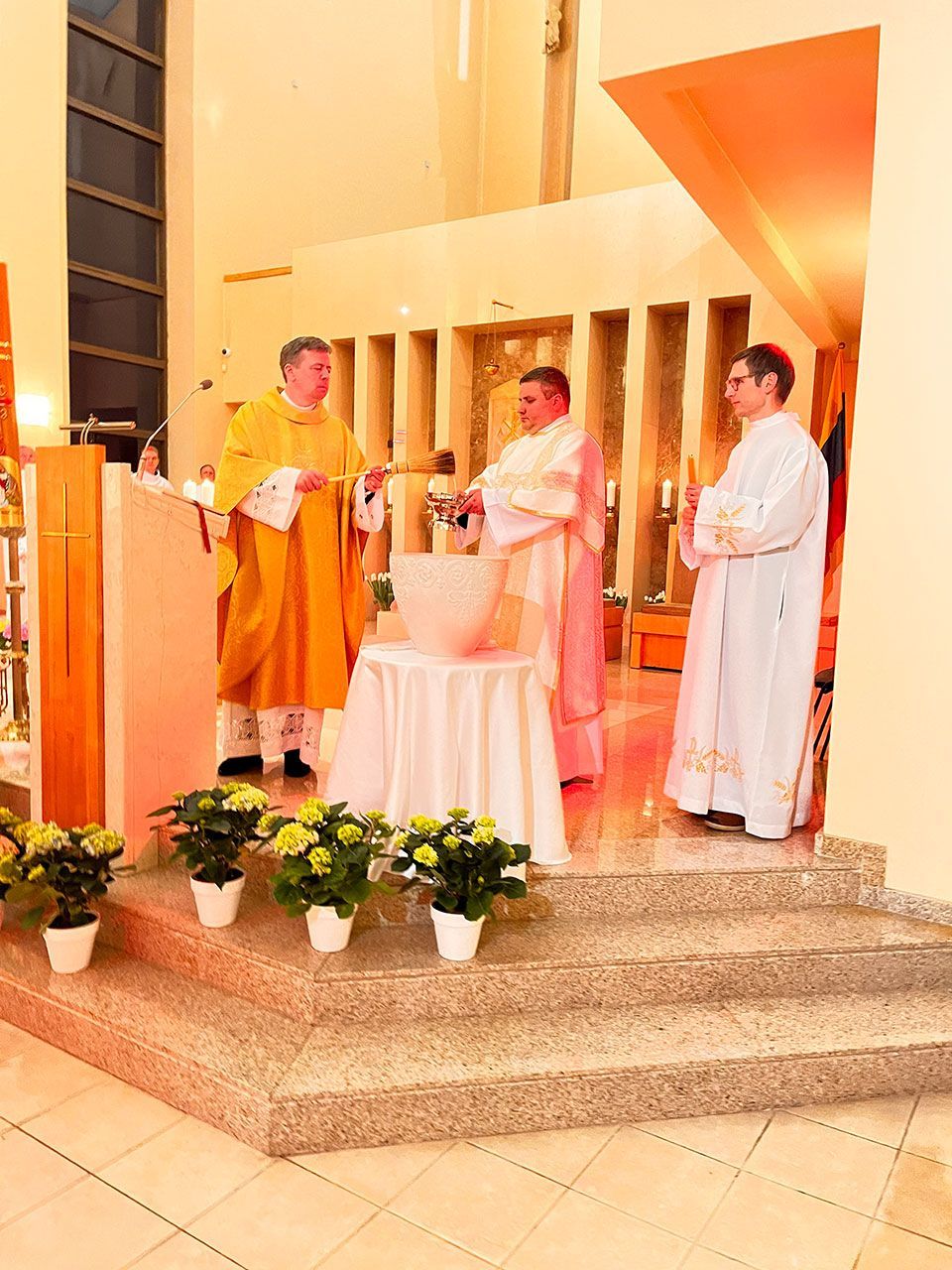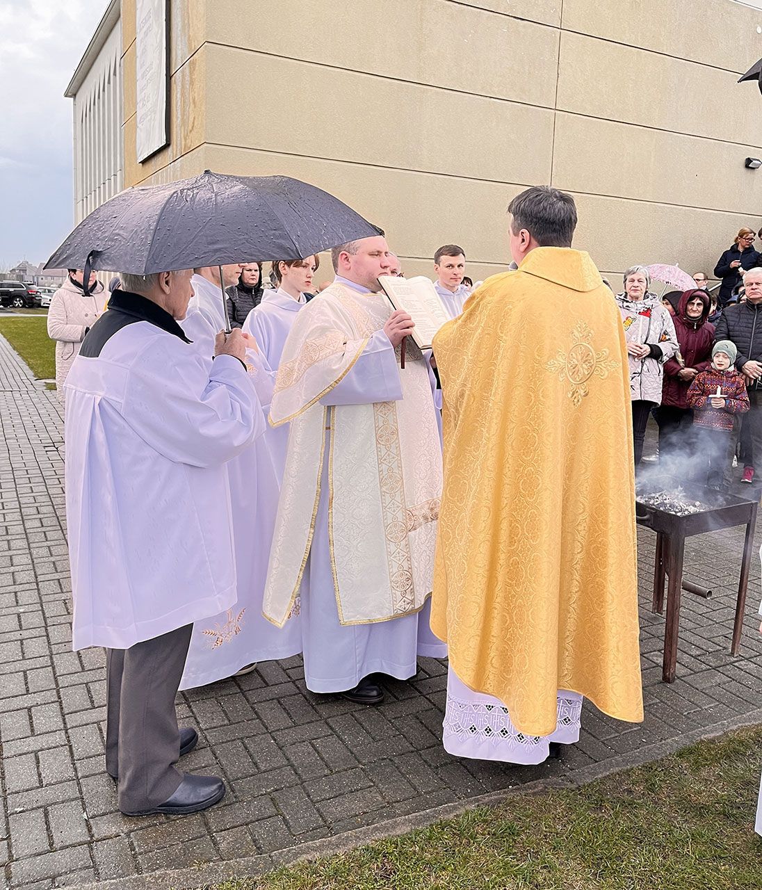 Krikšto liturgiją pradėjome giedodami Visų šventųjų litaniją. Vėliau klebonas kun. G. Pūras pašventino vandenį. Į pašventintą vandenį buvo įleidžiama velykinė žvakė. Ji simbolizuoja Kristų, įbrendantį į Jordano vandenį, kad jį pašventintų. Didįjį šeštadienį galima pelnyti visuotinius atlaidus už Krikšto pažadų atnaujinimą. Po Velyknakčio Mišių dvasininkas laimino žmonių atsineštus šventinius velykinio stalo valgius. Po pamaldų žmonės galėjo paimti švęsto vandens ir palaimintų degtukų.