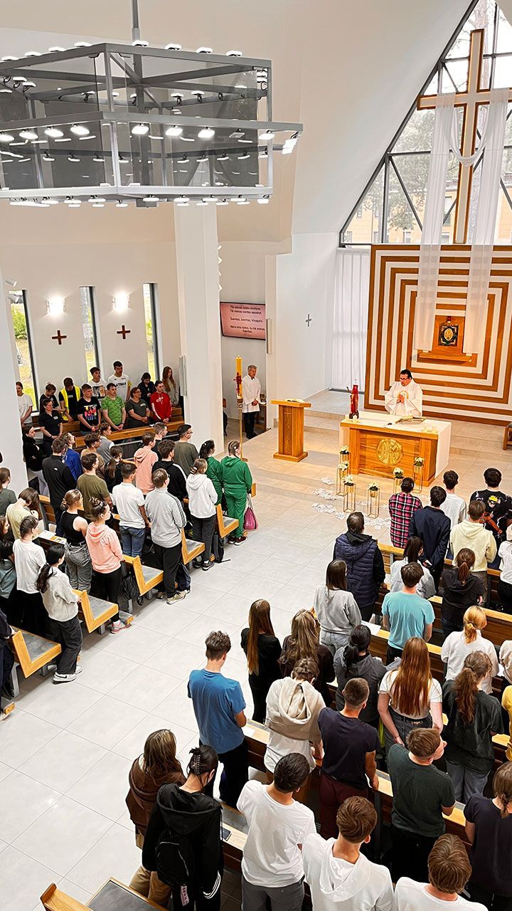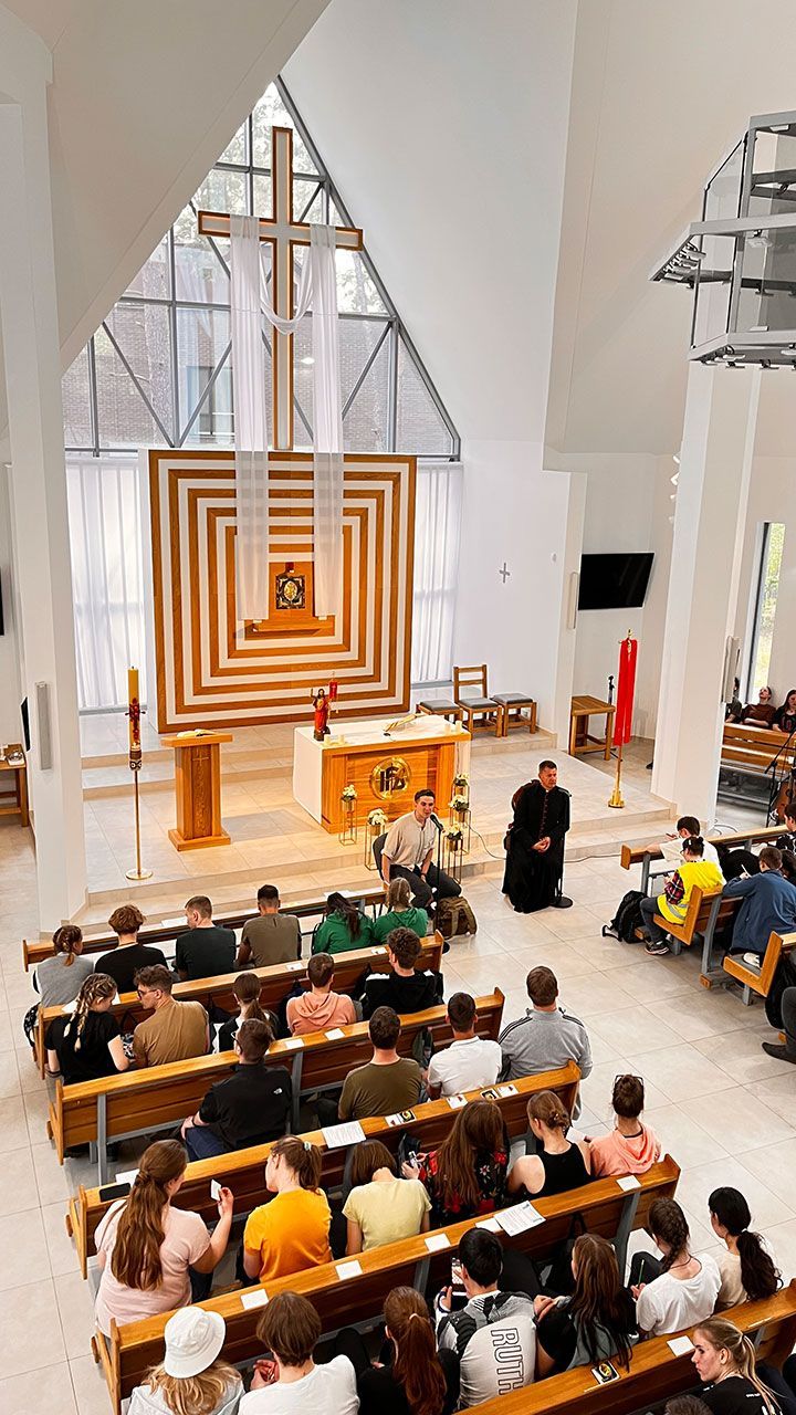 Prieš pamaldas Kauno šv. apaštalų Petro ir Povilo arkikatedros parapijos klebonas, mons. dek. Vytautas Grigaravičius atsakė į jaunuolių klausimus.