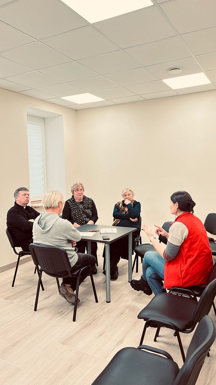Lapkričio 12 d., sekmadienį po šv. Mišių Domeikavos parapijos namuose kaip ir buvo planuota trečią kartą šiais metais mūsų parapijos karitiečiai susitiko su Kauno arkivyskupijos Caritas vadovais. Du ankstesni susitikimai vyko rugsėjį ir spalį. Kauno Caritas direktorius Arūnas Kučikas pristatė tarpininkaujančių tarp ieškančių pagalbos ir ją galinčių teikti modelį – „Išklausymo tarnystė“. Aptarėme šios tarnystės veiklos tikslus, tikslines grupes ir pagalbos ribas.