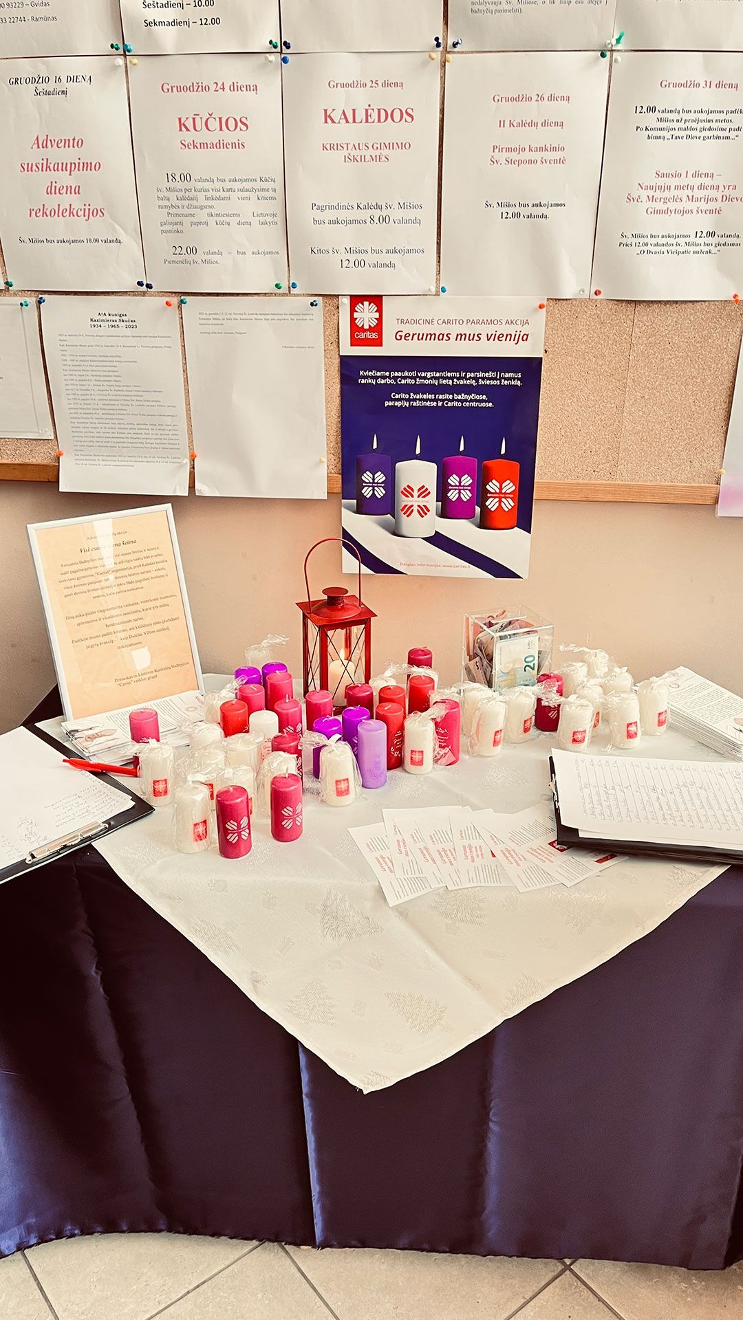 Prieš pamaldas mūsų parapijos Carito bendruomenės narės kvietė prisijungti prie akcijos „Gerumas mus vienija“ bei paramos akcijos Ukrainos žmonėms.Iki Advento pabaigos galite įsigyti gerumo akcijos simbolinę žvakutę solidarizuojantis su vargstančiais. Parapijiečiai ir geros valios žmonės kviečiami suteikti įvairią pagalbą ukraieniečiams - aukoti šiltus drabužius, higienos priemones, ilgai negendančius maisto produktus. Taip pat renkamos skardinės ir vaško likučiai žvakių gamybai.