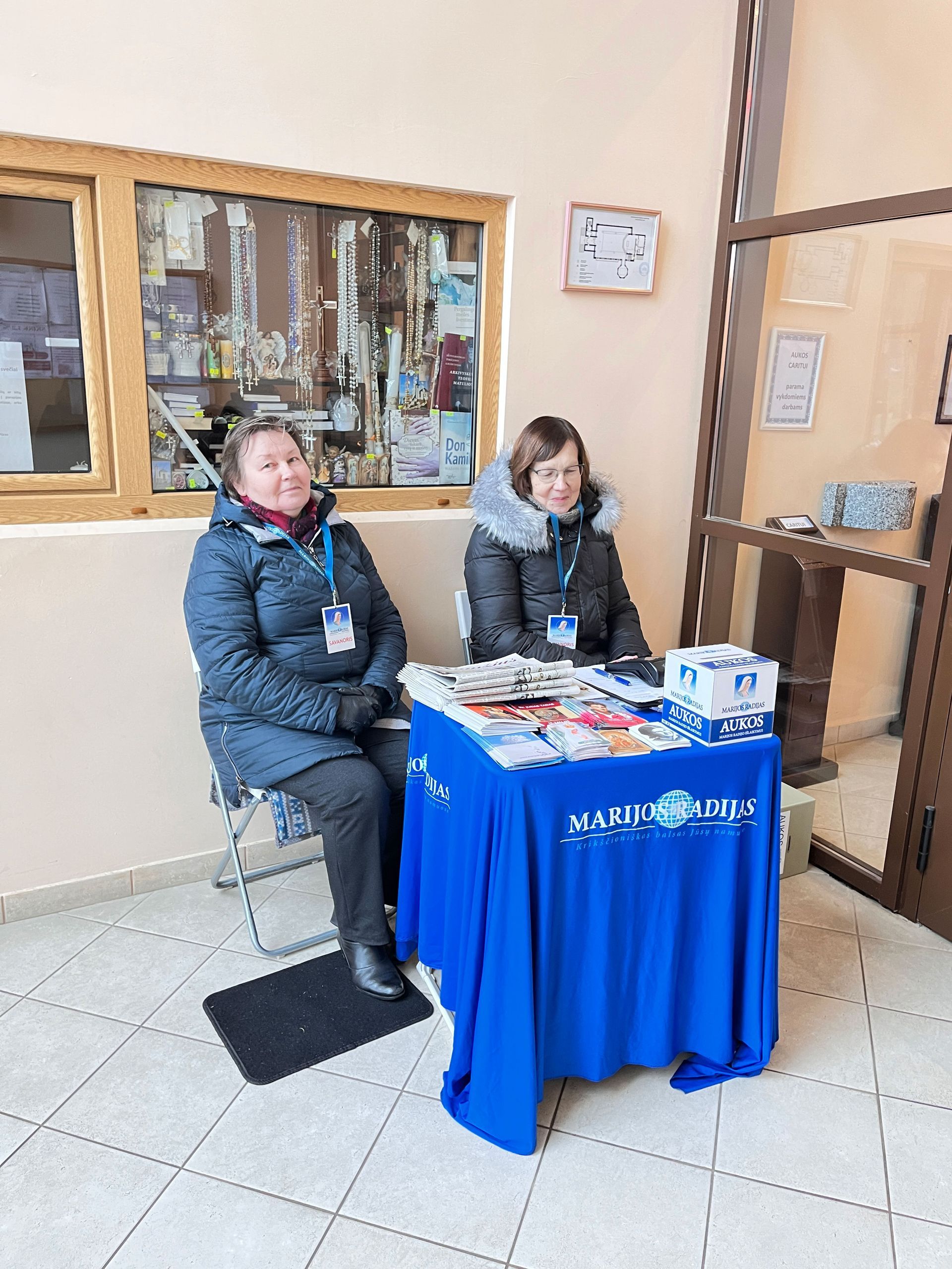 Maldos namų prieangyje savanorės rinko aukas krikščioniškos radijo stoties išlaikymui.