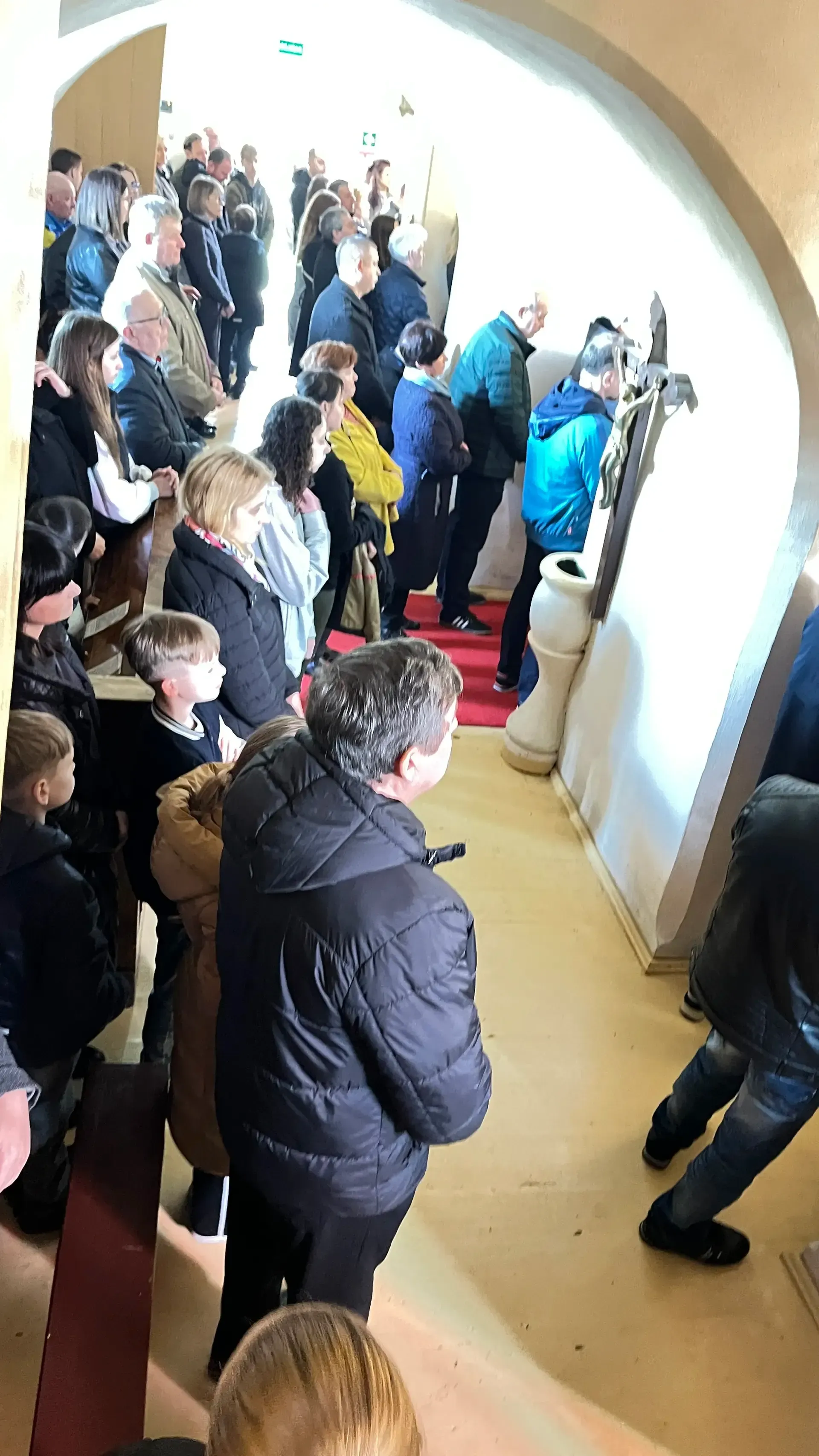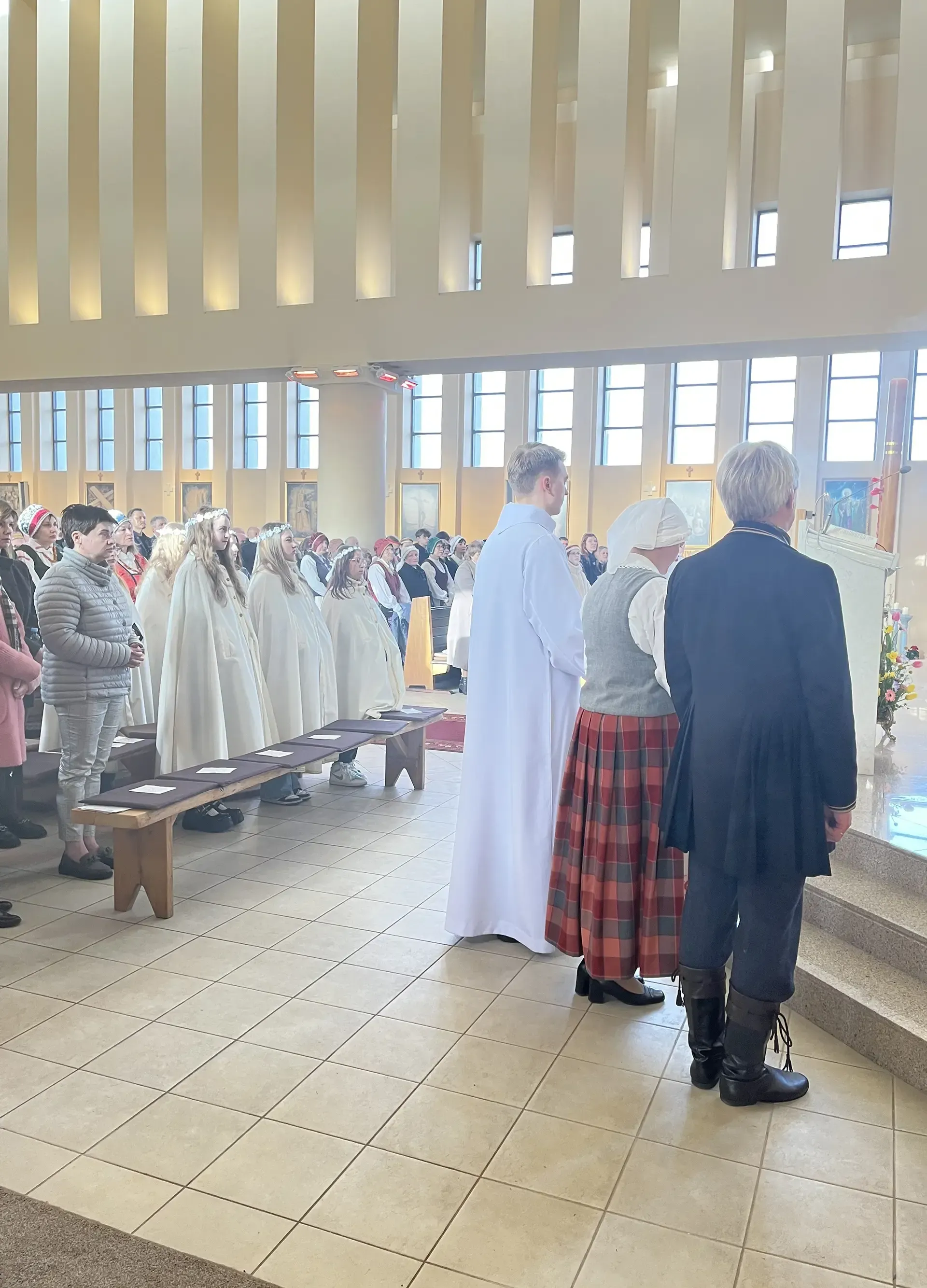 Vėliau dvasininkas pasveikino tikinčiuosius ir svečius su krikščionims svarbiausia pavasario švente – Velykomis. Bei perskaitė Kauno arkivyskupo Kęstučio Kėvalo sveikinimo laišką Velykų proga.