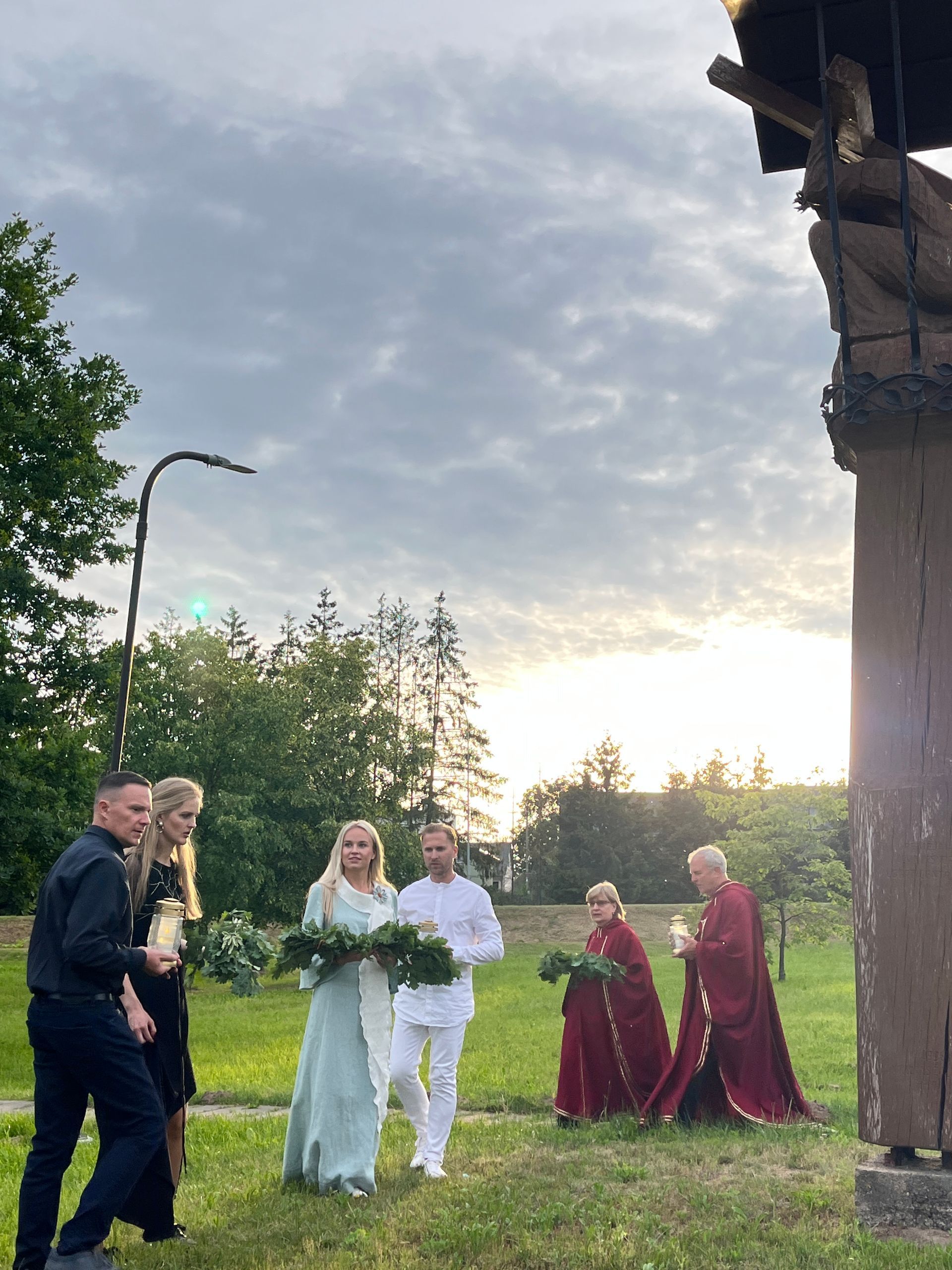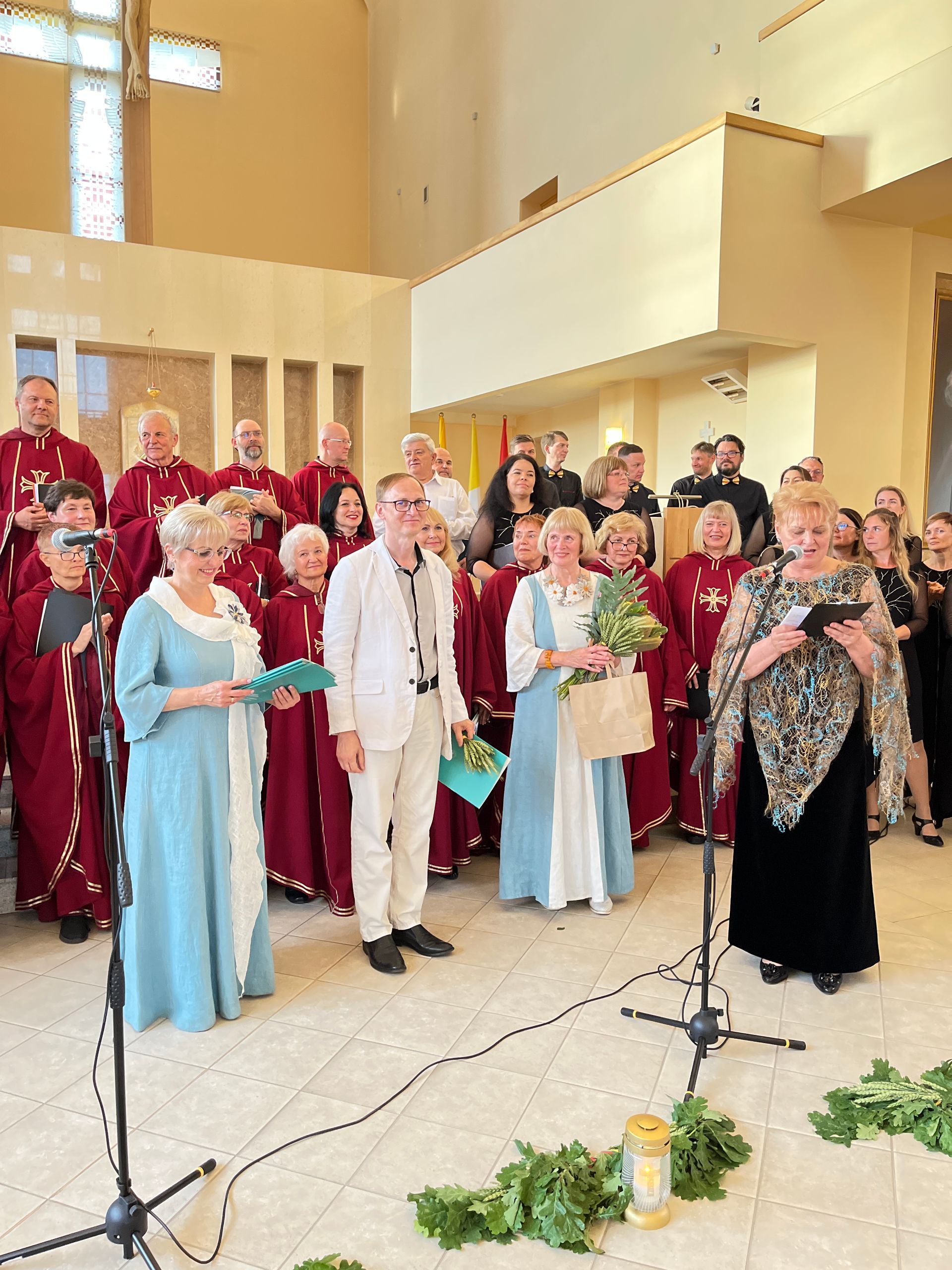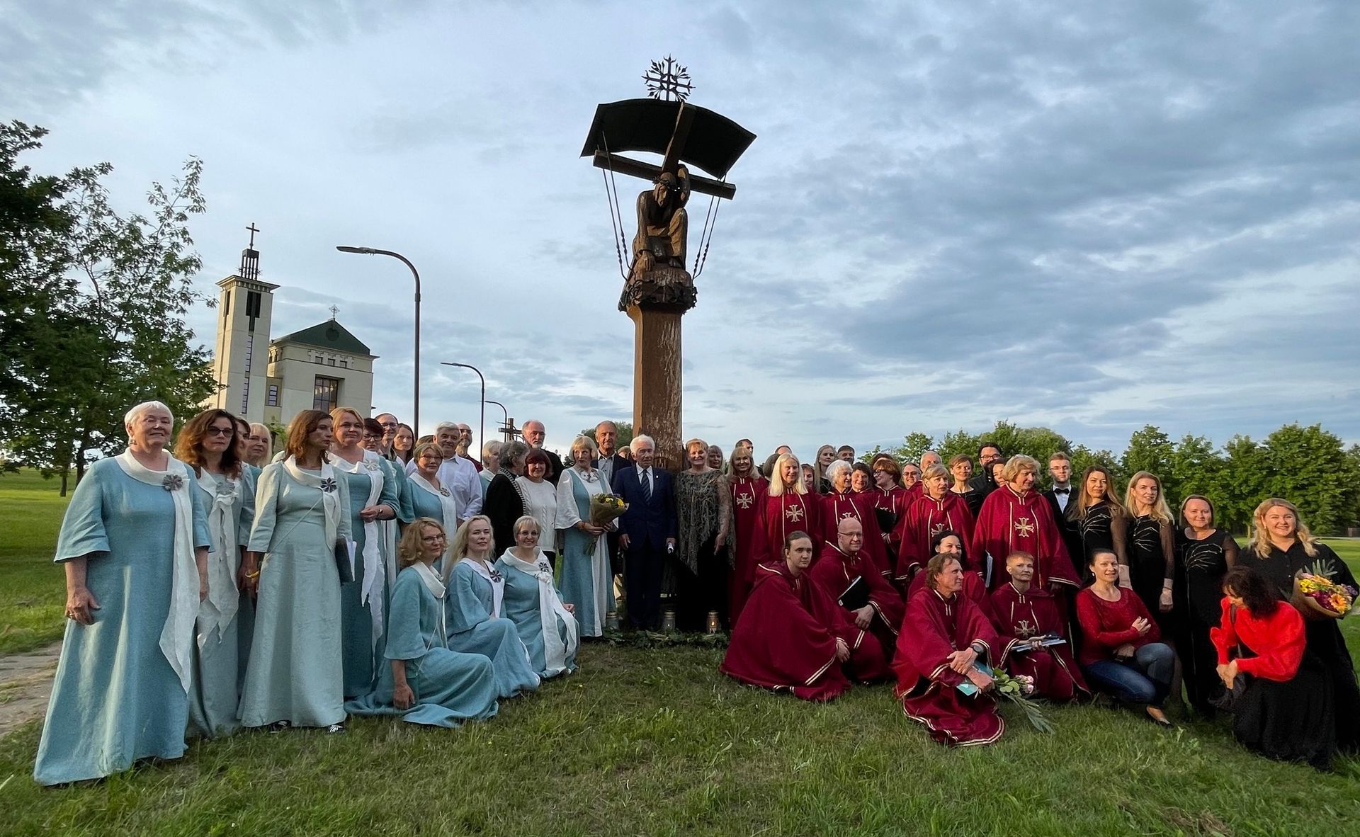 Renginio pabaigoje choristai padėjo ąžuolo vainikus ir atminimo žvakes prie koplytstulpio tremtiniams atminti parke šalia bažnyčios.
