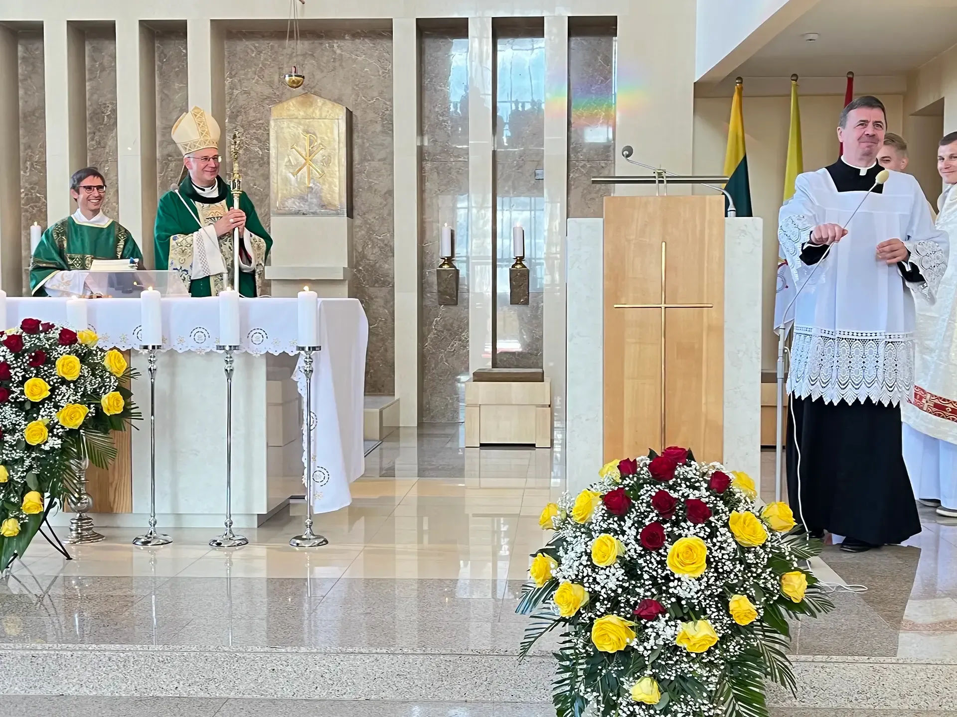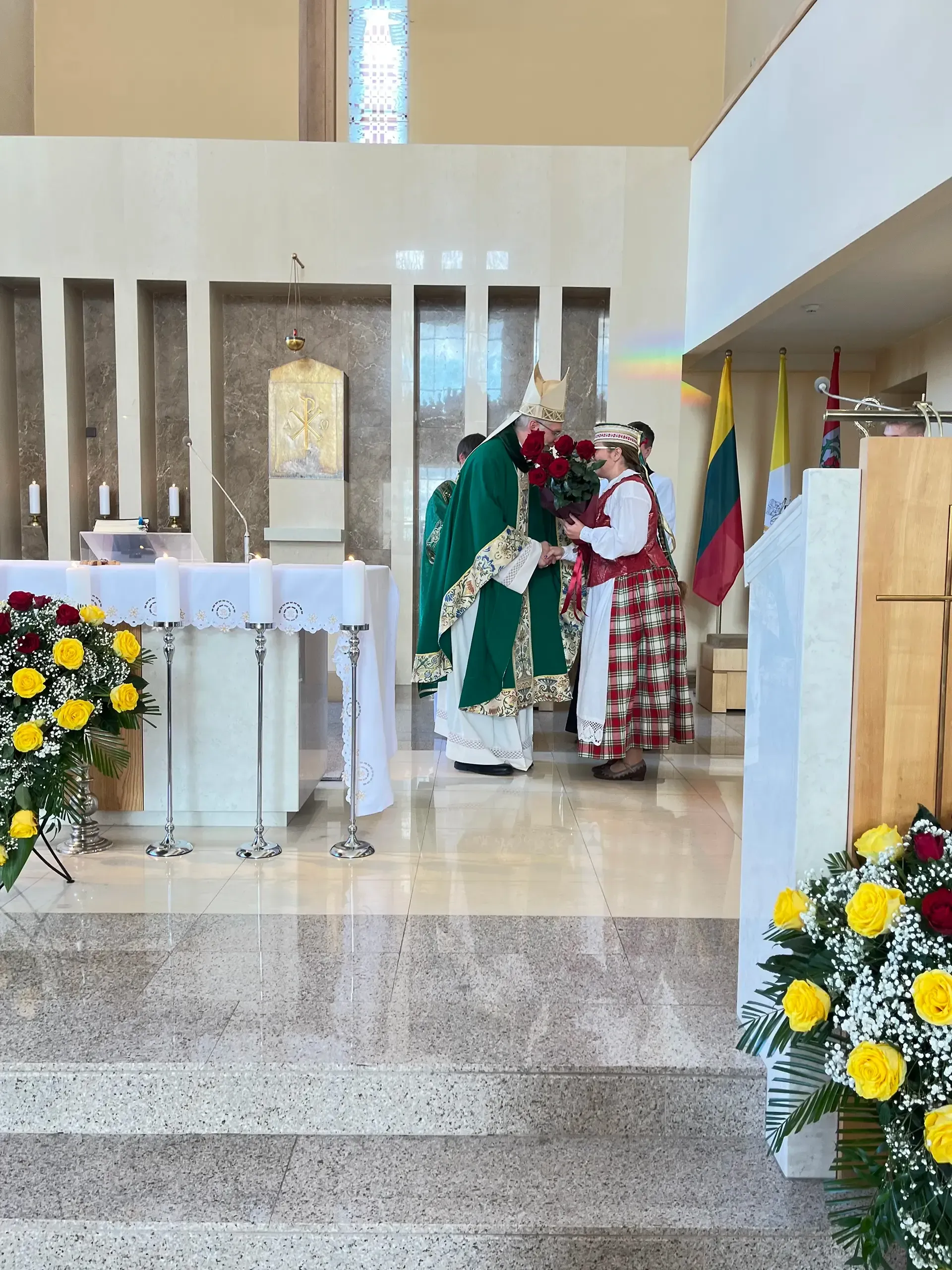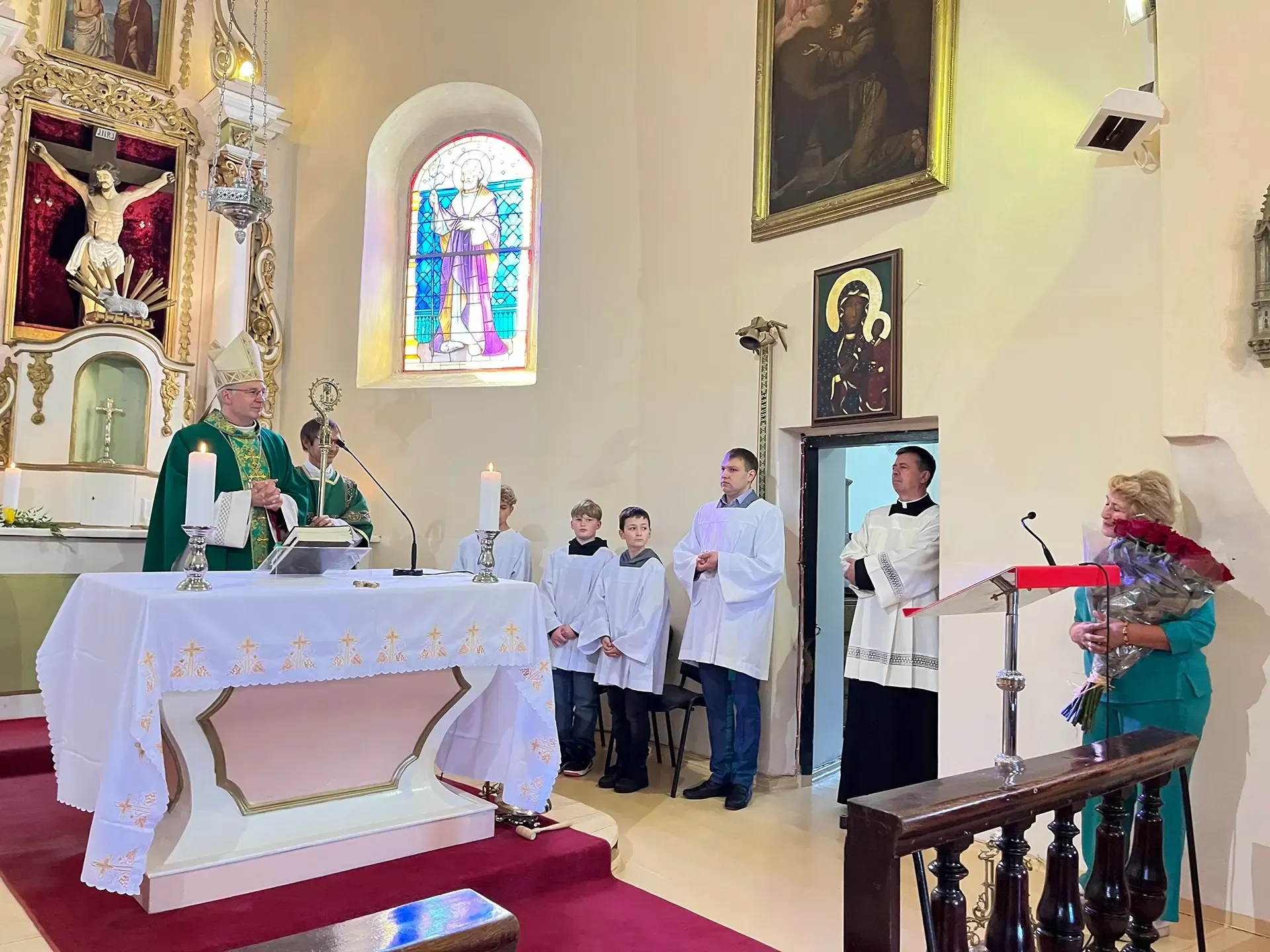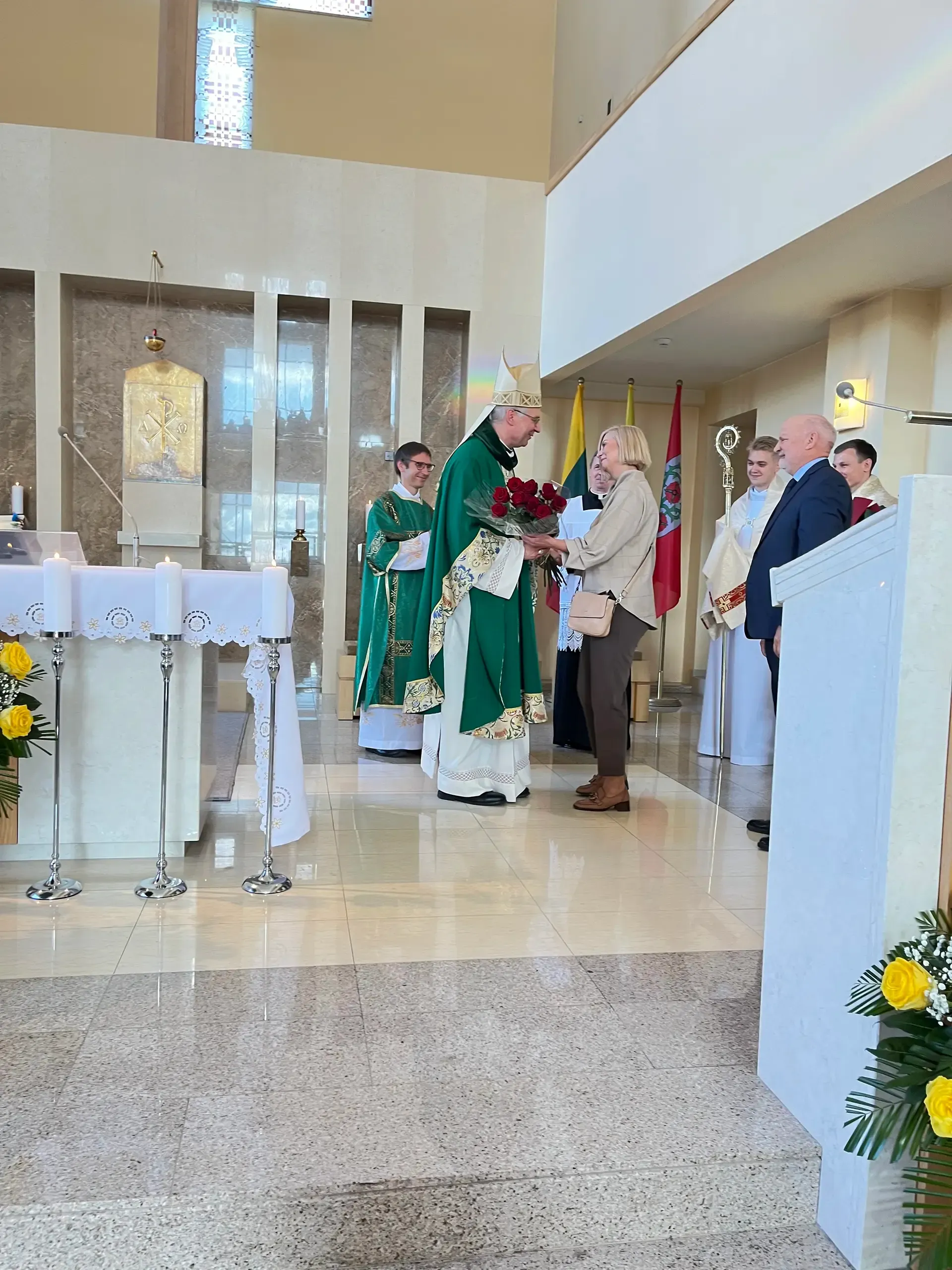 Po pamaldų gerbiamam arkivyskupui Kęstučiui Kėvalui nuoširdžius padėkos žodžius tarė klebonas kun. Gintaras Pūras, Domeikavos ir Lapių seniūnijų, švietimo įstaigų vadovai, parapijų pastoracinių tarybų nariai.