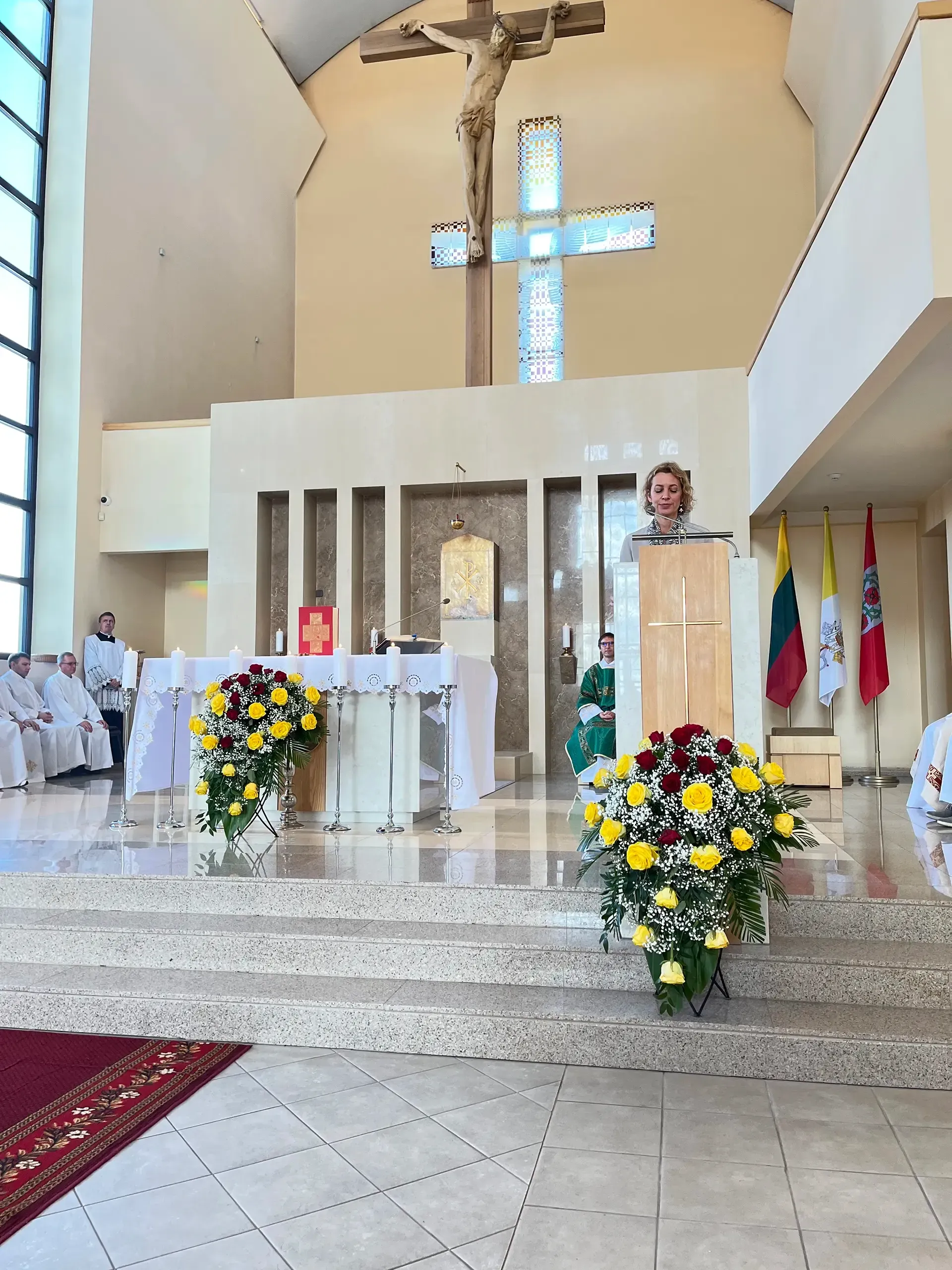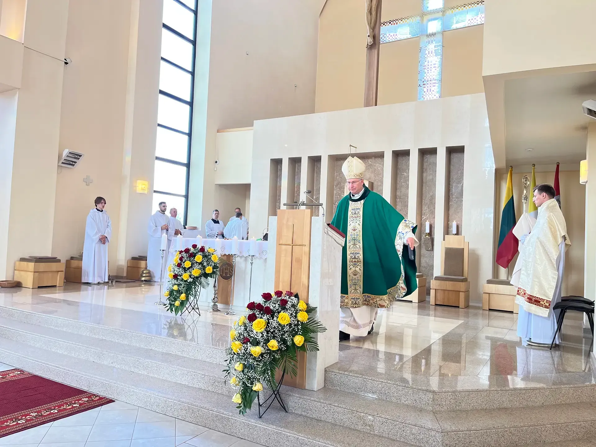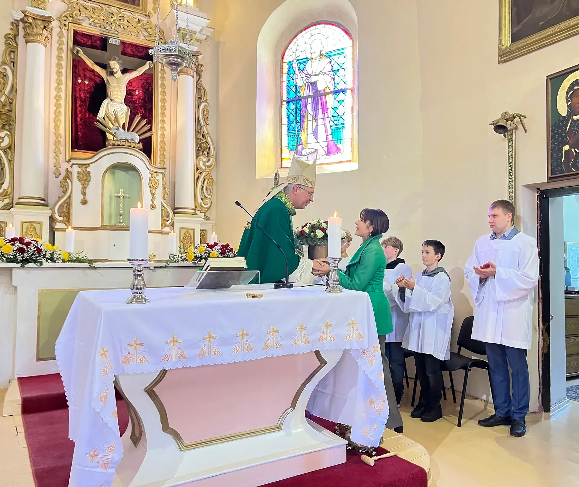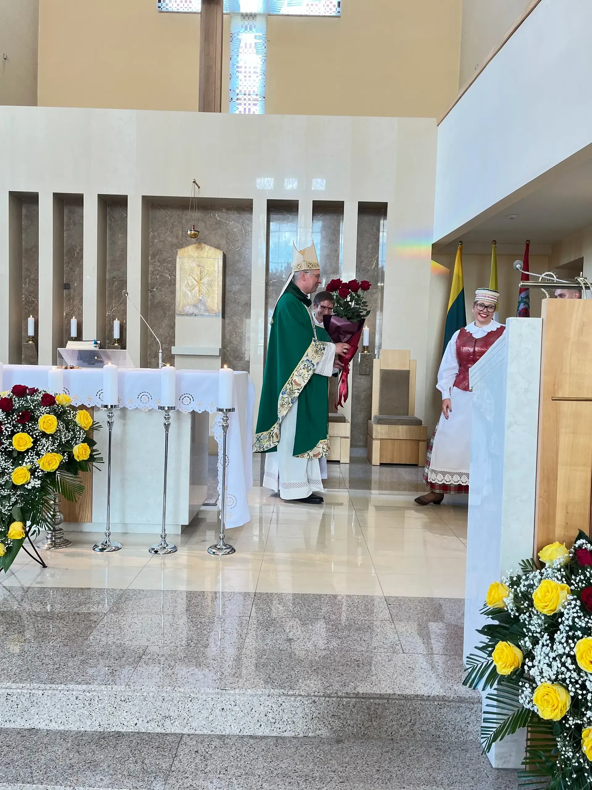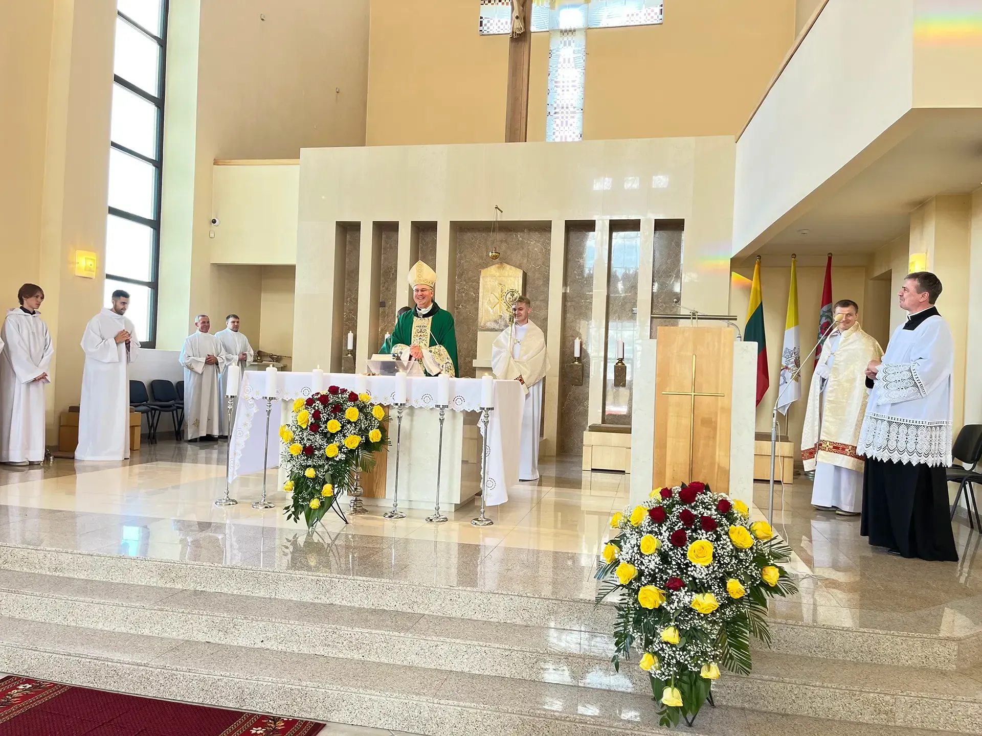 Po pamaldų gerbiamam arkivyskupui Kęstučiui Kėvalui nuoširdžius padėkos žodžius tarė klebonas kun. Gintaras Pūras, Domeikavos ir Lapių seniūnijų, švietimo įstaigų vadovai, parapijų pastoracinių tarybų nariai.