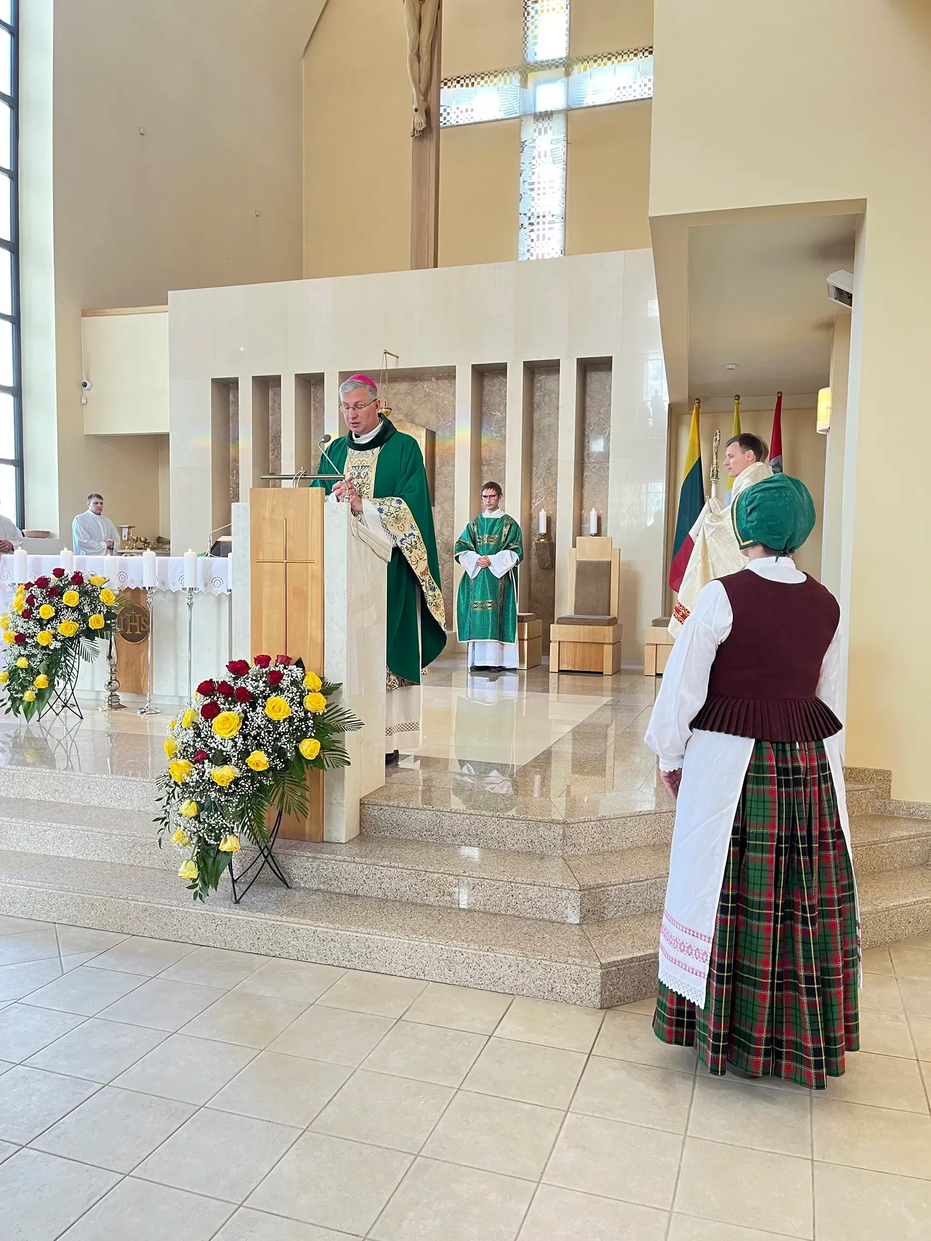Arkivyskupas K. Kėvalas homilijoje kalbėjo apie bendruomenės reikšmę, akcentavo Dievo Dvasios veikimą žmonėse per vienybės išgyvenimą, krikščioniškos meilės momentus. Žmonės yra skirtingi, todėl gali būti, kad skirtingais būdais Dievas nori savo Dvasią šiame pasaulyje įkūnyti, suteikti įžvalgos dovaną. Lietui lyjant augalai sužydi skirtingai – pagal savo prigimtį. Taip ir žmogui reikia leisti būti savimi, priimant kito kitoniškumą. Dažnai tai būna iššūkis, nes skirstome žmones į mes ir kiti. Dėmesys tik į save pasaulį susiaurina. Šiandien prisiminkime tuos kitus, kurie yra svetimšaliai, migrantai, pabėgėliai. Kitose šalyse lietuvių diaspora išliko dėl pagalbos, kurią tuo metu suteikė kitos tautos. Visi priklausome kokiai nors grupei, bendruomenei. Šiandienos žmogui taip pat reikalinga bendruomenė, kuri padėtų daugiau pažinti Viešpatį, ugdytis, pasiekti tam tikrų tikslų. Bendruomenės reikšmė yra prigimtinė - pirmoji bendruomenė yra šeima, kurioje mokomės vertinti vienybės ir bendrystės jausmą. Kartais būna, kad nesutinkame su prieštaraujančiu žmogumi. Filosofas Volteras yra pasakęs „aš nekenčiu to ką tu sakai, bet aš mirčiau už tavo teisę tai pasakyti“. Vadinasi, reikia gerbti kito nuomonę. Jėzus siūlo kitą žmogų pažinti iš jo vaisių, kurie yra nesavanaudiška meilė, romumas, troškimas ieškoti tiesos.