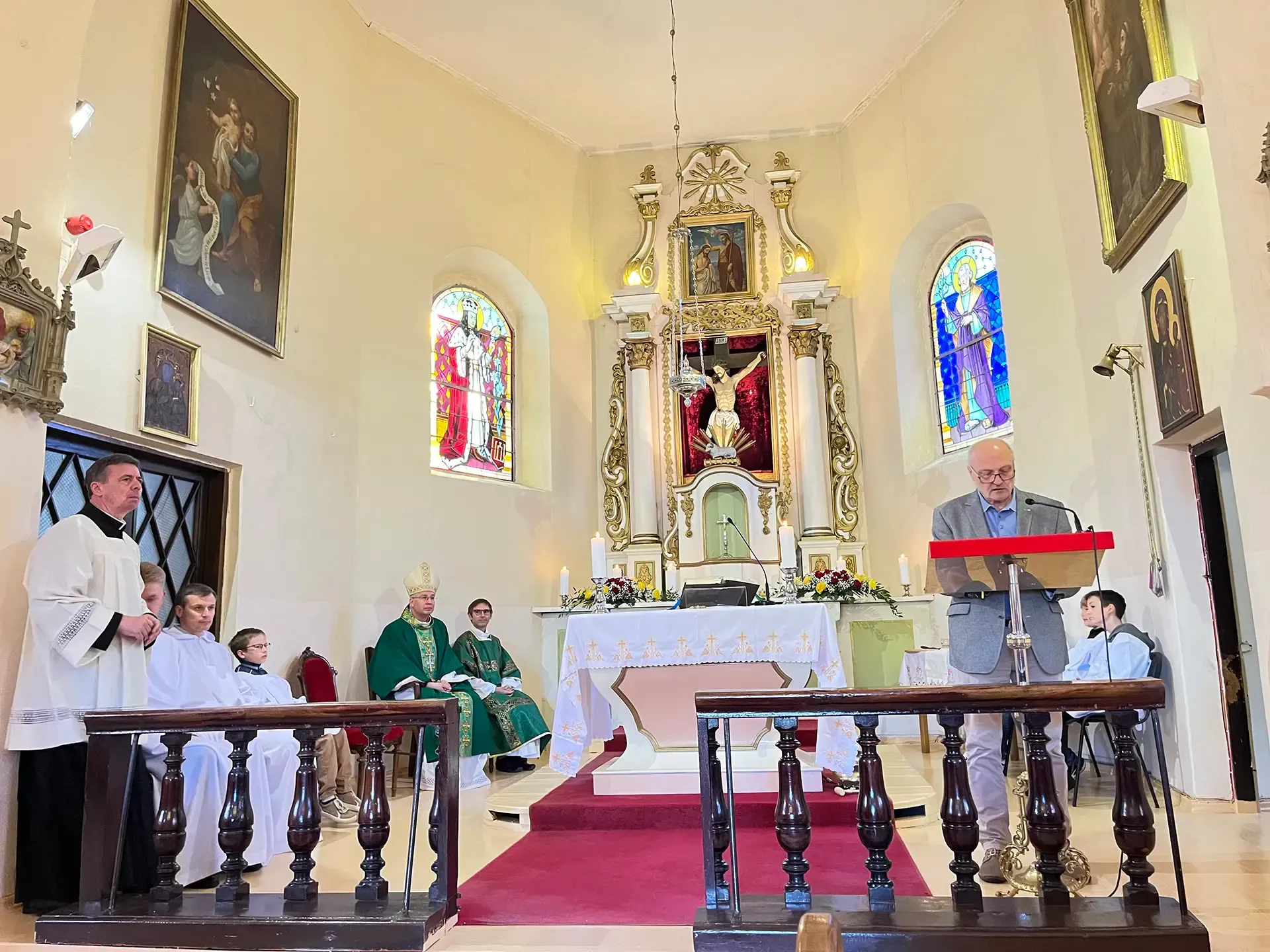 Ryte arkivyskupas šv. Mišias aukojo aptarnaujamoje Lapių bažnyčioje, o vidurdienį Eucharistijai vadovavo Domeikavos maldos namuose bei išklausė klebono kun. Gintaro Pūro ataskaitas už praėjusius darbo parapijose metus. Klebonas pristatė įgyvendintus projektus, esamas ir planuojamas veiklas bei pasidžiaugė gražiu bendradarbiavimu su parapijose esančių seniūnijų, švietimo ir kultūros įstaigų bendruomenėmis.