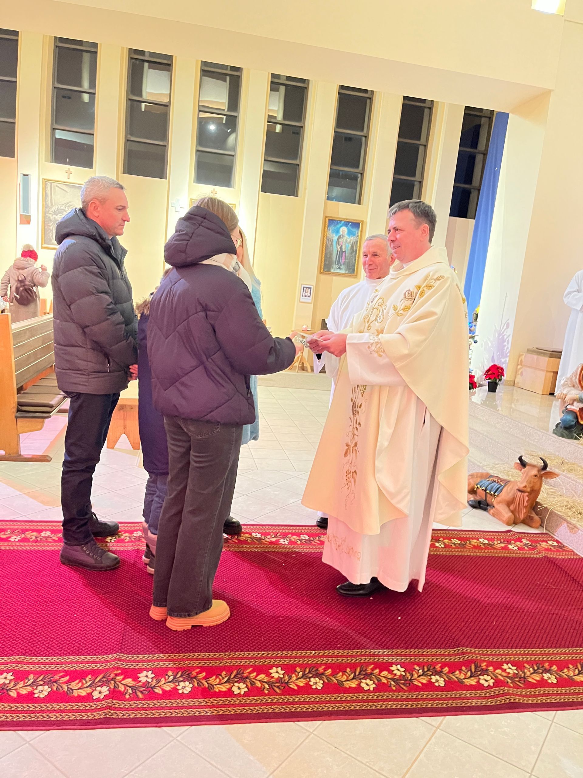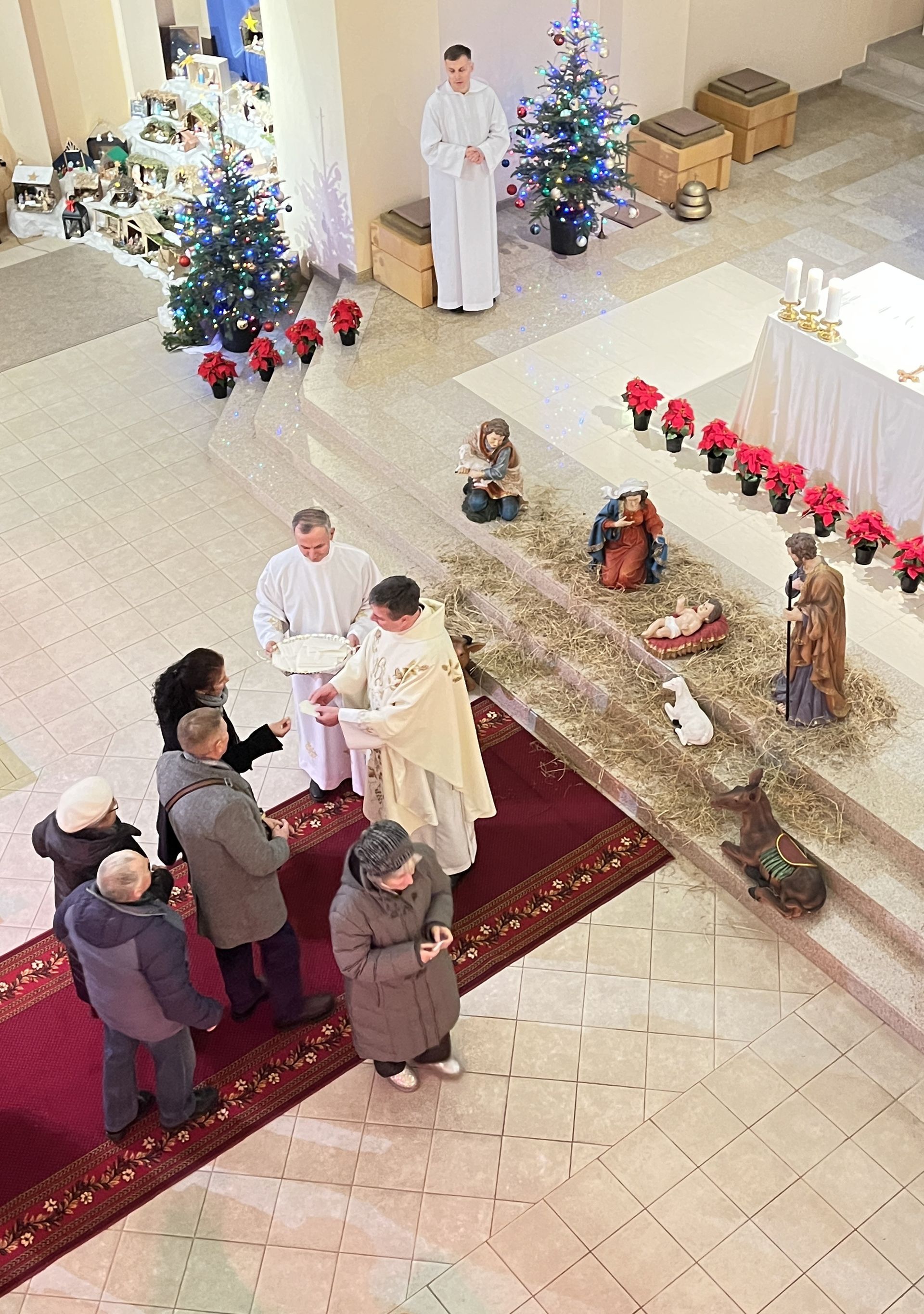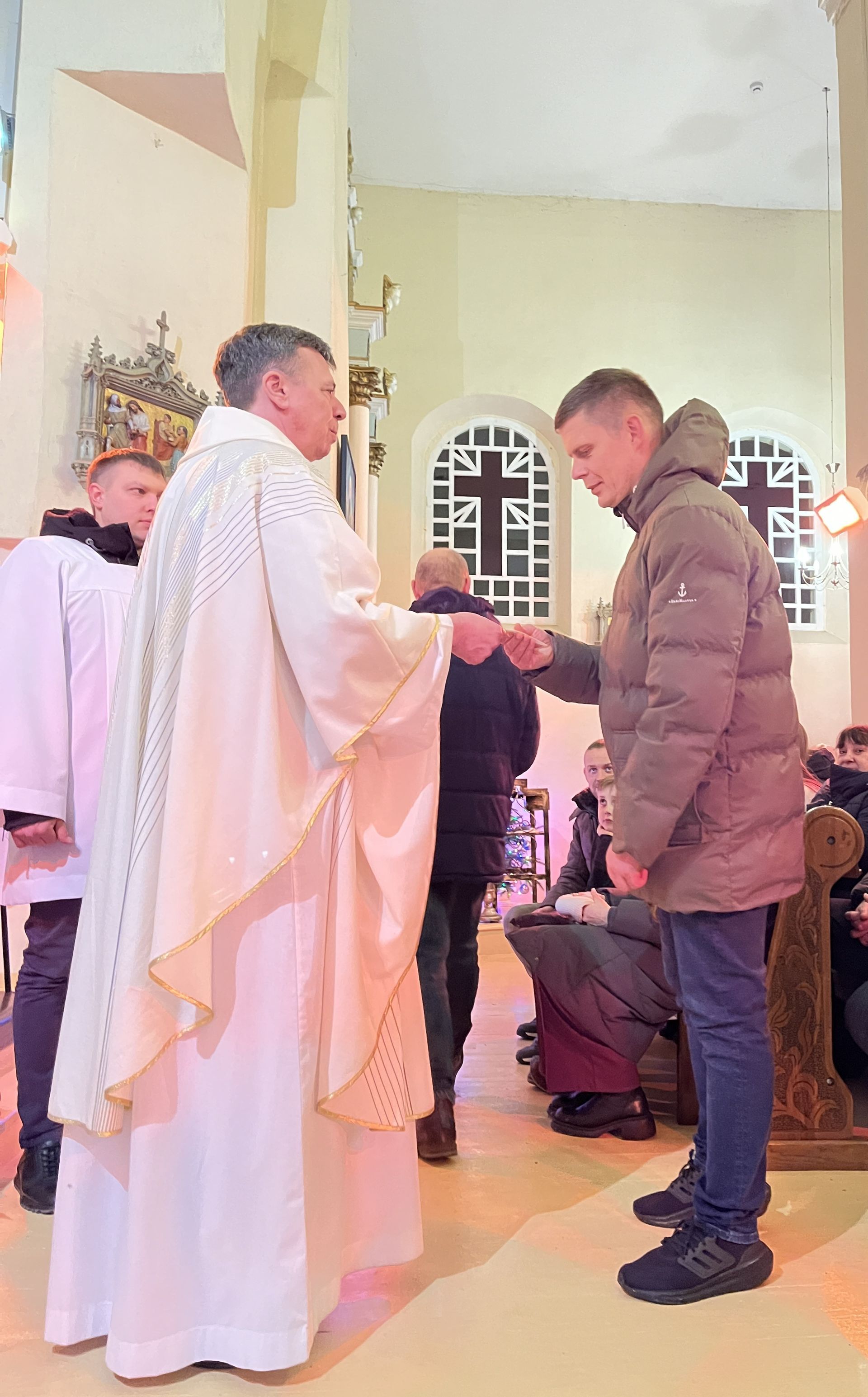 Gruodžio 24 d., antradienį klebonas kun. Gintaras Pūras aukojo Kūčių vakaro šv. Mišias Domeikavos ir Lapių bažnyčiose. Visi kartu su dvasininku laužėme kalėdaitį – taikos simbolį bei vieni kitiems sakėme daug gražių palinkėjimų, padėkos žodžių. Po pamaldų bažnyčios tarnautojai žmonėms įteikė šventinius laiškus – klebono palinkėjimus. Dvasininkas prašė sveikinimus Šventų Kalėdų proga parnešti tiems, kurie dėl ligos ar kitų svarbių priežasčių liko namuose.