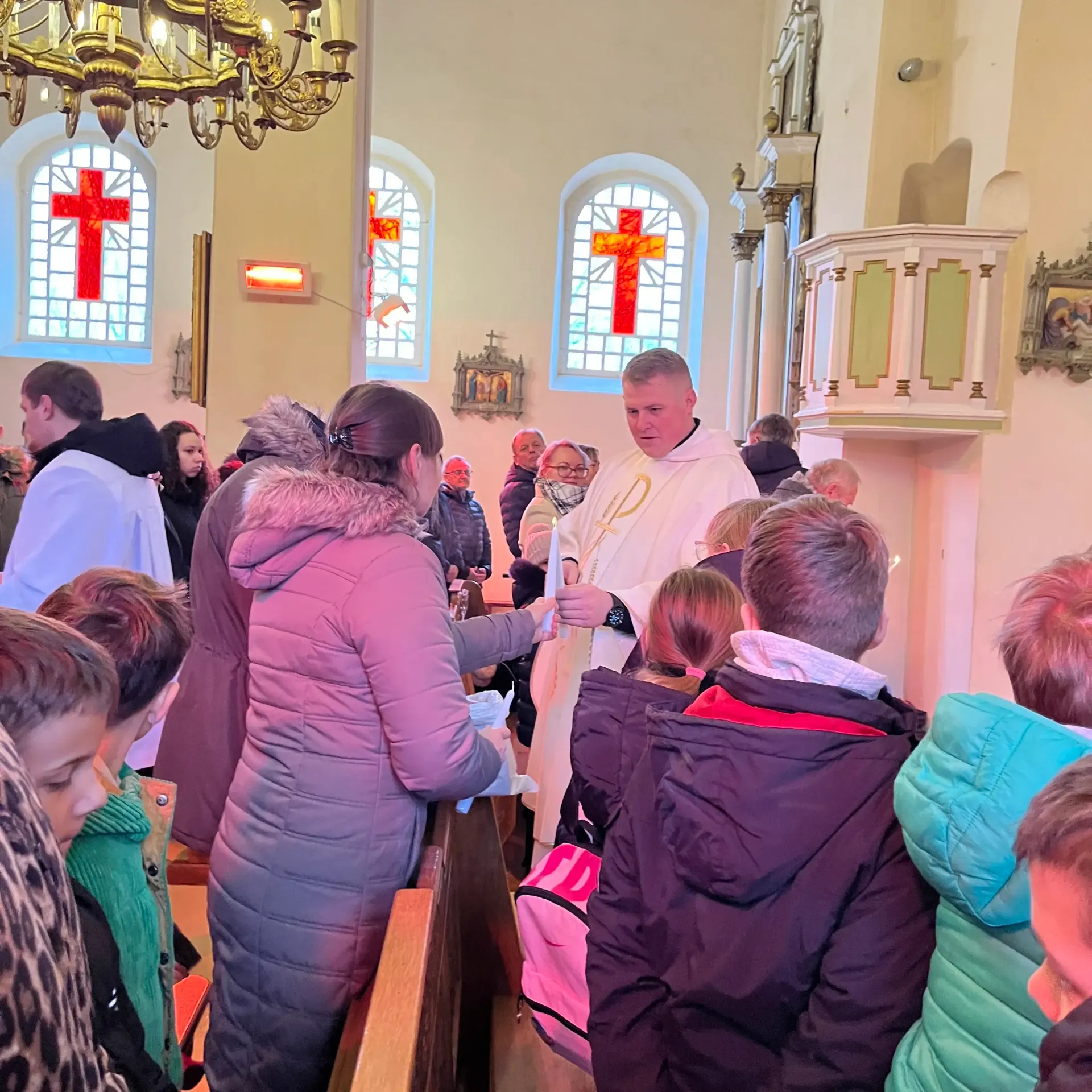 Taip pat pirmąjį vasario sekmadienį minėjome Šv. Blažiejų. Pagal seną Bažnyčios tradiciją dvasininkai atliko „gerklės palaiminimo" apeigą nuo kaklo ir gerklės negalavimų. Apeigos metu žmogaus gerklė paliečiama dviem sukryžiuotom žvakėm. Dauguma pamaldų dalyvių pirmą kartą dalyvavo apeigose - ypač džiaugėsi parapijos vaikai. Vėliau klebonas kun. Gintaras Pūras priminė tikintiesiems, kad „gerklės palaiminimo" apeiga nėra burtai. Kvietė žmones atsakingai rūpintis savo sveikata, vaikams priminė, kad tinkama apranga žiemos metu saugo ir lauke ir bažnyčioje.
