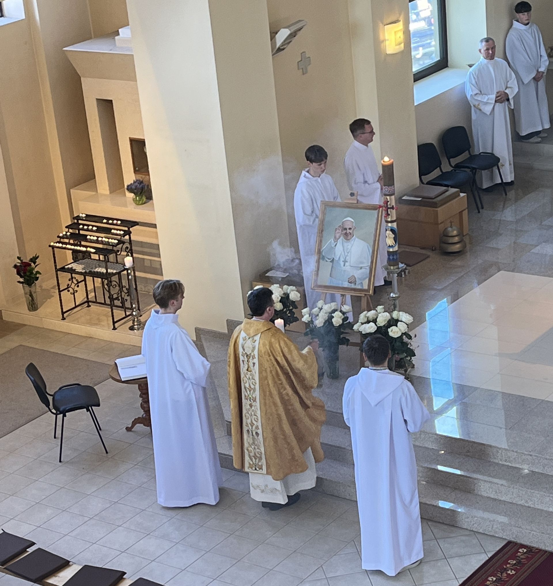 2025 04 26 Domeikavos bažnyčioje – padėka popiežiui Pranciškui užuojautos knygoje